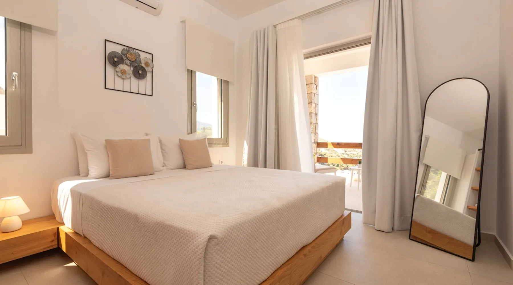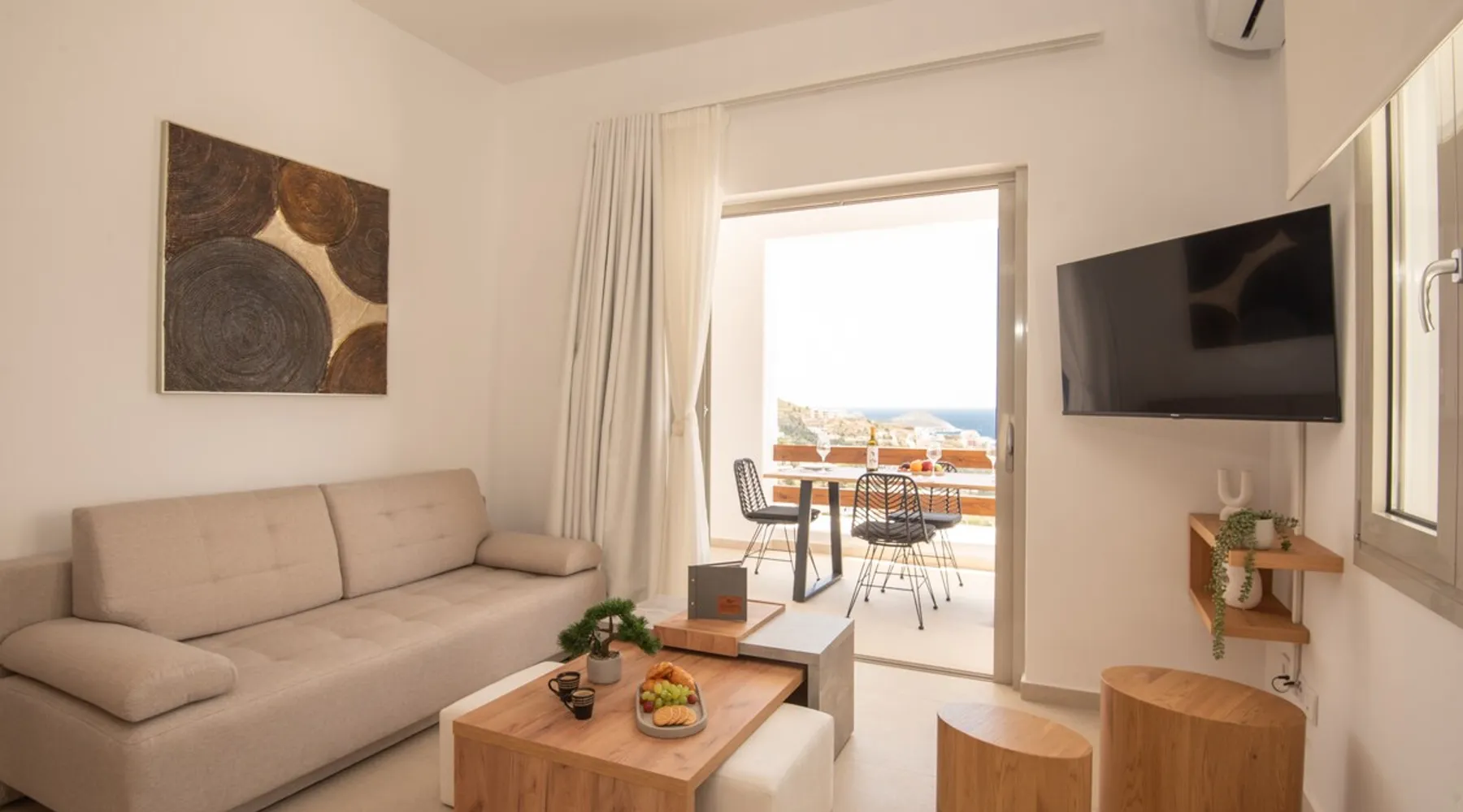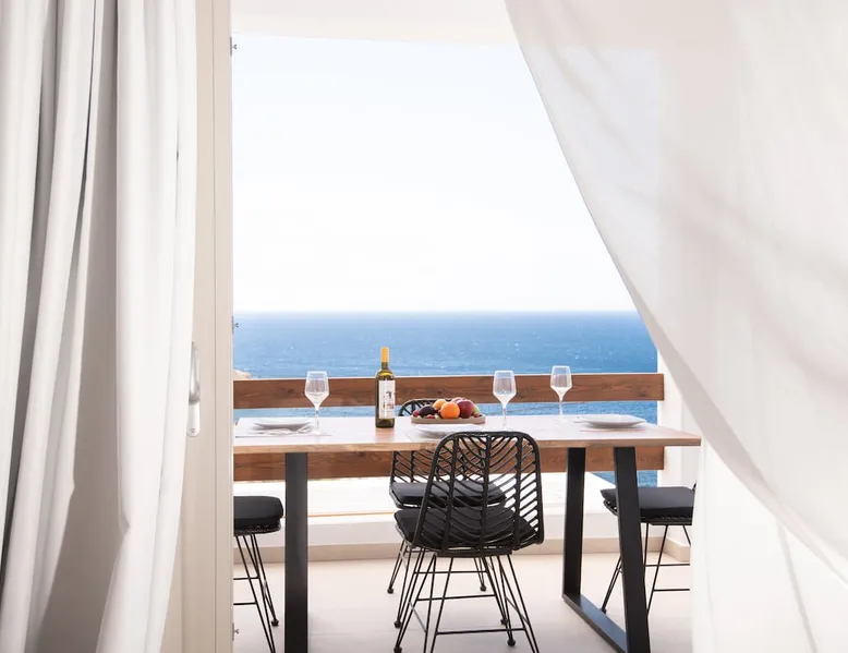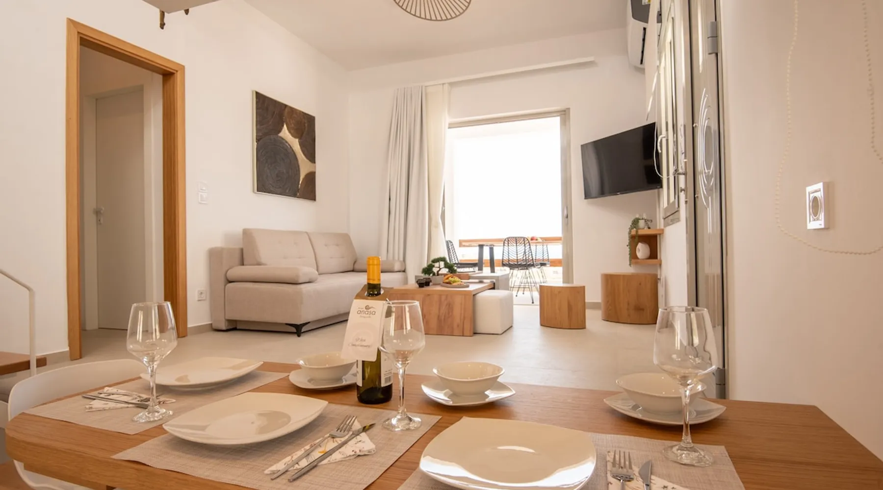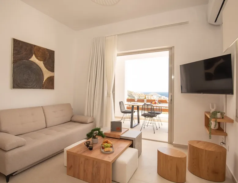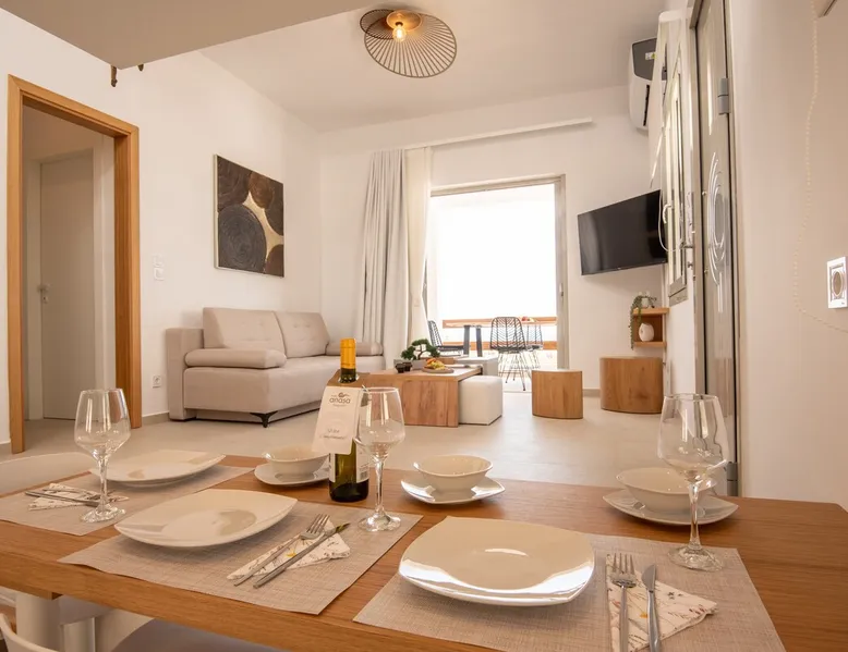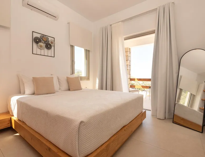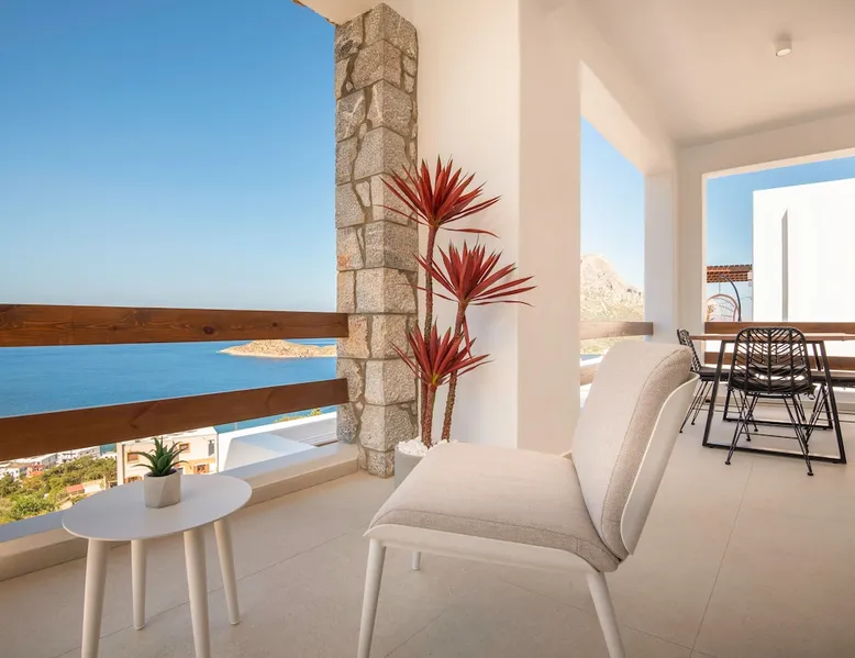 Welcome to Luna! Beneath the majestic Kalymnos mountains in the village of Masouri. Here, amidst the serene beauty of nature, our retreat offers a tranquil escape from the hustle of everyday life. Let the breathtaking views of Telendos Island captivate your senses as you unwind in our modern living space, where each corner is adorned with comfort and elegance. Indulge in culinary delights in our fully equipped kitchen, all while being mesmerized by the panoramic vistas of the Aegean Sea. The space As you step inside Luna Apartment, you're greeted by a warm and inviting living space designed for your ultimate comfort. Sink into the plush furnishings of the living room and take in the panoramic vistas through the balcony doors, offering sweeping views of the azure waters and the distant island of Telendos. Adjacent to the living area, a fully equipped kitchen awaits, complete with sleek appliances and a convenient island dining table. Whether you're preparing a leisurely breakfast or a gourmet dinner, you'll find everything you need to indulge your culinary desires while soaking in the mesmerizing sea views. The apartment features two bedrooms, providing ample space for families or groups of friends traveling together. The master bedroom boasts a luxurious queen-size bed, offering a serene retreat for restful nights and uninterrupted slumber. The second bedroom offers flexible sleeping arrangements, with the option of either a king-size bed for added comfort or two single beds for individual preferences. The modern bathroom of Luna Apartment is a sanctuary of relaxation, featuring a stylish stone sink and a spacious walk-in shower. Pamper yourself with a rejuvenating shower after a day of exploration, and feel refreshed as you prepare for another unforgettable day on the island. Outside, the private balcony beckons you to bask in the Mediterranean sun and savor the beauty of your surroundings. Whether you're enjoying your morning coffee as the sun rises over the horizon or unwinding with a glass of wine as the colors of sunset paint the sky, the balcony offers the perfect vantage point to take in the ever-changing panorama. With its prime location, stylish interiors, and unparalleled views, Luna Apartment invites you to experience the magic of Kalymnos in comfort and style. Whether you're seeking adventure or relaxation, you'll find it all within reach at Luna Apartment. Book your stay today and embark on a journey of discovery in the heart of the Aegean. Guest access Enjoy exclusive full private access to the spacious balcony and the entire apartment. Relax in the cozy living space, savoring panoramic views of the Aegean Sea. With a fully equipped kitchen and private amenities, experience tranquility and comfort throughout your stay. Registration details 1313190