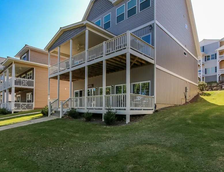 Lake Front • 6 Bedrooms • 4 Baths • Sleeps 18 • No Pets Dock Holiday is a spacious farmhouse design with direct access to the beach and lake, including a dedicated boat slip for guests. With accommodations for up to 18, it is one of the largest-capacity homes at Chesnut Bay. An enormous great room and open kitchen – the latter featuring stainless steel appliances, modern cabinets and 9-foot serving island and bar seating for 4 – enjoy fabulous direct views of the lake. A farmhouse-style dining t The space AMENITIES • 6 bedrooms, 4 bathrooms • WiFi • Cable television • Sleeper sofa • Refrigerator with ice maker; dishwasher; pots, pans and kitchen tools • Washer and dryer • Linens and towels • Private dock slip • Gas grill • Screened porch with table and chairs RESTRICTIONS Maximum 16 guests. No smoking. No pets. Guest access Chesnut Bay has 2 Beach Areas with Chairs and Umbrellas furnished. Boat and Jet Rentals on Site. 2 Pools, Basketball court and Swing set for the kids. Free Kayaks. Located adjacent to Chestnut Bay Resort is Pirates Bay Waterpark. Guest may enjoy all the amenities to include…… Discounted waterpark admission for Chesnut Bay Resort Guest. Other things to note Three nights minimum for peak season weekend stay. Four nights minimum for holiday weekend stay during peak season. Three nights minimum for Thanksgiving and Christmas. $330 cleaning fee and 10% Alabama lodging tax applicable per rental. Cherokee County surcharge tax $2/night.