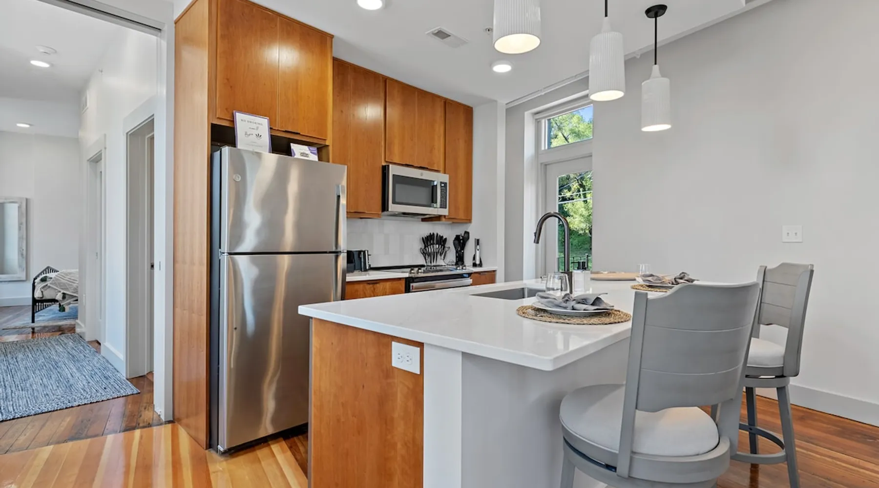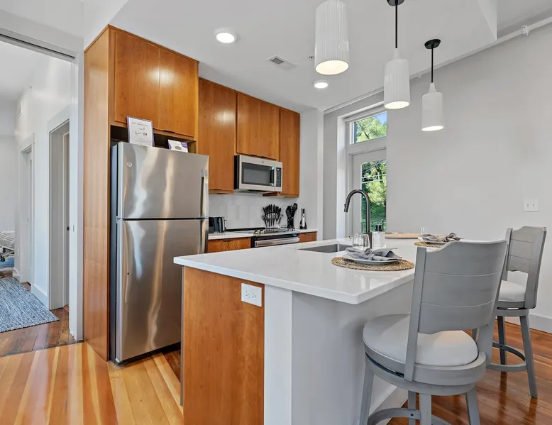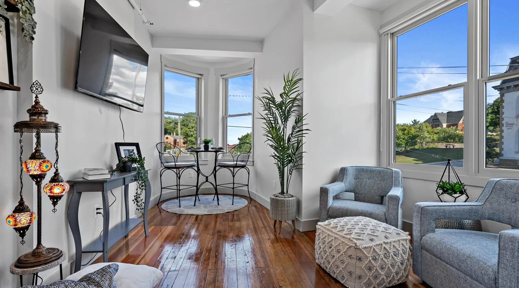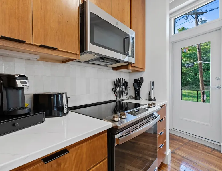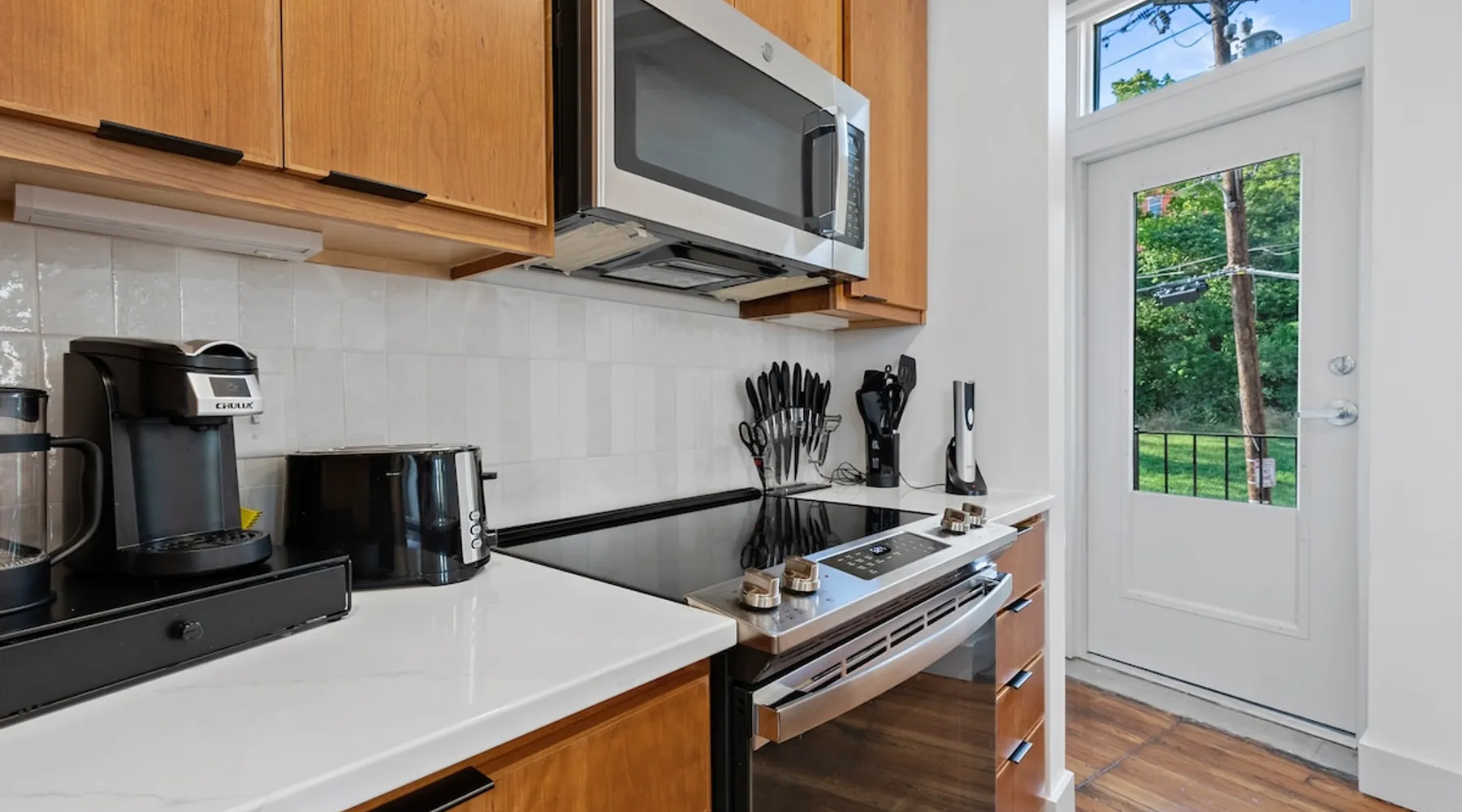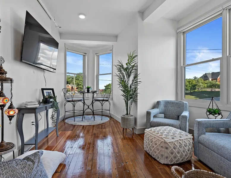 Perched on top of a hill, this luxurious, centrally located, and unique retreat has unparalleled natural light, high-end finishes, views of the neighborhood, and a fireplace⭐. You'll find yourself conveniently located to *everything.* On the 1st floor is our favorite cafe & wine bar (don't worry about noise -- you won't hear a thing). You're a 3-5 minute drive to so many attractions: Over the Rhine, Downtown, University of Cincinnati, the Zoo, the Art Museum, the Aquarium, theaters, and bars. The space **Please note that the patio, outdoor furniture, and outdoor dining area listed as amenities are a part of the Flatiron Cafe & Wine Bar, on the 1st floor. It is closed on Sundays.** We operate ~100 vacation rentals in Cincinnati, and this one is one of the most beautiful, well-appointed, and thoughtfully decorated. ⭐ Location near EVERYTHING (see list below) 🪟 Huge bay windows 🔅 Gorgeous, natural light 🧺 In-unit washer / dryer 💻 Laptop-friendly work desk 💻 High-speed wi-fi 📺 Smart TV 💎 Well-appointed kitchen 💎 Luxury tile bathroom 💎 Super comfortable sofa 💎 350 thread-count hotel sheets 🛋️ Separate seating area for reading and relaxing TOP Attractions that we are near: 🍷☕ The famous Flatiron Cafe & Wine Bar is located on the 1st floor 💃🍺🍜 2-minute drive to Over the Rhine, Cincinnati's food & entertainment district 🏢 3-minute drive to downtown 👩⚕️ Great for travel nurses / doctors: just minutes to UC Health, Cincinnati Childrens, Christ Hospital and more. ⭐ Over 100 cafes, bars, restaurants within 5-10 minute drive 🎓 3-minutes to University of Cincinnati 🦒 5-minutes to Cincinnati Zoo 🖼 5-minutes to Cincinnati Art Museum 🖼 7-minutes to Contemporary Art Museum 🎶 6 minutes to Andrew J Brady Music Center ⚾ 7 minutes to Great American Ballpark ⚽ 7 minutes to TQL Stadium (FC Cincinnati) 🏈 8 minutes to Bengals Stadium (Paycor Stadium) 🐟 7 minutes to to Aquarium 🎶 11 minutes to Riverbend Music Center 🎢 25 minutes to Kings Island Theme Park ⭐ 25 minutes to Creation Musem ⭐ 35-45 minutes to Ark Encounter Guest access You will receive your door codes 2 hours prior to check-in. Other things to note **Please note that the patio, outdoor furniture, and outdoor dining area listed as amenities are a part of the Flatiron Cafe & Wine Bar, on the 1st floor. It is closed on Sundays.**