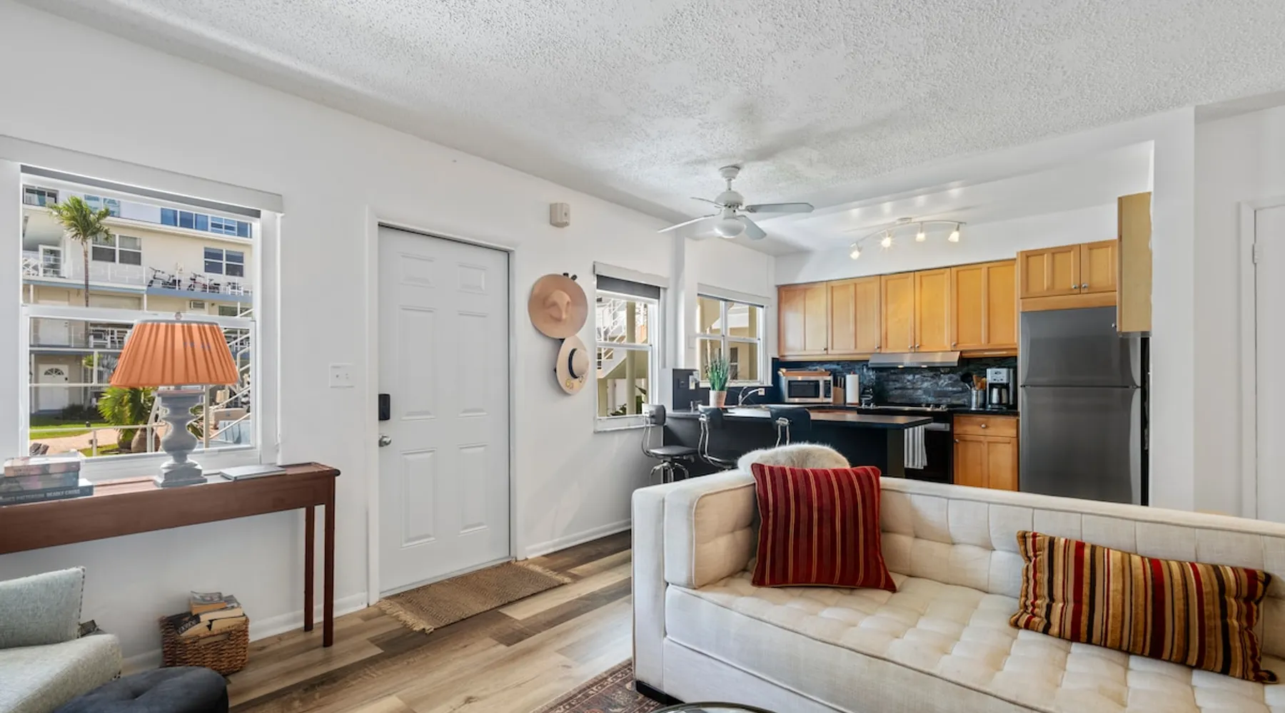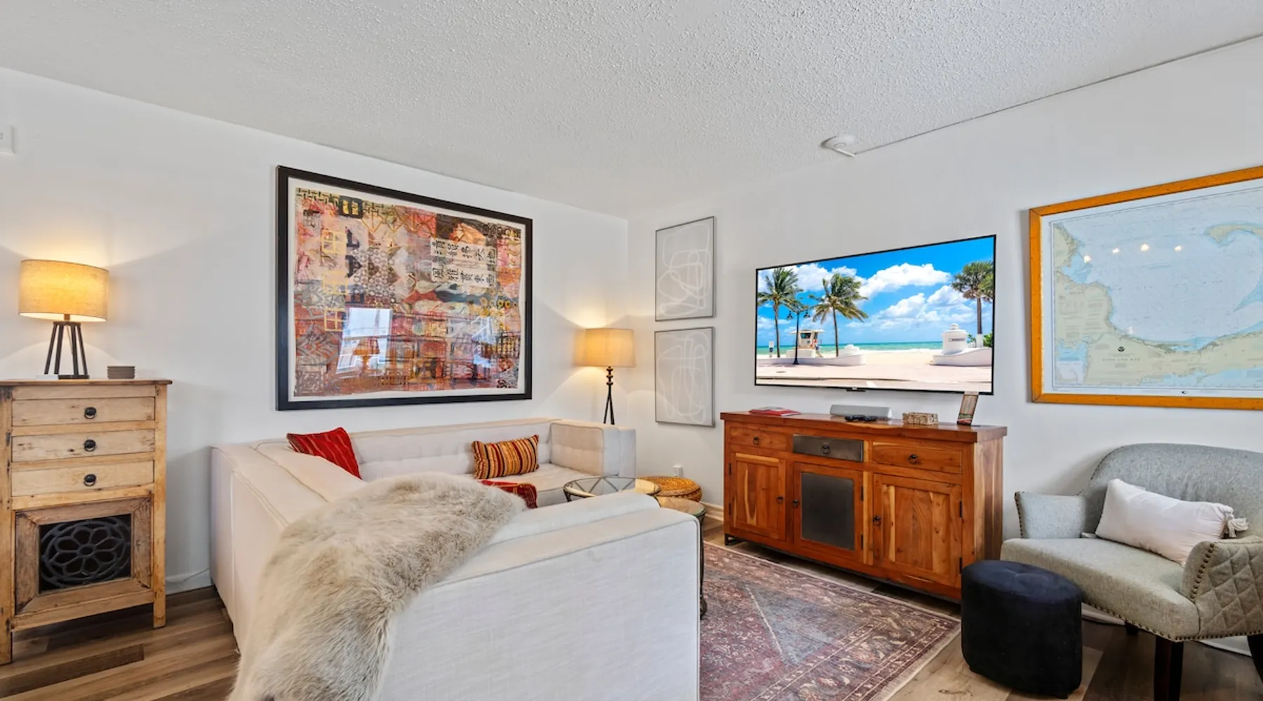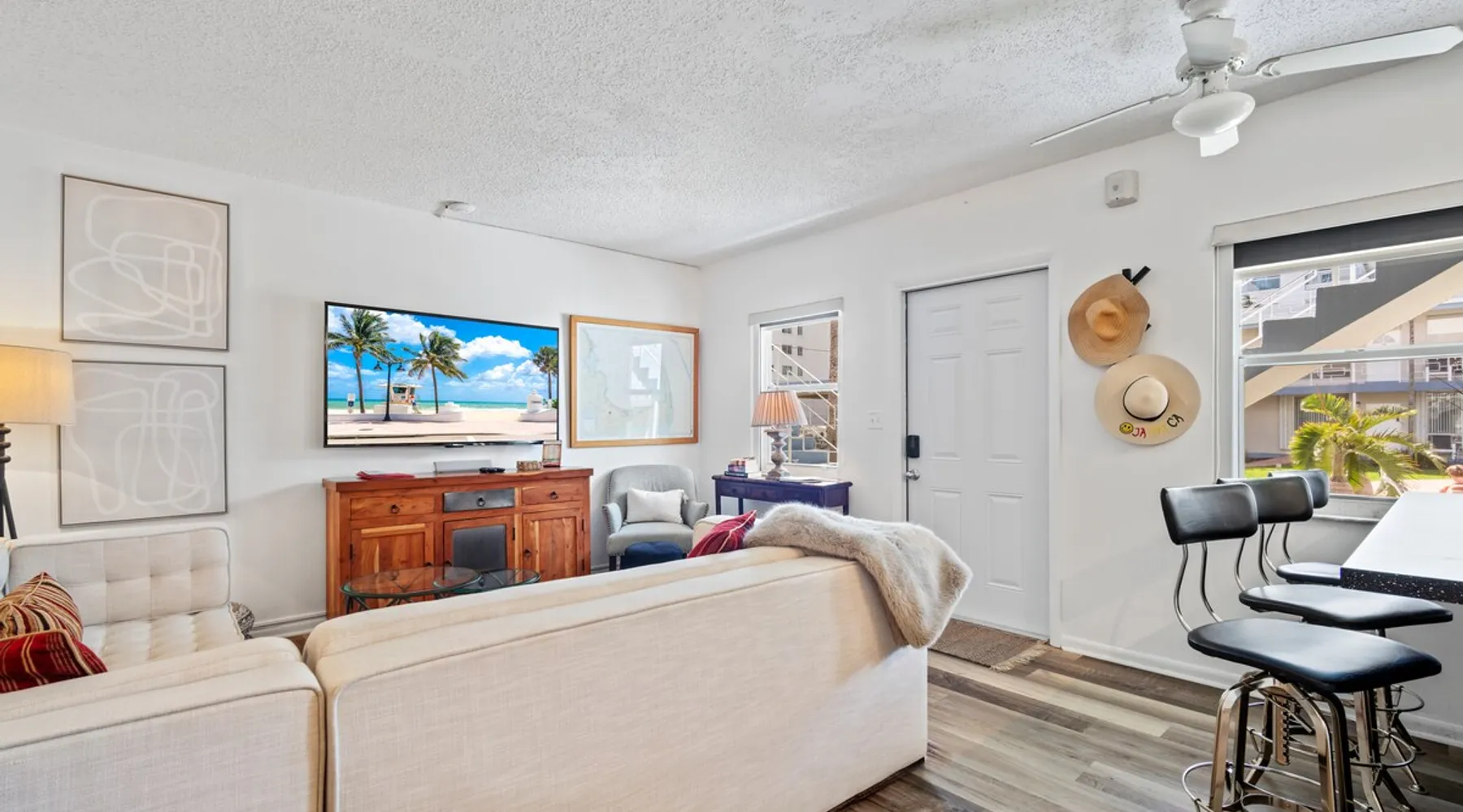 Situated directly on the Intracoastal Waterway, Holiday Isles Yacht Club is only a 3 block walk to beautiful Fort Lauderdale Beach! Restaurants, shops, nightlife and live entertainment are everywhere! Unwind at the heated pool or enjoy breathtaking sunrises and sunsets from the waterfront decks. This 1-bedroom, cozy apartment includes high-end furnishings, open kitchen, comfortable king-sized bed and a spa-inspired bathroom. 5-minute drive to Galleria Mall and to Las Olas Blvd, with its boutique The space Situated directly on the Intracoastal Waterway, Holiday Isles Yacht Club is only a 3 block walk to beautiful Fort Lauderdale Beach! Restaurants, shops, nightlife and live entertainment are everywhere! Unwind at the heated pool or enjoy breathtaking sunrises and sunsets from the waterfront decks. This 1-bedroom, cozy apartment includes high-end furnishings, open kitchen, comfortable king-sized bed and a spa-inspired bathroom. 5-minute drive to Galleria Mall and to Las Olas Blvd, with its boutiques, art galleries, sidewalk cafes and bars. The space The 1-bedroom apartment includes: • High speed internet • 65" flat screen TV with Netflix, Amazon Prime, Roku • Mini Split AC units in living and bedroom • Modern, open kitchen with SS dishwasher, oven, stovetop, microwave and full-size fridge/freezer Located in a lovely, quiet residential neighborhood with all the action and several neighborhood gems, just a few blocks away! Location, location, location! • Steps from several neighborhood hot spots, including Archibald's Village Bakery, #3 on Yelp's 100 best restaurants list. • 5-minute walk to Fort Lauderdale beach, restaurants, and live entertainment. • 15-minute walk to Sebastian Beach. • 15-minute ride to "The Drive" in Wilton Manors. Other things to note These are some of our favorite restaurants and bars walking distance: Takato. Impeccable and chic sushi restaurant serving delicious and unusual combinations of Japanese-Korean seafood & meat plates and really good cocktails with perfect ocean views from the terrace. Try the Maguro Foie Gras and pair it with the Shikoku Margarita... you'll thank me later ;-). For Brunch you can't go wrong with Village Cafe. We stop there after we go biking, and it's a perfect place to sit outside and sip a mimosa while waiting on your Classic or Village Benedict. For an all around good restaurant and an even better bar, go to S3 (Sun Surf Sand). Right across from the sandy beach, this place is uber friendly, and fun (and inexpensive) around happy hour. The sunsets here are perfect. If you want to go upscale, don't go anywhere else than Evelyn's and MAASS at the Four Seasons. Evelyn's is one of the best Mediterranean restaurants around and the service is flawless. MAASS with its Japanese inspired dishes and famous chef (Ryan Ratino) is a must! A few of our favorite bars are: Wine Garden, an intimate, quiet garden terrace serving wine, pizza and cheese boards. It's lovely! For something not walking distance and a little more LGBTQ inspired, try DrYnk in Wilton Manors. NYC vibe meets South Florida chill at this upscale gay bar with a very cool back yard. Good, solid drinks, and ambiance. Pregame here before hopping to the other bars. No Man's Land is a very unique, cool bar a little further South, closer to Downtown Fort Lauderdale. Craft cocktails with a hideaway feel, we love this place, and we're willing to bet you will too. There's plenty more favorite places we like to hang out, so feel free to ask us! Guest access Guests have access to the common grounds of the Holiday Isles Yacht Club, which include: • Heated pool • Shuffleboard • BBQ grills • Sundecks • Waterfront dock with access to Water Taxis Other things to note Some pets allowed - There is a $195 pet fee if you travel with one pet, and $275 for two or more pets. Pet fee is NOT included in the accommodation fee and must be paid separately. Pack n'Play and high chair available upon request TVs in this property are smart so you'll be able to log into your favorite streaming apps including those for broadcast TV. There is no cable TV. If you want to watch a game or any live channel you'll need to watch it on your own device. If you have an Apple device (iPhone iPad) you'll be able to stream to the TV. You'll be able to log into any streaming app for which you have an account. We don't provide streaming app accounts. DO NOT THROW WIPES DOWN THE TOILET. IF YOU DO, YOU'LL BE FINED $1500 FOR ANY PLUMBING ISSUES. No parties or gatherings. Absolutely no smoking of any kind inside the property, including vaping or medicinal marihuana. If we smell smoke you will be fined $500. You're welcome to smoke outside. No loud music after 9PM. Per City of Fort Lauderdale: -No commercial vehicles allowed -No street parking -No more than 3 guests allowed at any time on property total. -No commercial filming allowed -No noise after 9PM -No event PARKING NOTICE There is ample, free, on street parking for guests of this unit, located within the same block and/or across the street from Holiday Isles Yacht Club. There is also on site parking, available for an additional cost of $10.00 per day. This parking is available on a first come, first served basis (25 spots for 30 units) and it is imperative that it is coordinated in advance. If this is of interest during your stay, please confirm at time of reservation, so that I can provide additional instructions. Onsite parking must be paid for in cash and to a separate party upon arrival; I do not receive any of these parking funds and have no control over the availability of the parking spaces. The parking immediately in front of the building is $10/day and you'll need to get a parking permit from the Administration office, which is only open in the mornings. That said, if you don't want to pay for parking, you're welcome to park across the street diagonally around the empty lot. That parking is free. Since check-in is at 3PM, and the Admin office will 