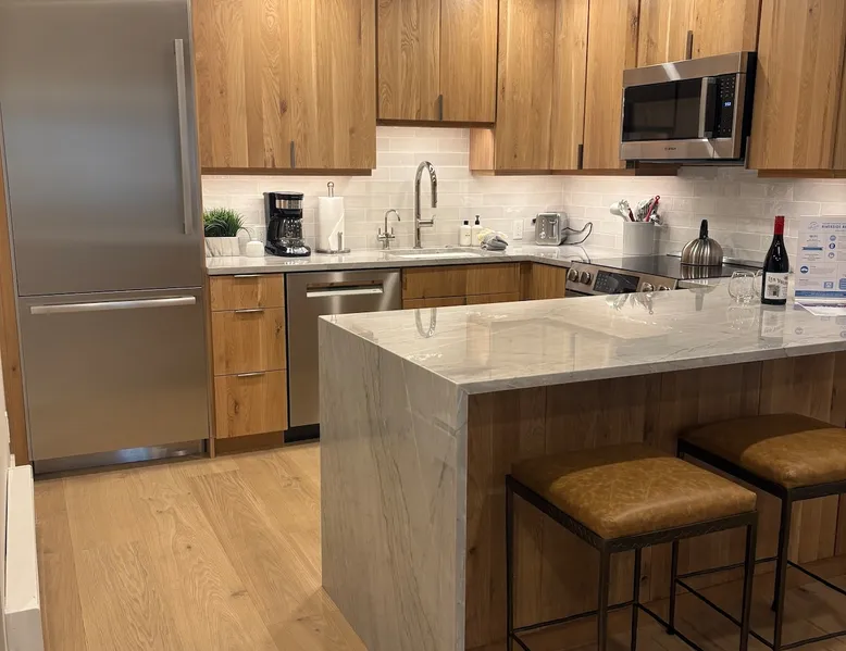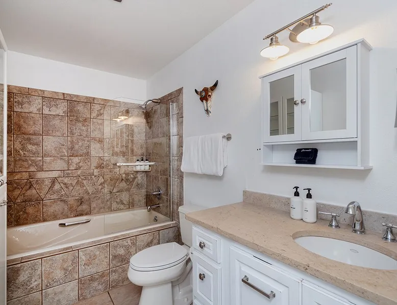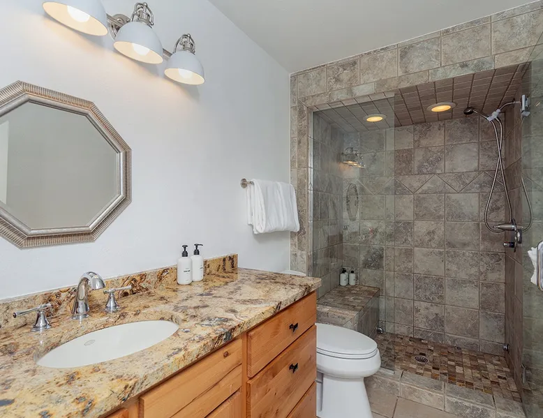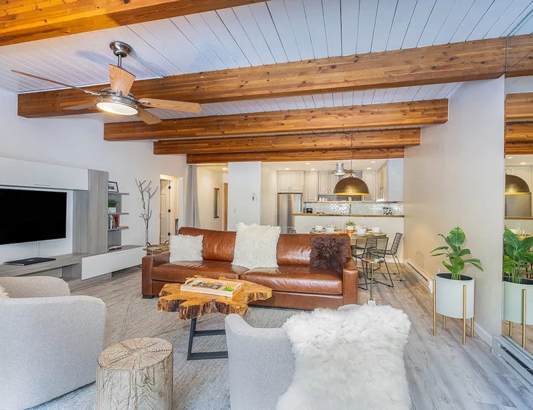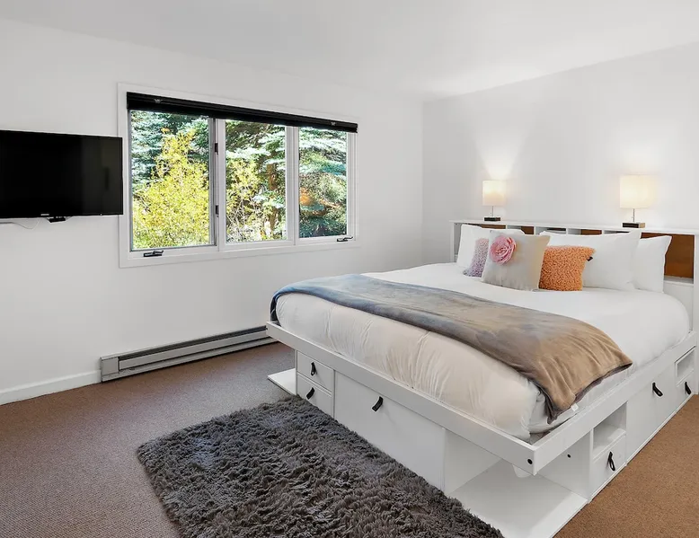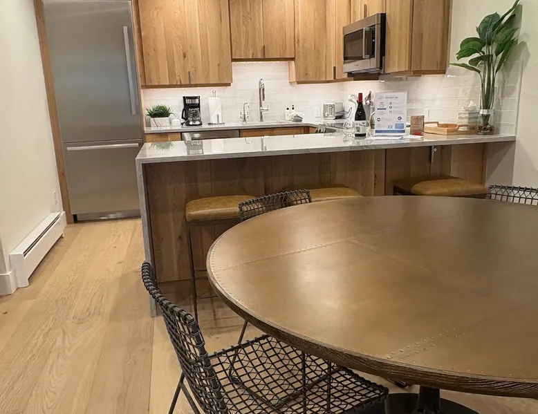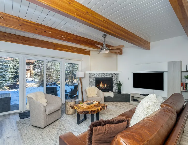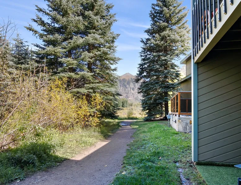 This lovely two bedroom, two bath single level condo overlooks the San Miguel River Trail and offers nearly 1200 square feet of space for your Telluride vacation. The open floor plan features space to relax or entertain with the living, dining and kitchen areas providing a spacious great room. The space This very comfortable two bedroom, two bath single level condo overlooks the San Miguel River Trail and offers nearly 1200 square feet of space for your Telluride vacation. The open floor plan features space to relax or entertain with the living, dining and kitchen areas providing a spacious great room. The quiet location is both close to the action and also tucked away into a quiet corner of town. You'll be just steps to skiing/gondola, shops, restaurants and Town Park. The Bear Creek hiking trail is right outside you front door. Communal hot tub (Lodging In Telluride does not manage hot tub closures, cleanings or maintenance. We cannot be held responsible for refunds for closures during your stay). You'll go down one flight of stairs to this condo's entrance which offers lots of space. The entryway opens to a spacious living and dining area overlooked by the fully stocked kitchen. The living area features a fireplace and opens to a large deck overlooking the River and River Trail. It's the perfect spot to enjoy your morning coffee or an evening glass of wine. Off of the living area a hallway splits the large king bedroom with an en suite bathroom (tub/shower combo) and a twin/split king bedroom. The guest bathroom in between offers a walk-in shower. Riverside A03 at a glance: -2 bedrooms, 2 bathrooms, sleeper sofa -Patio on River -Fully equipped kitchen with dishwasher, stove/oven and microwave -Gas Fireplace -Quiet location with easy access to River Trail and Town Park -Short walk to Gondola and Lift 8 -Washer & dryer in condo -One non-designated parking space -Free wifi -High chair, Pack n Play, baby gates available upon request (fees apply) Please note this unit does not have A/C, same as most units in Telluride Rooms and Beds: -Sleeps 6 -Primary Bedroom: King bed with En Suite Bathroom -Second bedroom: 2 twin beds (can be converted to King upon request) -Sleeper sofa Riverside Condo Complex: -Communal Hot Tub (managed by HOA) -Located at the Bear Creek Trail Head -Right on San Miguel River Trail Riverside Condo Location: -Town of Telluride -On the River Trail -5 minute walk to gondola/ Lift 8 -Short walk to main street shops and restaurants -5 minute walk to Telluride Town Park Getting around Telluride: -No car needed -Town, lifts, gondola, and all amenities are walkable -The Galloping Goose (free bus) runs town loops with stops within walking distance This lovely property is professionally managed by Lodging In Telluride. We are a 100% locally operated vacation rental management company. We want you to feel at home in Telluride and we know you’ll find our team attentive and approachable. Please review our cancellation and other policies when booking. Travel insurance is advised. TOT License #00565 Guest access An electronic guidebook link including door code and property details will be sent 7 days and 3 days prior via text message.