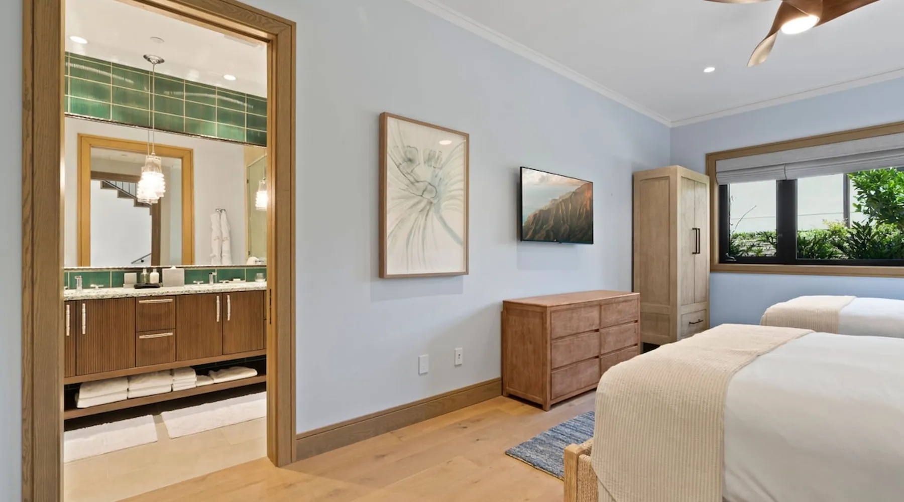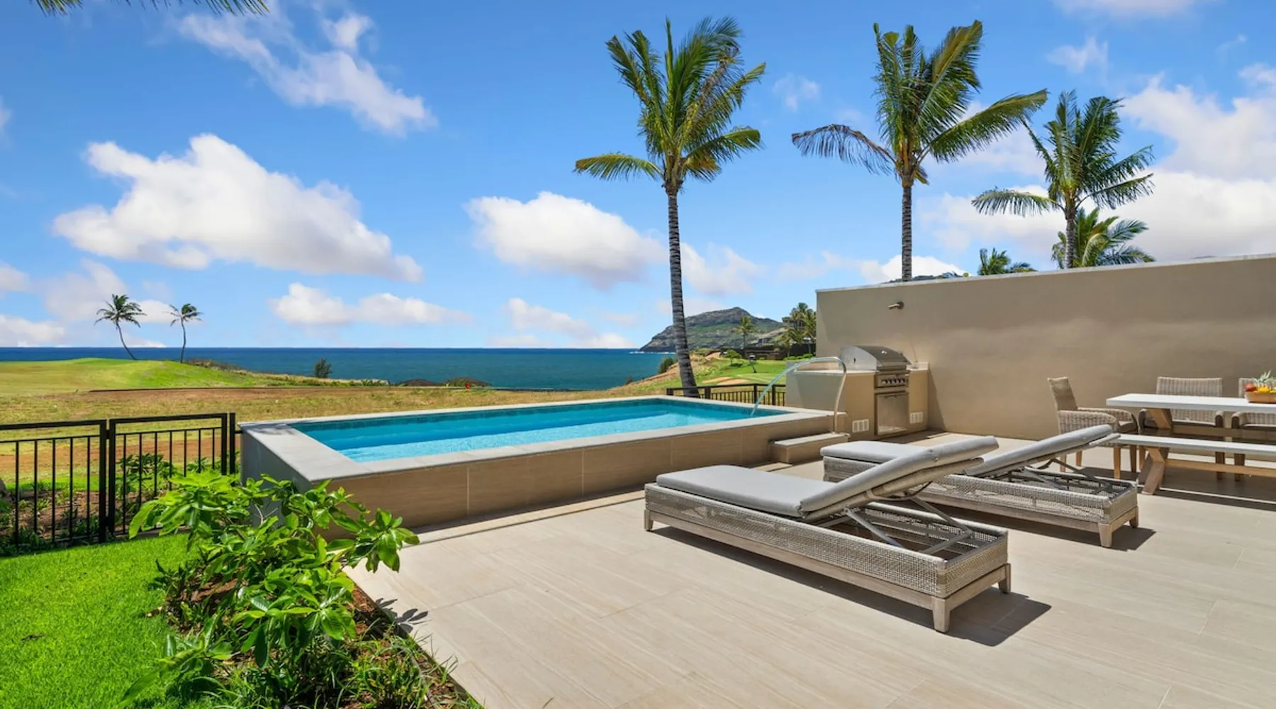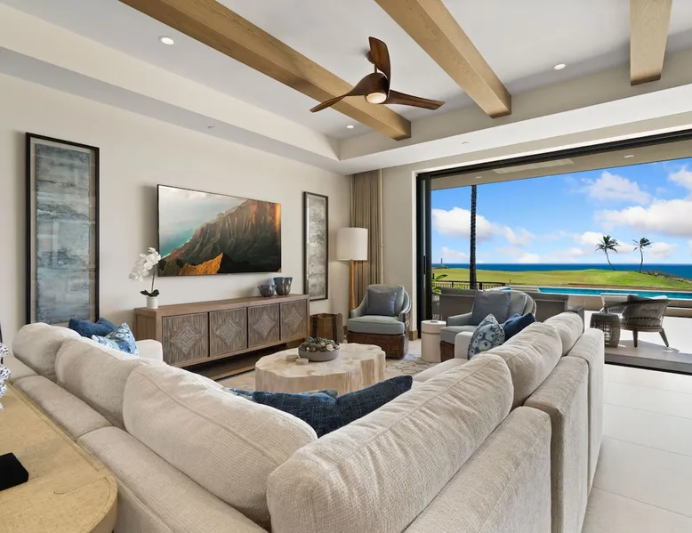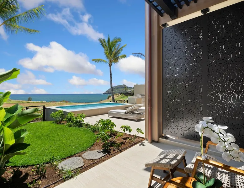 Private Luxury at Timbers Kauai The space Unveil Your Hawaiian Dream: Luxury Townhome at Timbers Kauai Escape to paradise at this stunning 4-bedroom townhome within the prestigious Timbers Resort. Immerse yourself in over 4,000 square feet of luxurious living space, designed for seamless indoor-outdoor living. Breathtaking panoramic ocean views will greet you every morning, making this bi-level residence an unforgettable retreat. Unwind in Unmatched Comfort: Spacious Living: Spread out in the open-concept living area. A chef's kitchen, dining for eight, and a comfortable living room flow seamlessly onto a private lanai with a sparkling pool. Relax on the chaise lounge, soak up the sun, or enjoy a movie night in the comfort of your spacious living area. Wake Up to Paradise: Masterful Retreats: Ascend to the upper level and discover two luxurious master suites, each featuring a king bed and en-suite bath. The grand master suite pampers you with a large walk-in closet, soaking tub, dual vanity, spacious glass walk-in shower, and a private lanai with stunning ocean views. Discover two inviting havens on the lower level. One features plush comfort with two queen beds and an en-suite bathroom boasting a double vanity and a glass-tiled shower. The other boasts a private lanai with ocean views, and a king-size bed, inviting you to sink into relaxation. Unwind in the luxurious soaking tub, rinse off in the refreshing glass-tiled shower, or step outside to your private outdoor rain shower surrounded by lush foliage for a truly unforgettable experience. Beyond Your Doorstep: - Unmatched Amenities Await: This exceptional townhome grants you access to all the world-class amenities offered by Timbers Kauai and Hokuala, just a short walk away: - Infinity pool & hot tub - Access to Timber’s Fun Container with bikes, kayaks and beach accessories - Hualani’s Restaurant and Bar - Ocean Course, a Jack Nicklaus signature golf course - The Farm at Hokuala, an on-site organic farm - Fitness center - Tennis & pickleball courts - Tykes Room (for the kids!) -Activities such as lei-making, camp-fires, schedule tbd. - Valet parking - Full-service spa - Daily Maid Service - Weekly events - Concierge service - Self or Valet Parking Indoor Features: - 3 King & 2 Queen Beds - Air Conditioning - Full Kitchen - Washer & Dryer Outdoor Features: - Lanai with built-in barbeque and spacious dining and seating areas - Ocean views - Private Pool - Backyard - Timbers Kaua’i and Hokuala’s amenities The Area: - Located on Ocean Course at Hokuala - 5 minute drive or 15 minute walk to Kalapaki Beach - 8 minute drive to Lihue Airport **This home is currently listed for sale Hawaii Life Rentals is a locally owned, licensed real estate company with rentals on Kauai, Maui, Oahu, and Hawaii. We offer on-island personal assistance and Concierge services. Rates do not include taxes, cleaning and applicable fees. Hawaii Life/VRBO bookings: Guests must sign a rental contract within 48 hours of booking to confirm the reservation. TA-001-985-0752-01 Registration number 350012160059, TA-001-985-0752-01