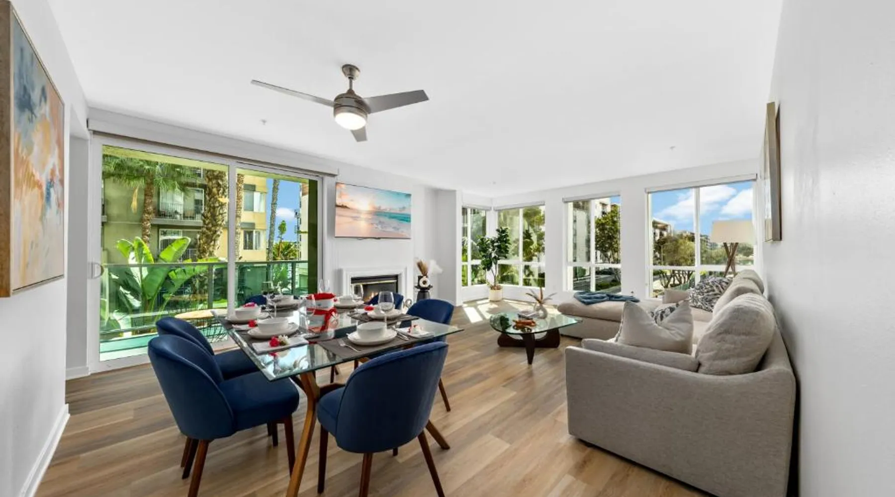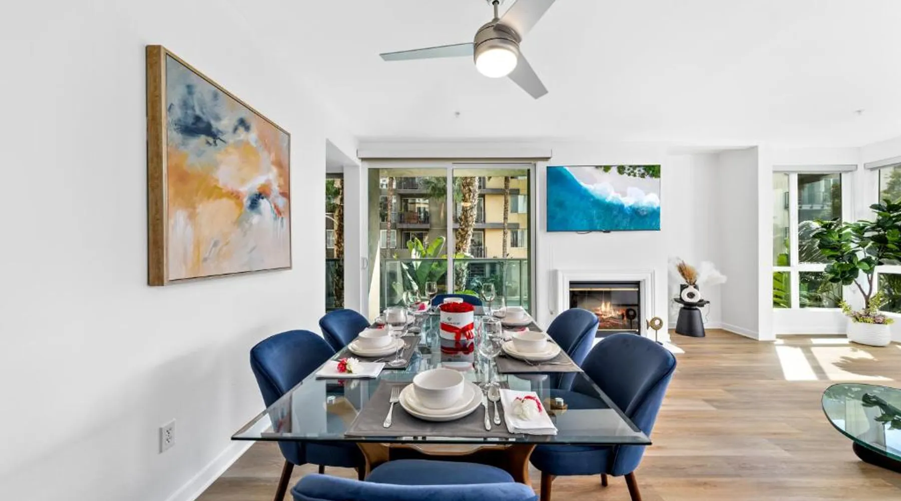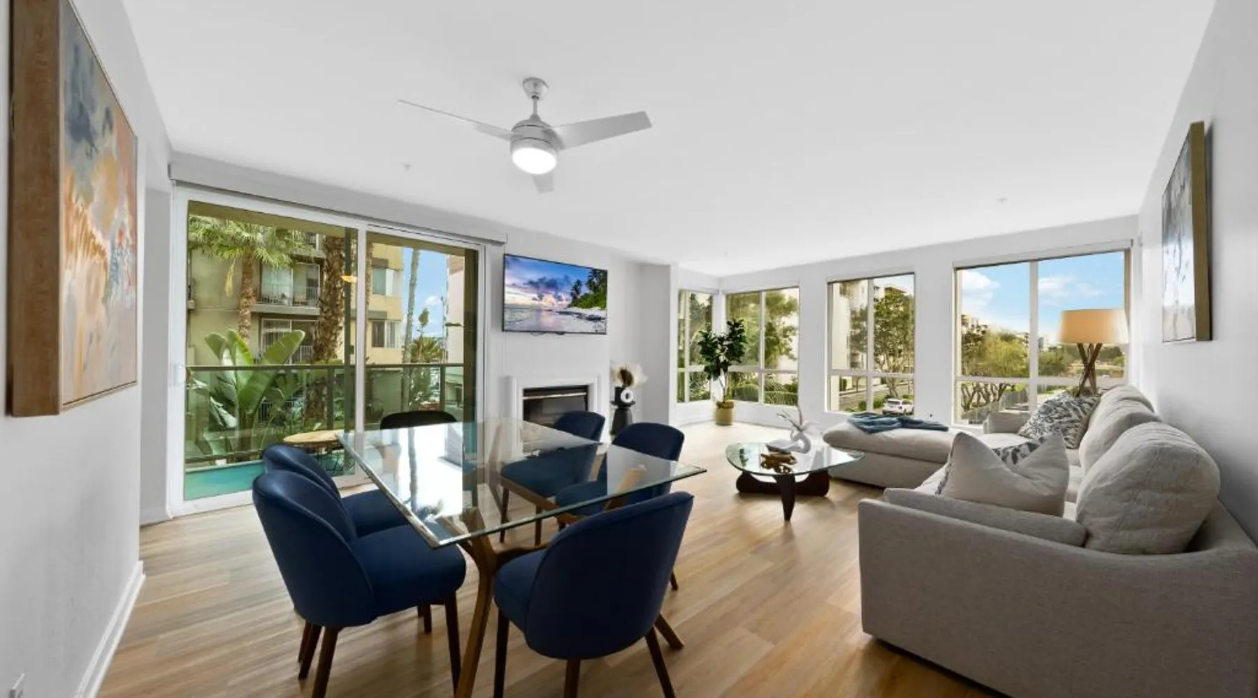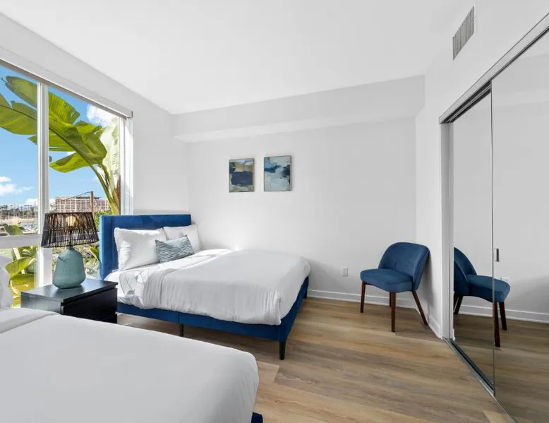 Beachfront Living: The Turquoise Lounge in Marina del Rey offers a private beach area and direct beachfront access. Guests enjoy stunning sea views and a swimming pool with a view. Comfortable Amenities: The apartment features a fitness center, sauna, hot tub, and terrace. Free WiFi is available throughout the property, ensuring connectivity for all visitors. Convenient Location: Located 4.3 mi from Los Angeles International Airport, the property is a 12-minute walk from Marina Del Rey Beach. Nearby attractions include Venice Beach Boardwalk and Santa Monica Pier, each 1.2 mi away. Outdoor Activities: Guests can engage in hiking and cycling, or enjoy boating in the surrounding area. The property provides a private check-in and check-out service, concierge, and full-day security. Guests will have a special experience as this apartment features a pool with a view, a hot tub and a sauna. Featuring a private entrance, this air-conditioned apartment consists of 1 living room, 2 separate bedrooms and 2 bathrooms with a walk-in shower and a bath. Guests will find a stovetop, a refrigerator, a dishwasher and kitchenware in the well-equipped kitchen. The apartment also offers a barbecue. The spacious apartment provides a washing machine, soundproof walls, a tea and coffee maker, a flat-screen TV with streaming services, as well as sea views. The unit offers 4 beds.