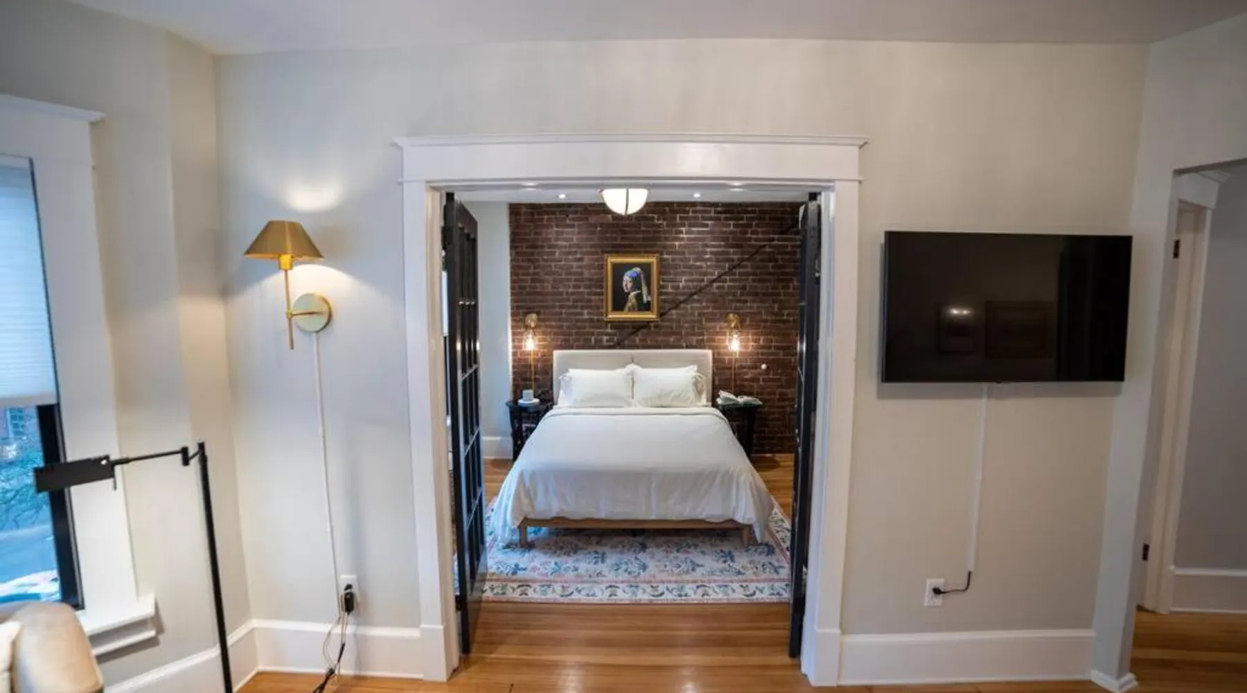 Spacious Accommodations: Apt in the heart of Main Street offers a spacious apartment in Stroudsburg. The property features two bedrooms and a bathroom, providing ample space for guests. Modern Amenities: Guests enjoy free WiFi, air-conditioning, and a washing machine. The apartment includes a fully equipped kitchen with a refrigerator, oven, stovetop, microwave, and toaster. Additional amenities include a dining area, seating area, and free toiletries. Convenient Facilities: The apartment provides free on-site private parking and laundry service. Reception staff speak English, ensuring smooth communication for all guests. Local Attractions: Delaware Water Gap National Recreation Area is 5 mi away, Great Wolf Lodge Pocono Mountains 9.9 mi, and Lehigh Valley International Airport 30 mi from the property. Other nearby attractions include Kalahari Waterpark (17 mi) and Pocono Raceway (22 mi). In the well-equipped kitchen, guests will find a stovetop, a refrigerator, an oven and a microwave. The spacious apartment features air conditioning, a washing machine, a tea and coffee maker, a seating area and a flat-screen TV. The unit has 2 beds.