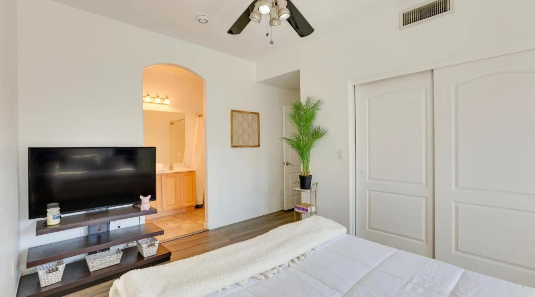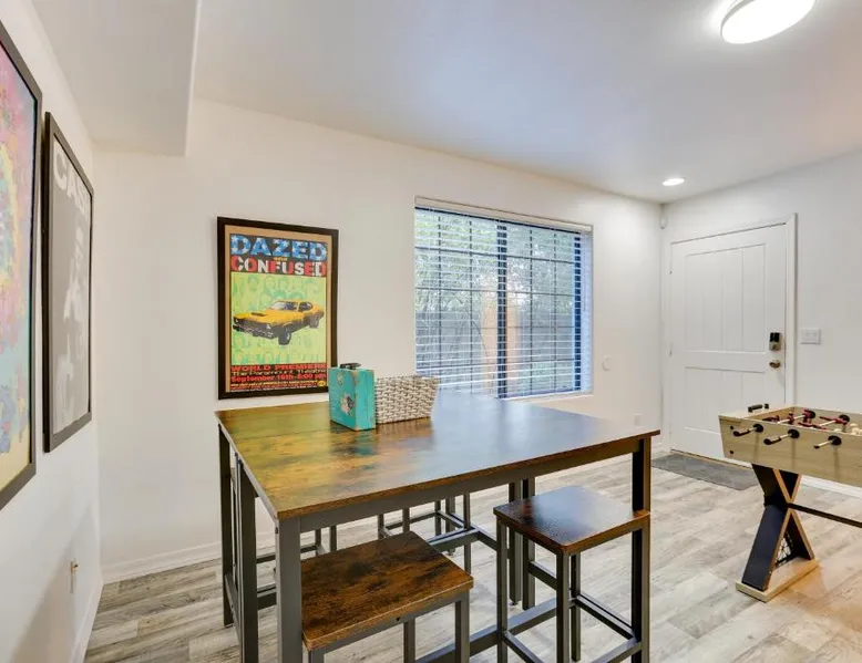 Spacious Accommodations: Rooftop Patio, Skyline Views Phenix Townhome! in Phenix offers a spacious holiday home with three bedrooms and four bathrooms. The living room provides ample space for relaxation. Leisure Facilities: Guests can enjoy a spa and wellness center, outdoor swimming pool, and hot tub. The property also features a games room, ensuring entertainment for all ages. Modern Amenities: The holiday home includes air-conditioning, a balcony, washing machine, patio, kitchen, and free WiFi. Additional amenities include a barbecue, hairdryer, coffee machine, dining table, refrigerator, work desk, free toiletries, microwave, dishwasher, shower, TV, private entrance, kitchenware, wardrobe, oven, and stovetop. Location and Attractions: Located 3.7 mi from Phenix Sky Harbor International Airport, the property is close to Phenix Convention Center (6.2 mi), Copper Square (6.2 mi), Wrigley Mansion (4.3 mi), Heard Museum (4.3 mi), Phenix Zoo (5 mi), Hall of Flame Firefighting Museum (5.6 mi), Burton Barr Library (5.6 mi), Phenix Art Museum (5.6 mi), Desert Botanical Gardens (6.2 mi), and Papago Park (6.2 mi). Boasting a private entrance, this air-conditioned holiday home includes 1 living room, 3 separate bedrooms and 4 bathrooms with a bath and a shower. Guests will find a stovetop, a refrigerator, a dishwasher and kitchenware in the fully equipped kitchen. The holiday home also features a barbecue. The spacious holiday home offers a washing machine, a coffee machine, a wardrobe, a game console and a flat-screen TV with cable channels. The unit has 3 beds.