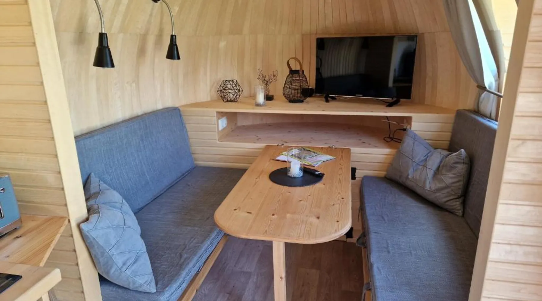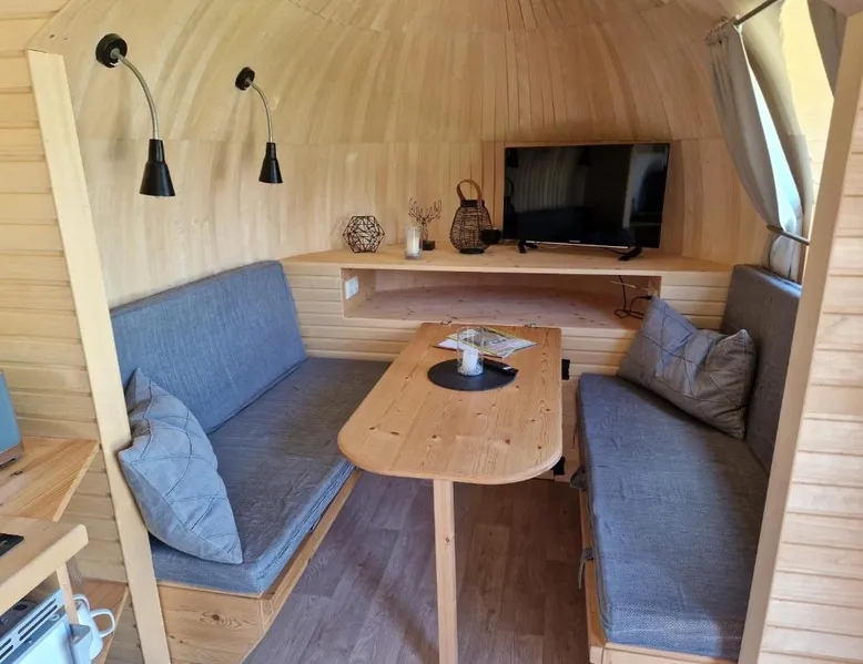 Comfortable Living Space: Tiny Igloo Bergström in Belau offers a one-bedroom apartment with a terrace and a sauna. Free WiFi is available throughout the property. Modern Amenities: The apartment includes a kitchenette, washing machine, and a dining area. Additional features include an outdoor fireplace, seating area, and a children's playground. Convenient Location: Located 45 mi from Lübeck Airport, the property is 9.3 mi from Ploen Main Train Station and 19 mi from Kiel Central Station. Nearby attractions include Sophienhof and Kiel Maritime Museum. Guests will have a special experience as the apartment provides a sauna. Featuring 1 bedroom, this apartment offers 1 bathroom with a shower, a seating area and terrace where you can relax. Guests will find a stovetop, a refrigerator, kitchenware and a toaster in the well-equipped kitchen. The apartment also offers a barbecue. This apartment features a washing machine, a coffee machine, a TV with satellite channels and an outdoor dining area. The unit has 1 bed.