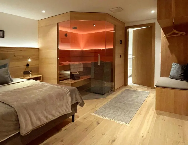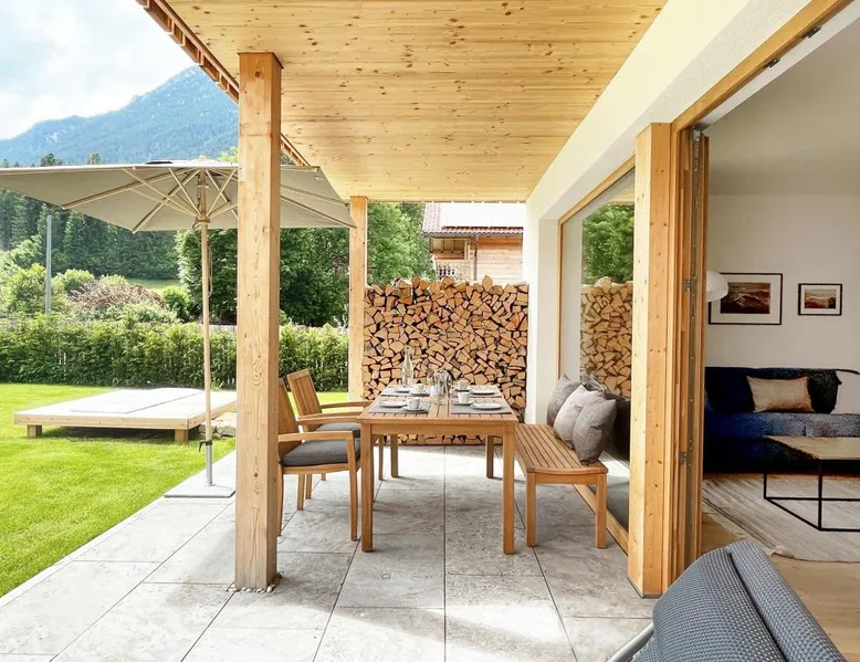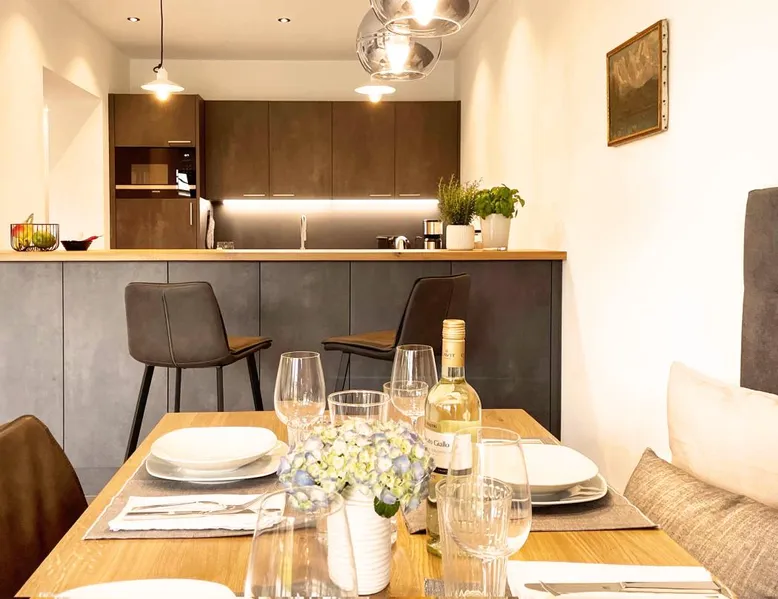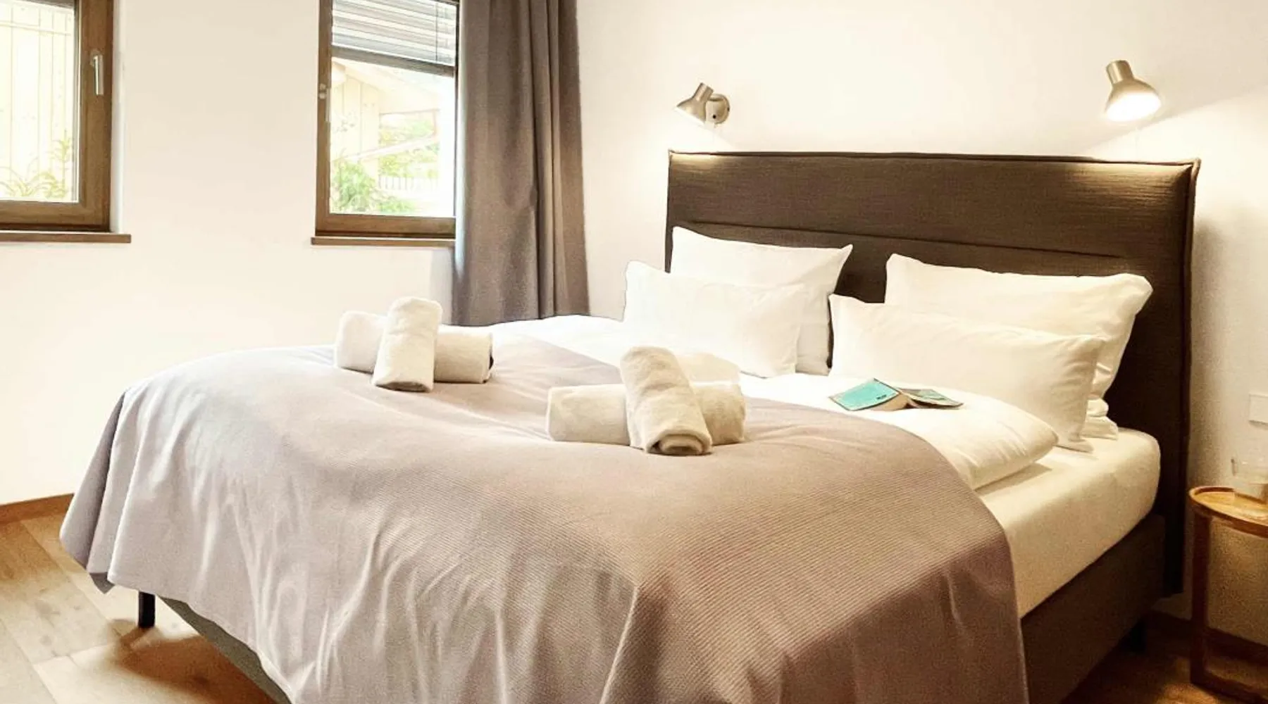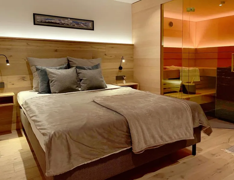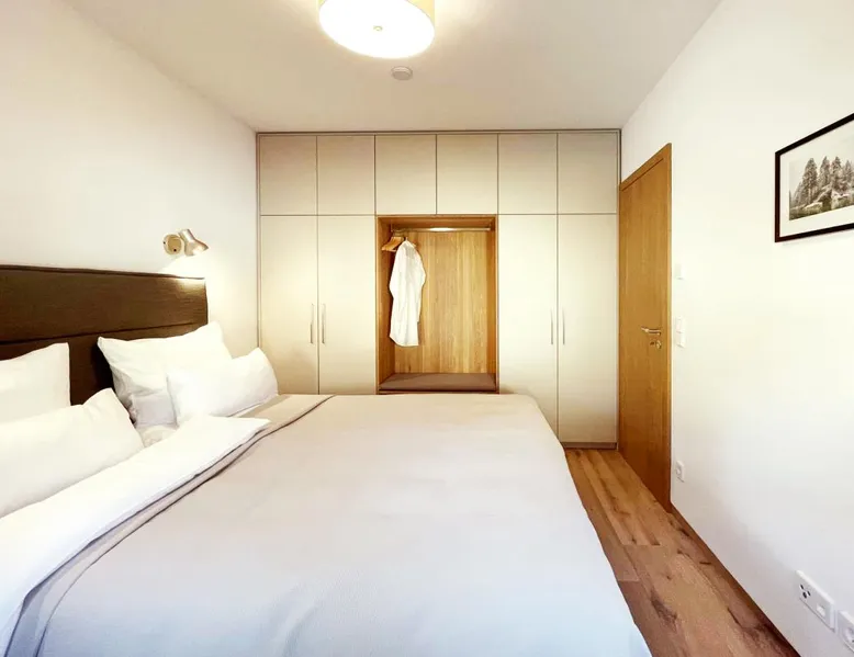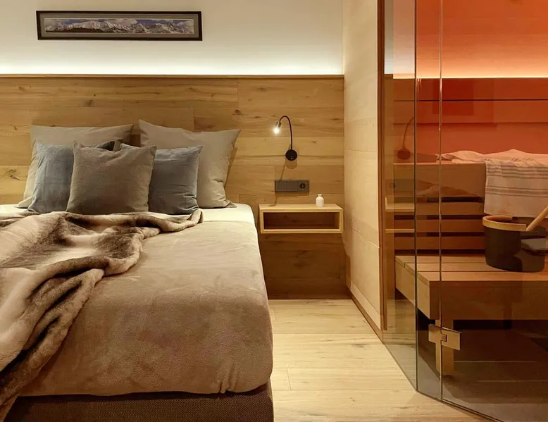 Mountain enjoyment, space to relax and modern design await you in our h9 apartments in Garmisch. In the h9 valley, you will stay in 100 square meters with mountain views, a private garden and a cozy sauna and wellness area. The apartment 'tal' on the first floor has a spacious living and dining room. Behind the bar is an open kitchen. The furnishings are of high quality and mostly custom-made. The h9 valley is ideal for 2-4 people, featuring a bedroom with box-spring bed, large The space A closet wall and bathroom next door are available. If you are planning a vacation with friends and family, you can also use the sofa bed with a comfortable spring mattress or alternatively the box spring bed in the quiet area, next to which there is another spacious bathroom. Your XXL underground parking space with charging station (Wallbox) is reserved for you free of charge. You have direct access to the apartment h9 tal and ample storage space for sports equipment such as bicycles or skis. A vacation in h9 promises both a break and adventure at the same time! Here you can live quietly, as in nature! The hiking trails start right at the garden fence. By public transport you can easily reach many attractions such as the Partnachklamm, the Olympic ski stadium with the ski jump, the mountain railways or the Eibsee. The town center with restaurants and shopping of all kinds is just a five-minute walk away. Feel free to book our additional breakfast service, a filled refrigerator on arrival or the exchange of towels and linens. And if you don't want to completely switch off on vacation: in the h9 you of course have fast Internet, digital radio and TV. Other things to note The tourist tax will be calculated only after booking depending on the number and age of the guests. The spa fee is calculated according to the number of days staying. Partial days are considered full days. 1. Persons aged 16 and over. years of age €3.00 2. Children and adolescents from the age of 6 until their 16th €1.00 3. Severely disabled persons with a degree of disability of at least 80% €1.00 Optional services for a separate fee (can be booked directly with the landlord): - Additional laundry package per person: €15.00 per person - Vegetarian breakfast box: €20.00 per person - Stocked fridge for 2 people: €70.00 per stay - Intermediate cleaning of the house: € 120.00 per stay - Breakfast box - small breakfast: €18.00 per person - Sweet breakfast box: €14.00 per person - Breakfast chocolate croissant: €7.00 per person - Gourmet breakfast box for 2 people: €42.00 per stay - Freshly squeezed orange juice: € 4.00 per stay - Each additional person for the gourmet breakfast: €17.00 per stay - Breakfast pistachio croissant: €7.00 per person