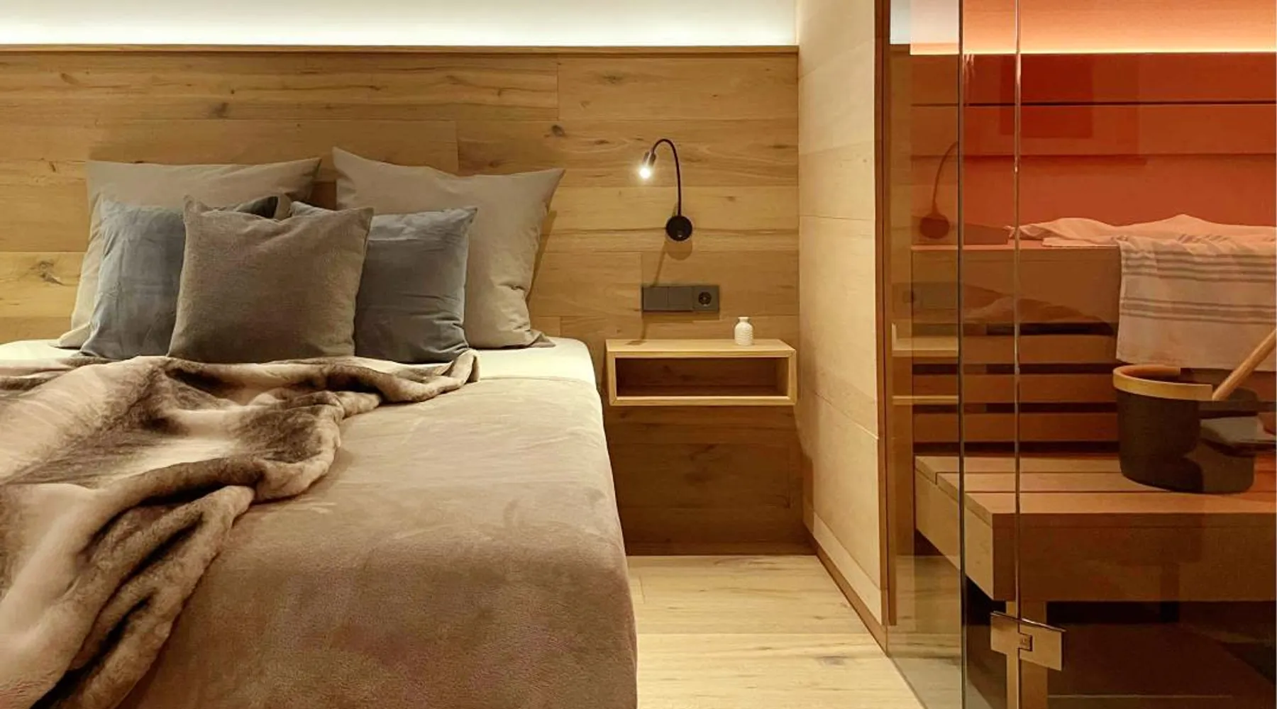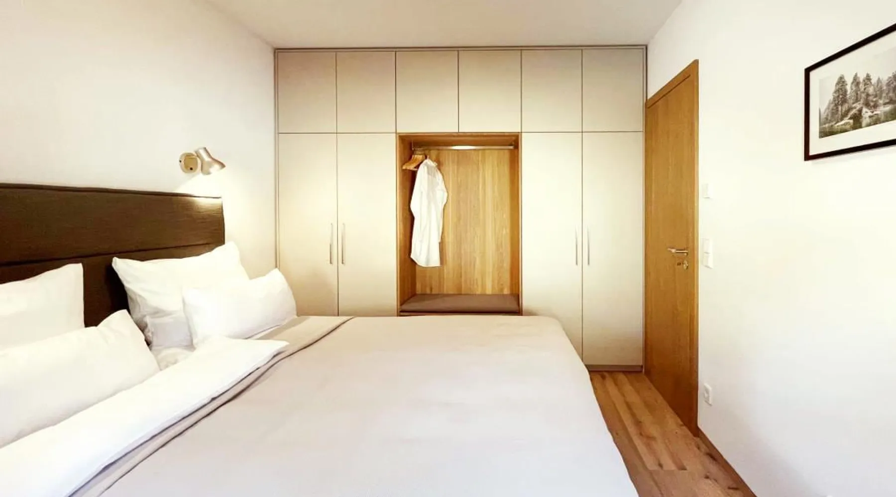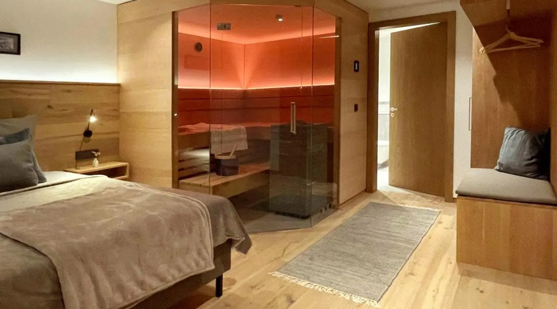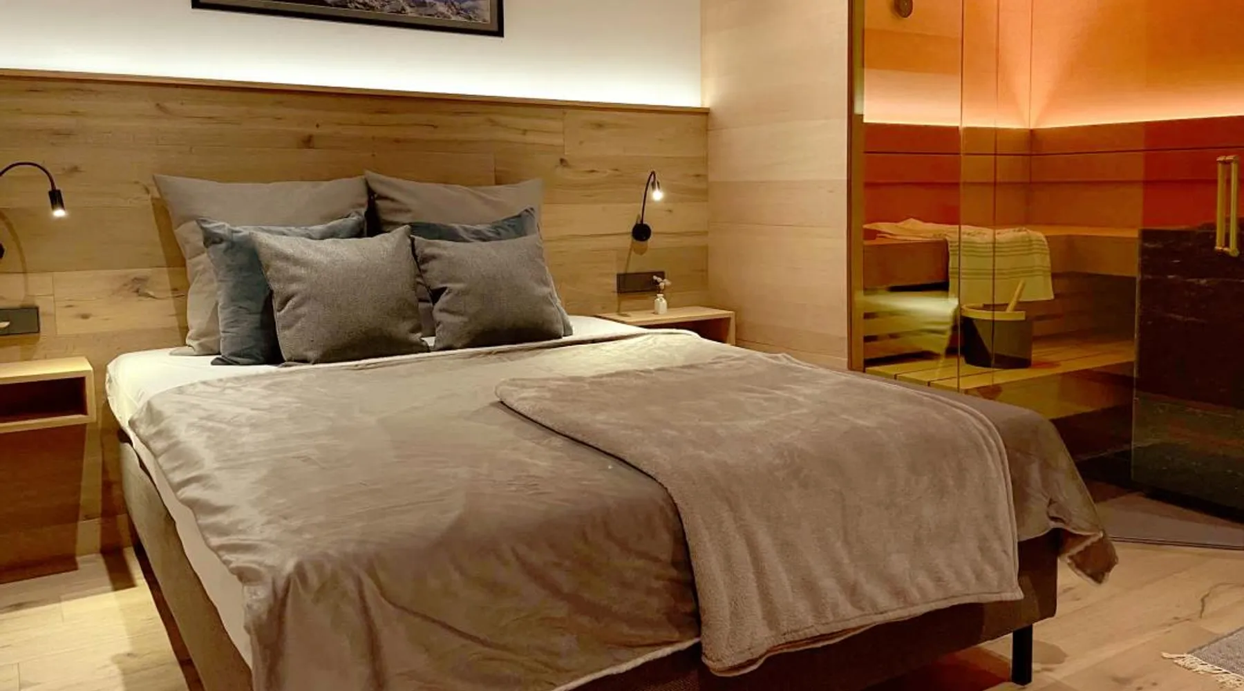 Mountain enjoyment, space to relax and modern design await you in our h9 apartments in Garmisch. In the h9 valley, you will stay in 100 square meters with mountain views, a private garden and a cozy sauna and wellness area. The apartment 'tal' on the first floor has a spacious living and dining room. Behind the bar is an open kitchen. The furnishings are of high quality and mostly custom-made. The h9 valley is ideal for 2-4 people, featuring a bedroom with box-spring bed, large The space A closet wall and bathroom next door are available. If you are planning a vacation with friends and family, you can also use the sofa bed with a comfortable spring mattress or alternatively the box spring bed in the quiet area, next to which there is another spacious bathroom. Your XXL underground parking space with charging station (Wallbox) is reserved for you free of charge. You have direct access to the apartment h9 tal and ample storage space for sports equipment such as bicycles or skis. A vacation in h9 promises both a break and adventure at the same time! Here you can live quietly, as in nature! The hiking trails start right at the garden fence. By public transport you can easily reach many attractions such as the Partnachklamm, the Olympic ski stadium with the ski jump, the mountain railways or the Eibsee. The town center with restaurants and shopping of all kinds is just a five-minute walk away. Feel free to book our additional breakfast service, a filled refrigerator on arrival or the exchange of towels and linens. And if you don't want to completely switch off on vacation: in the h9 you of course have fast Internet, digital radio and TV. Other things to note The tourist tax will be calculated only after booking depending on the number and age of the guests. The spa fee is calculated according to the number of days staying. Partial days are considered full days. 1. Persons aged 16 and over. years of age €3.00 2. Children and adolescents from the age of 6 until their 16th €1.00 3. Severely disabled persons with a degree of disability of at least 80% €1.00 Optional services for a separate fee (can be booked directly with the landlord): - Additional laundry package per person: €15.00 per person - Vegetarian breakfast box: €20.00 per person - Stocked fridge for 2 people: €70.00 per stay - Intermediate cleaning of the house: € 120.00 per stay - Breakfast box - small breakfast: €18.00 per person - Sweet breakfast box: €14.00 per person - Breakfast chocolate croissant: €7.00 per person - Gourmet breakfast box for 2 people: €42.00 per stay - Freshly squeezed orange juice: € 4.00 per stay - Each additional person for the gourmet breakfast: €17.00 per stay - Breakfast pistachio croissant: €7.00 per person