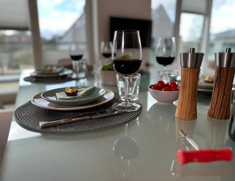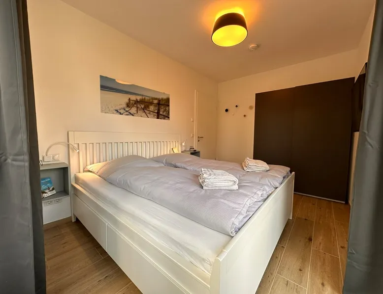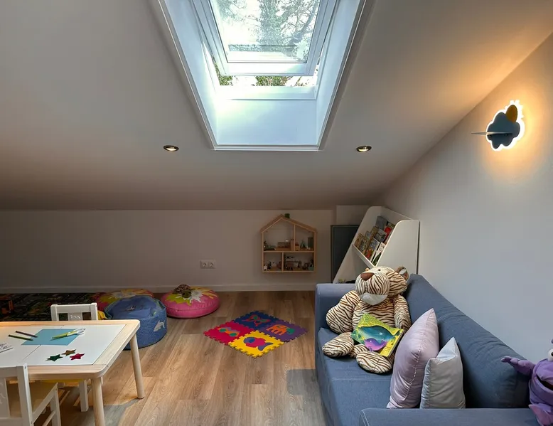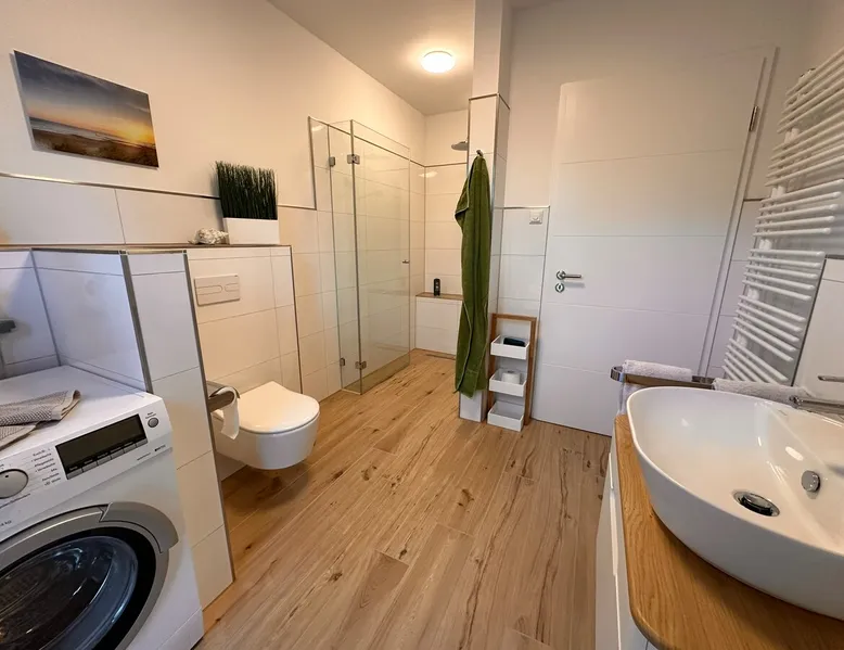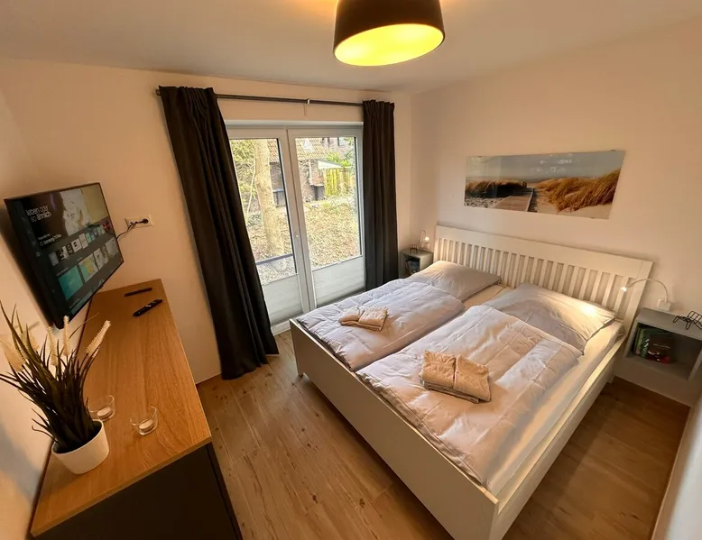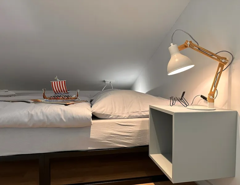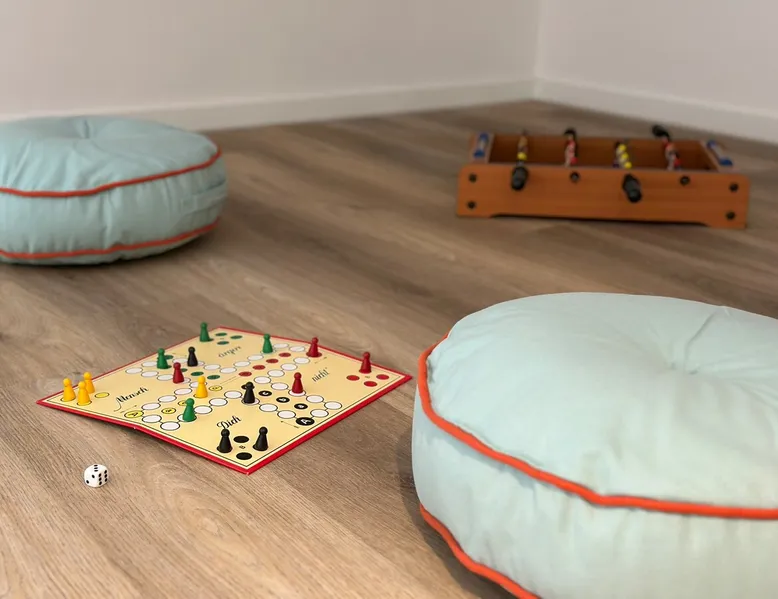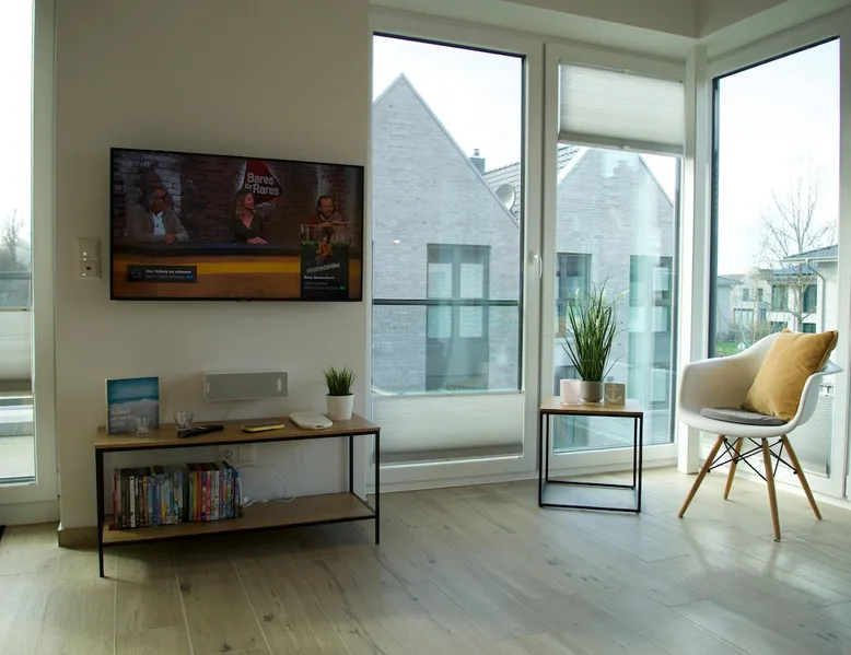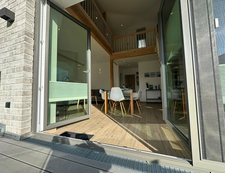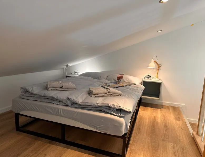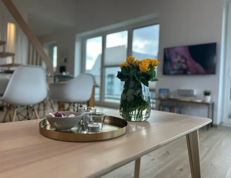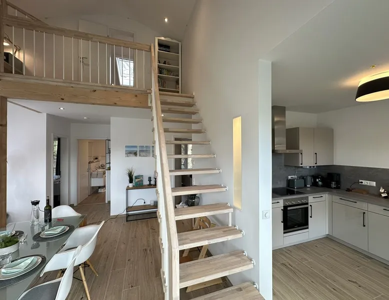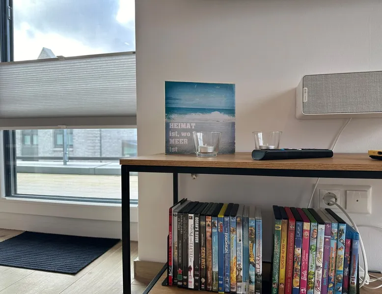 Arriving and feeling good, family vacation is paramount here! Other things to note Apartment Dan 53° is located on the upper floor of a building with 4 apartments. It is the ideal holiday oasis for families and adults in Dangast, the picturesque coastal town on Jadebusen. Our apartment DAN 53° promises an unforgettable experience for anyone who wants to escape from everyday life and experience the beauty of the North Sea up close. With space for 4 to 6 people, including optimal equipment for adults as well as children, our apartment offers the perfect setting for a relaxed and adventurous holiday. The apartment has a tasteful interior design with an area of approx. 85 m² plus approx. 20 sqm for the chillout area and games room. Two comfortable bedrooms (windows with blackout options) offer quiet nights for two people each, while the open gallery with a bed serves as an extra sleeping place. Especially for teenagers, the gallery with its chillout lounge, including Nintendo (from *contact info removed* , is a real highlight. For the smaller guests there is a converted attic that serves as a play area and offers enough space to romp and play. The apartment is characterized by extensive amenities that guarantee a worry-free stay. The spacious living area with smart TV, a large dining area as well as a modern kitchen equipped with a stove, oven, microwave and other amenities invite you to cook and linger together. In addition to towels, a hair dryer and screens, the modern bathroom offers optimal comfort for any time of day and season. Features such as laptop safe, staircase protection at the gallery and attic, smoke detectors, fire extinguishers, and a first aid kit are provided for safety. Free Wi-Fi is available, and the balcony invites you to linger outdoors with a table and chairs. Other amenities such as parking directly on the property, baby equipment for the youngest guests and beach equipment for trips to the sea make the stay in the apartment DAN 53° an all-round carefree experience. A welcome package with useful information about attractions and restaurants in the area as well as contact information for a local point of contact is available to make your stay as comfortable as possible. SPECIALS WHEN BOOKING THIS APARTMENT 2025: The stay of 1.5 hours/day in the Dangast Quellbad is included free of charge for all guests. Also a bicycle navigation app worth about 50 euros. We cordially invite you to take a break in our apartment DAN 53° in Dangast and enjoy the unique atmosphere of the North Sea. Whether you are looking for relaxing days with the family, experiencing adventures or just relaxing, our apartment offers the ideal starting point for an unforgettable vacation. Book now and look forward to a wonderful time in Dangast. If the apartment DAN 53° is already occupied for the desired period, see if the house DAN 53° would be an alternative: *contact info removed* Dates and facts: Living room: cozy sofa reading lamp, flat screen TV, reception of German-language TV programs (sat system) Bedroom 1: double bed (two single mattresses 90x200 cm), reading lamps, wardrobe, blackout curtains, flat TV, bedding on request Bedroom 2: double bed (two single mattresses 90x200 cm), flat-screen TV , reading lamps, wardrobe, blackout curtains, bedding on request Open gallery with 5th sleeping option Large, fully equipped game room in the top floor. Children's equipment: children's travel cot, high chair. Dining room: large table with 6 comfortable chairs Kitchen and household: Built-in kitchen, fridge with combined freezer compartments (2 pieces), 4-zone ceramic hob, extractor hood, microwave, oven, dishwasher, toaster, egg cooker, kettle, coffee filter machine (filter size 4), Tassimo coffee machine, high-quality dishes and cutlery Daylight bathroom: floor-to-ceiling, accessible summer rain shower, washbasin with mirror, hair dryer, toilet, towel heating, washer-dryer, towels on request Hallway: hallway with wardrobe, shoe and wardrobe cabinet, ironing board + iron, vacuum cleaner, broom, hand sweeper with dustpan, bucket and floor wipers, clothes rack Additional services available at an additional cost: Towels (1 shower towel + 2 towels) and bed linen on request, intermediate cleaning, towel/linen change Features: Particularly child-friendly, accessible, smoking only allowed outside Layout room: 105 sqm, 1 living-dining area, 2 bedrooms, 1 gallery with additional sleeping space, 1 games room, 1 bathroom, 1 terrace