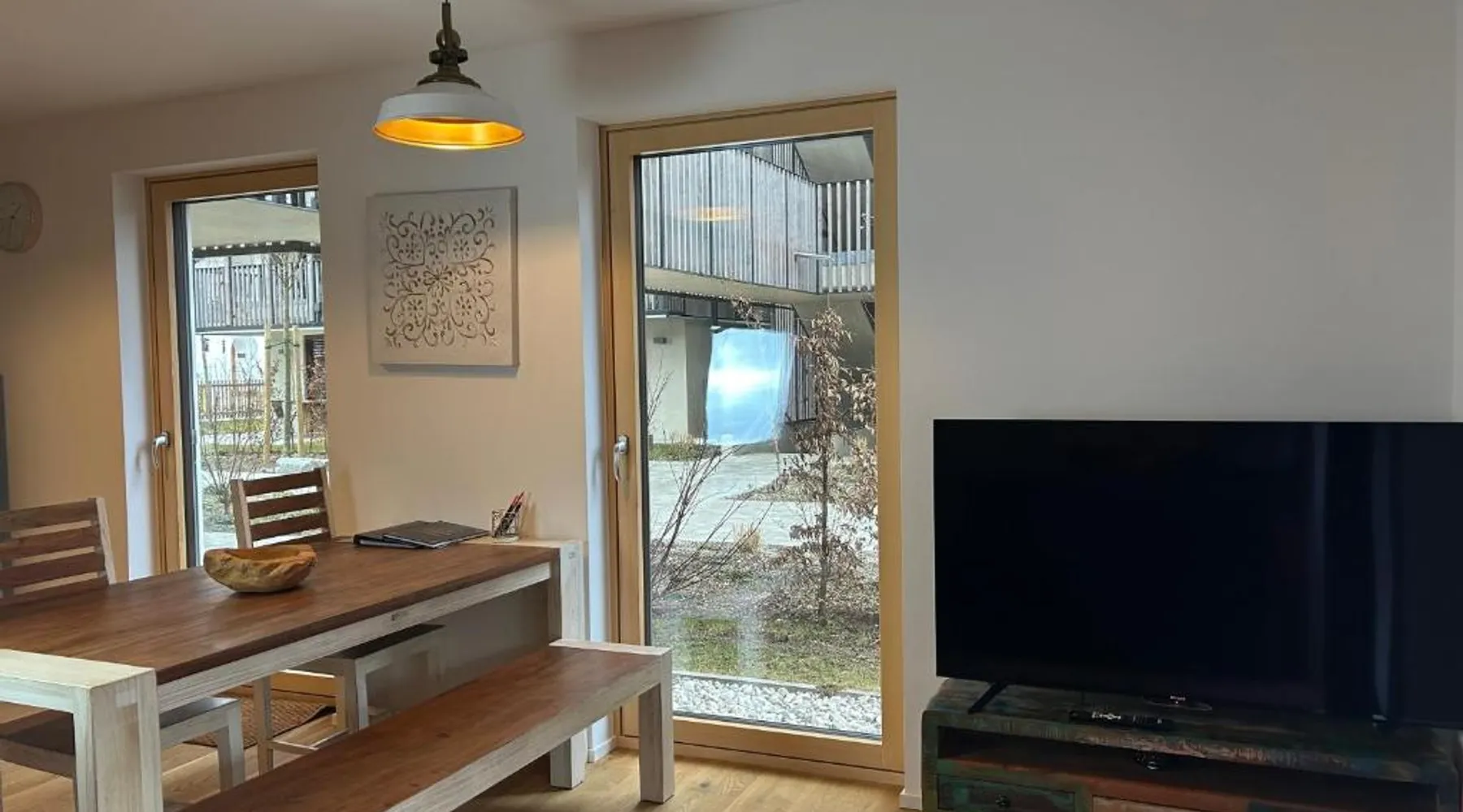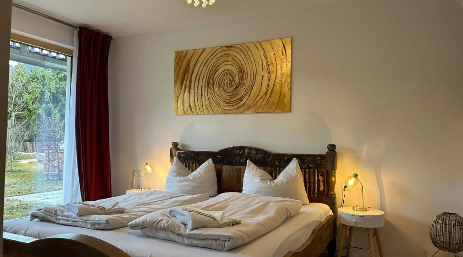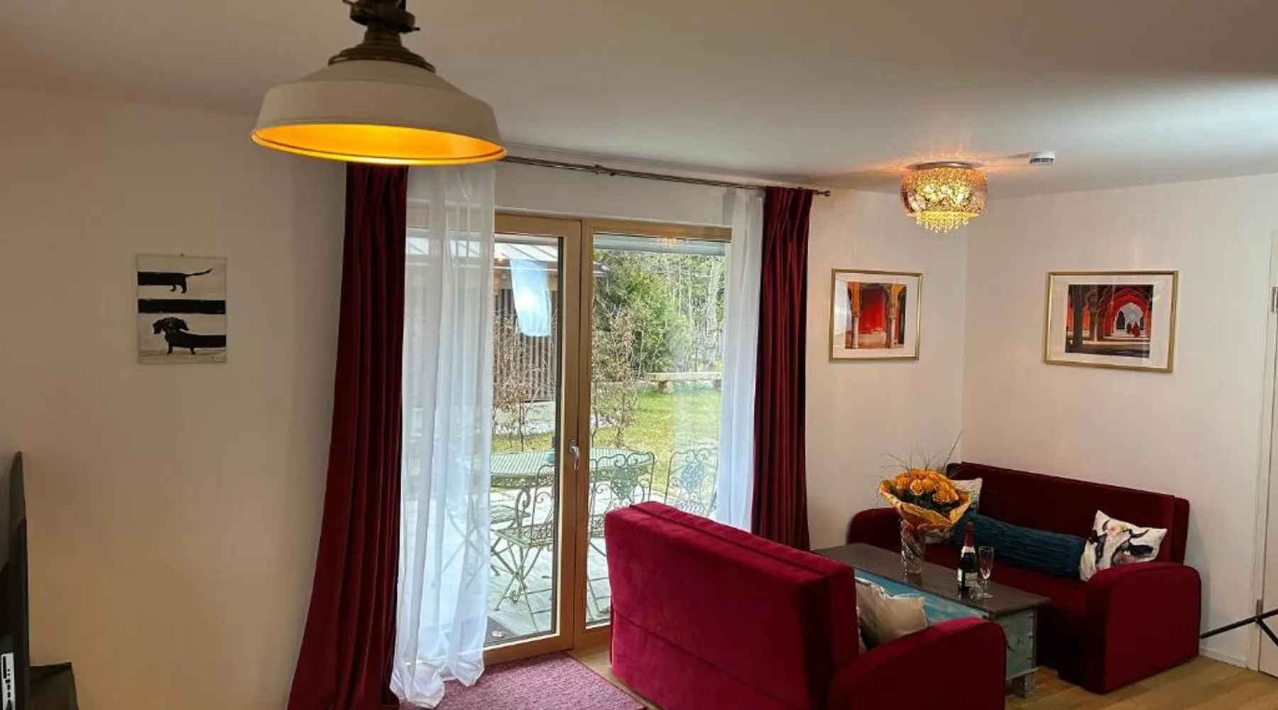 Comfortable Living Space: Karwendel Perle in Mittenwald offers a one-bedroom apartment with a living room. The terrace provides mountain views, while the kitchenette includes a coffee machine, refrigerator, dishwasher, and oven. Modern Amenities: Guests enjoy free WiFi in public areas, a washing machine, and a sofa bed. The apartment features a TV, electric kettle, and hairdryer, ensuring a comfortable stay. Convenient Location: Located 11 mi from the Richard Strauss Institute and Garmisch-Partenkirchen City Hall, the property is also 11 mi from Werdenfels Museum and Zugspitzbahn - Talstation. Free on-site private parking is available. In the well-fitted kitchen, guests will find a stovetop, a refrigerator, a dishwasher and an oven. Featuring a terrace with mountain views, this apartment also provides a washing machine and a TV. The unit offers 3 beds.