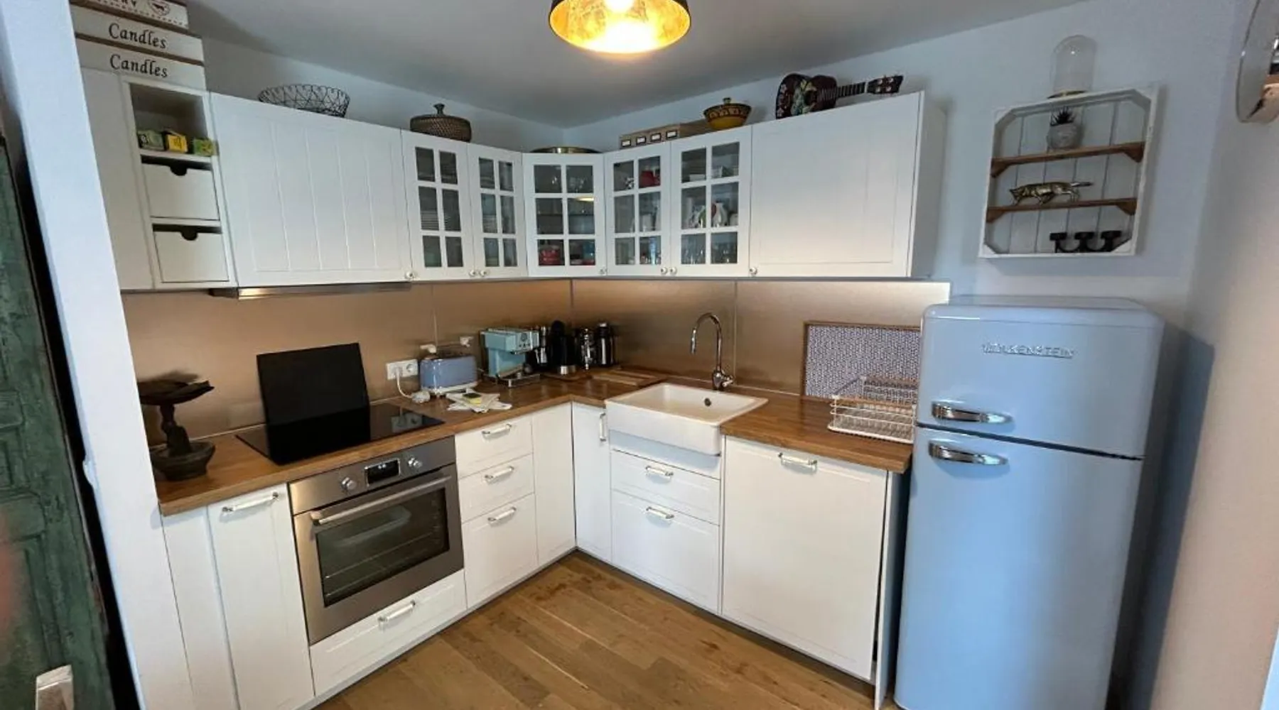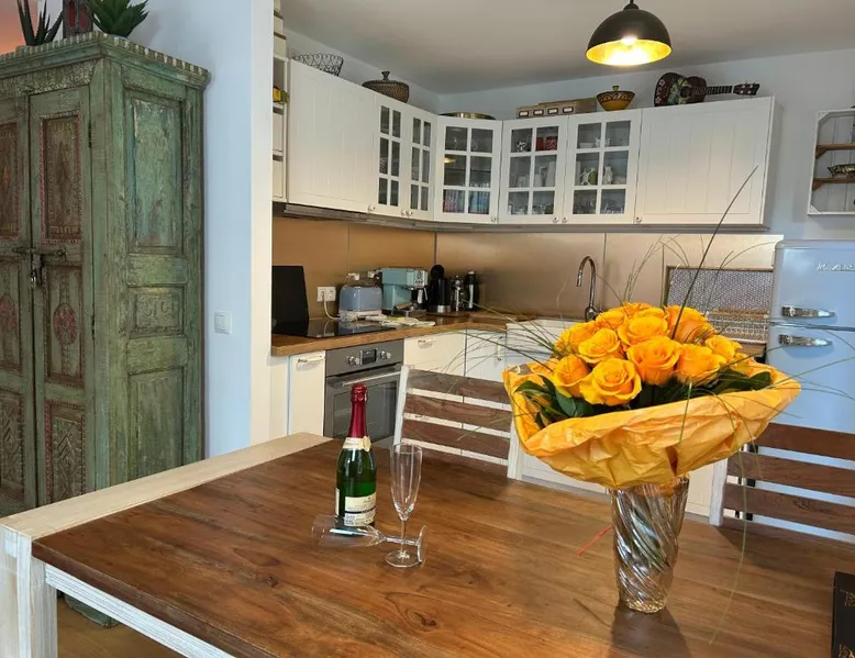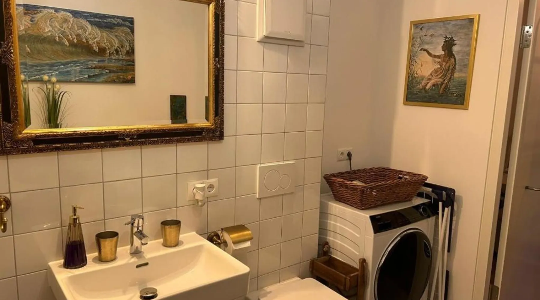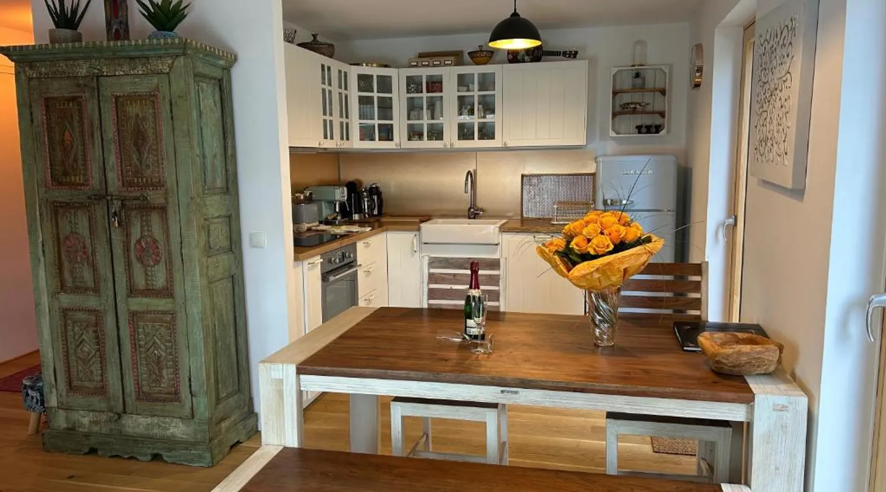 Comfortable Living Space: Karwendel Perle in Mittenwald offers a one-bedroom apartment with a living room. The terrace provides mountain views, while the kitchenette includes a coffee machine, refrigerator, dishwasher, and oven. Modern Amenities: Guests enjoy free WiFi in public areas, a washing machine, and a sofa bed. The apartment features a TV, electric kettle, and hairdryer, ensuring a comfortable stay. Convenient Location: Located 11 mi from the Richard Strauss Institute and Garmisch-Partenkirchen City Hall, the property is also 11 mi from Werdenfels Museum and Zugspitzbahn - Talstation. Free on-site private parking is available. In the well-fitted kitchen, guests will find a stovetop, a refrigerator, a dishwasher and an oven. Featuring a terrace with mountain views, this apartment also provides a washing machine and a TV. The unit offers 3 beds.