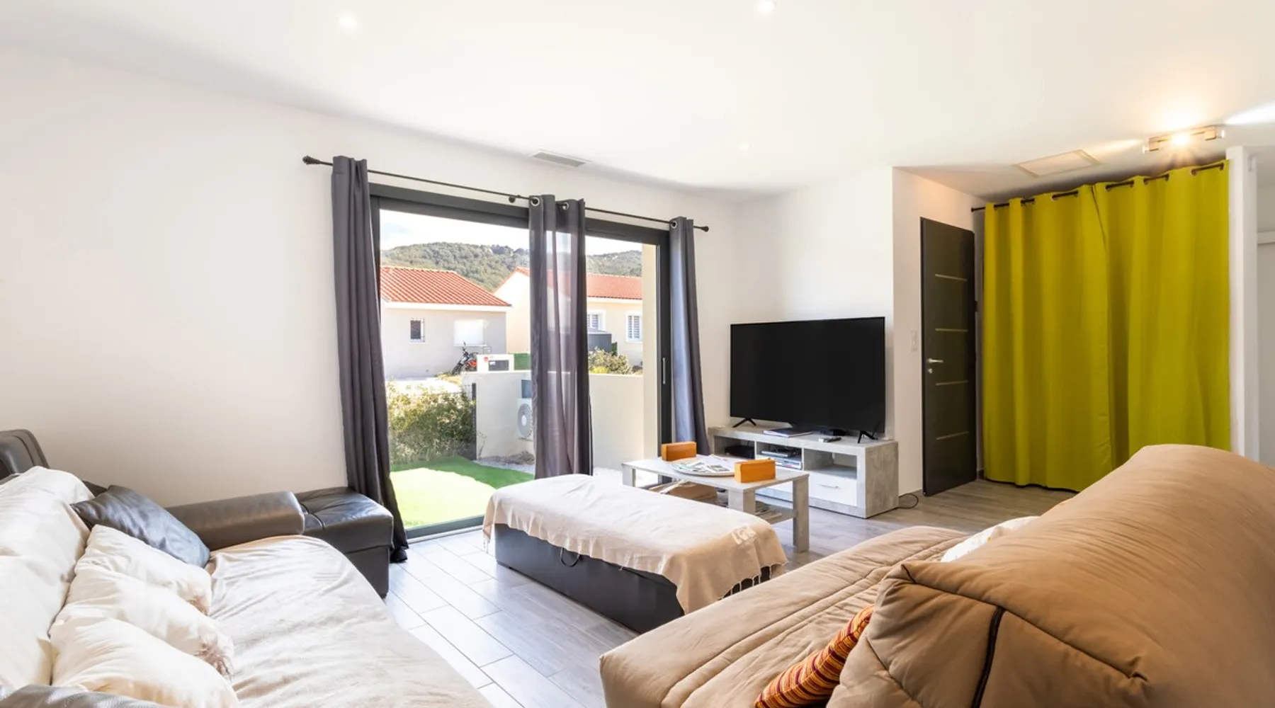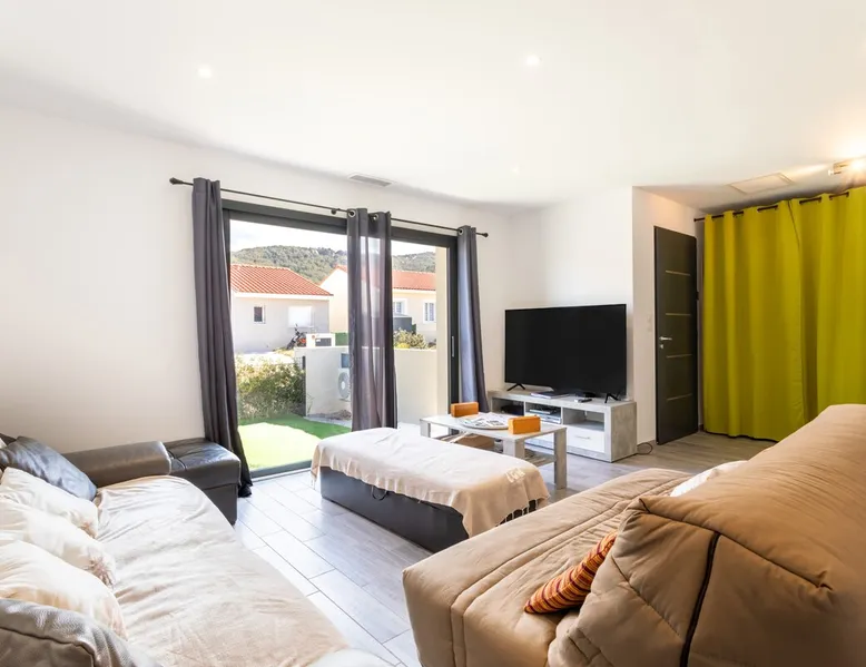 This 90 m² apartment is perfectly suited to accommodate spa guests, combining comfort and amenities. It offers a large bright living room with a fully equipped open kitchen, a friendly dining area and a living room with a sofa bed for extra sleeping. Two comfortable suites with adjoining bathrooms ensure privacy and well-being. An office space is also designed to meet your needs. Everything is provided to simplify your stay: linens, towels, television, internet box and board games are included. Other things to note You will benefit from two private parking spaces in front of the house, ideal for your daily trips to Le Boulou. A shared swimming pool is also at your disposal to relax after your spa treatments, offering a relaxing setting under the Mediterranean sun. The peaceful and green outdoor spaces invite you to rest and serenity. At the foot of the Albères, where the Pyrenees meet the Mediterranean, the Boulou spa resort is just a few minutes away. Ideally located between the sea and the mountains, it offers pleasant treatments under an azure sky. The spa establishment, nestled in the heart of a green garden surrounded by trees and flowerbeds, evokes a large hacienda on a human scale, offering a warm and soothing setting. The region, rich in landscapes, is ideal for walks by the sea on the Côte Vermeille as well as excursions to Spain, located just 15-20 minutes away. 5 minutes from the apartment, the Saint-Jean-Pla-de-Corts lake offers a variety of activities to enhance your stay, while the Mediterranean beaches offer an ideal alternative to recharge your batteries. The apartment is designed to meet the needs of spa guests, with independent access and complete facilities for a pleasant stay. The calm environment and proximity to local attractions make it a perfect place to combine treatment and relaxation. Whether you are looking for rest or discovery, this accommodation is ideal for fully enjoying your stay in Le Boulou and its magnificent surroundings. Registration Details 66024000118RI