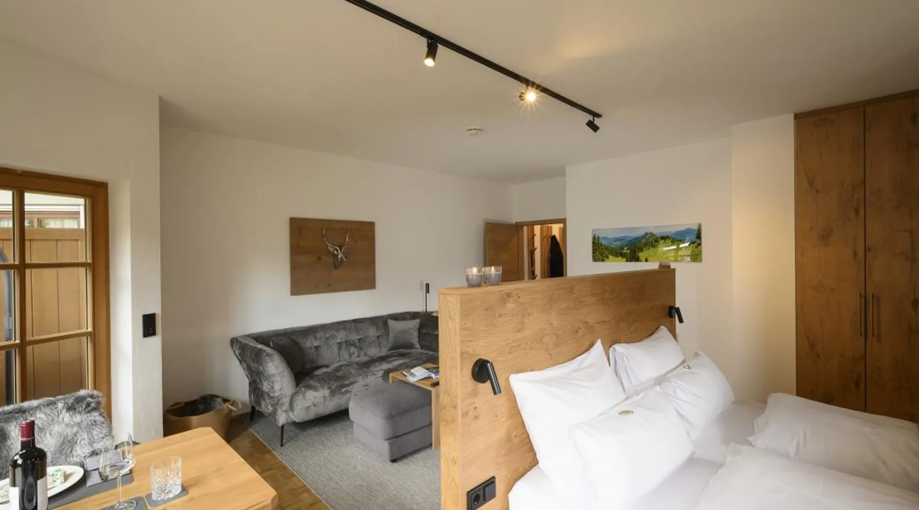 The "Alpini" holiday apartment, which was completely renovated in 2024, is located on the first floor of an apartment building in a very quiet residential area. Here you will find your favorite private spot. a temporary home where you will feel at home and welcome. Covering an area of approximately 40 m2, this modern Alpine-style holiday apartment offers everything you need for a relaxing stay: a cozy living room/bedroom with a double bed, an inviting seating area with a smart tv, a corner The space desk, and a light-filled dining area. The stylish bathroom with rain shower and the high-quality kitchen complete your holiday home. On the balcony with hanging chair and seating, you can enjoy the fantastic view of the local mountain Kofel and relax wonderfully. You can park your car and bicycles in the xl underground garage belonging to the house (the parking area can be locked individually). The "Alpini" holiday apartment is located in a very quiet area just above the center of Oberammergau. In about 10 minutes on foot, you can reach the town center with various sights (Passion Play theater and much more), the tourist information office, the train station, and many shopping opportunities. a variety of restaurants are available for culinary enjoyment during your vacation. In addition, Oberammergau and the Ammergau Alps region offer countless opportunities for cultural and sporting leisure activities in every season. As a special highlight, your hosts will provide you with the "KönigsCard" free of charge for the duration of your stay. With this card, you can take advantage of over 200 leisure activities in the Blue Land, the Ammergau Alps, and the Allgäu at no extra cost—from museum visits and E-bike rentals to free rides on the mountain railway. Great offers await you. Welcome—we look forward to your visit!