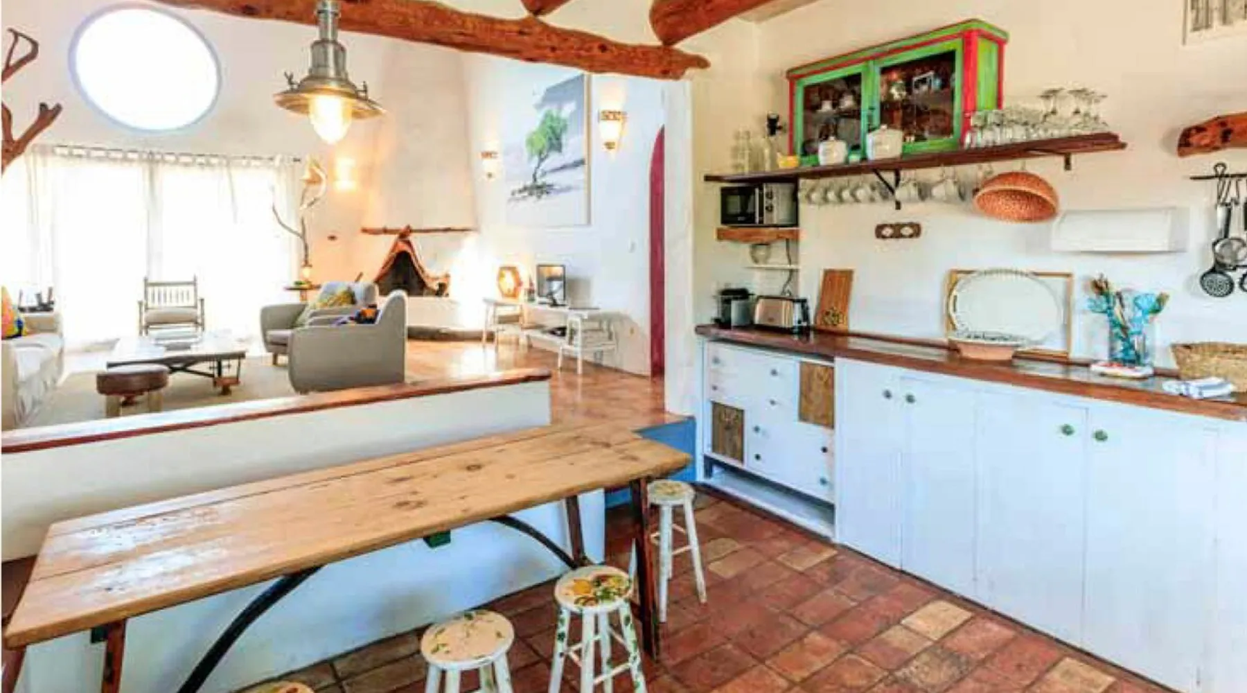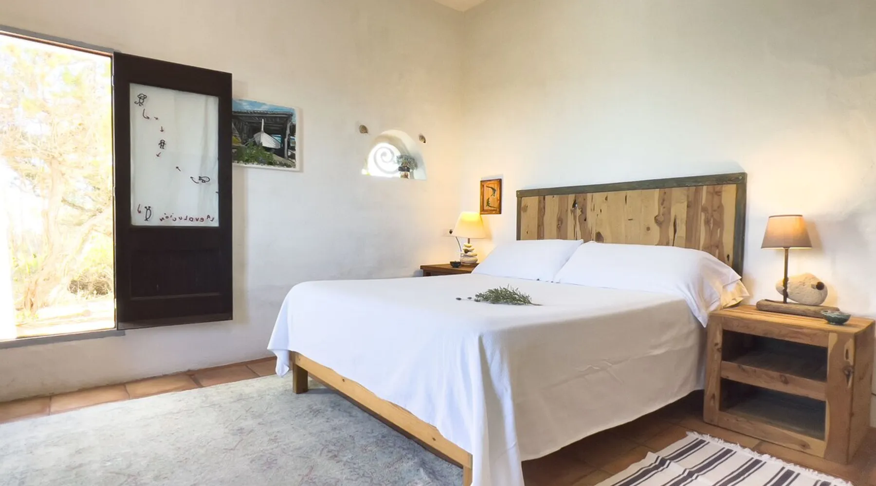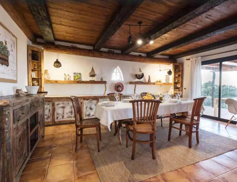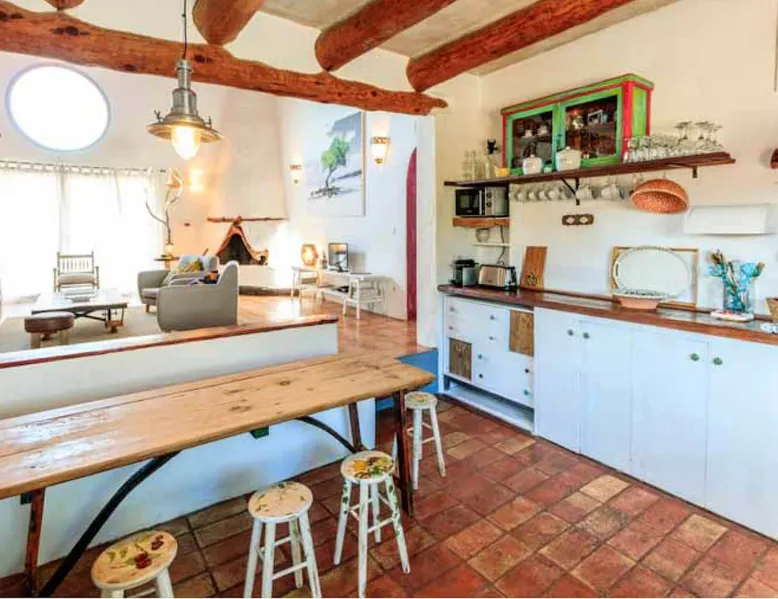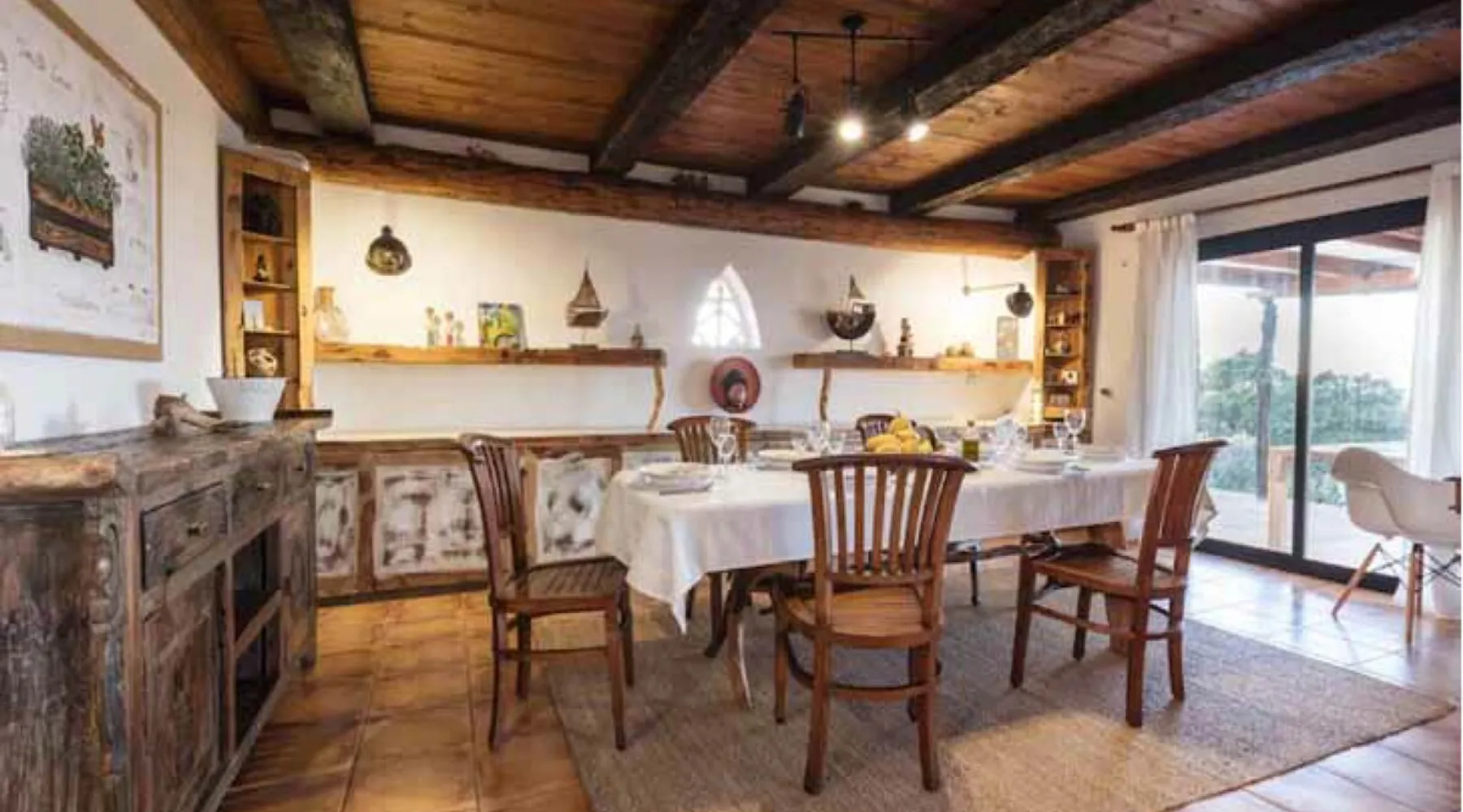 The holiday home Can Piedrópolis is located in Formentera and boasts a beautiful view of the sea. The 222 m² property consists of a living room, a fully-equipped kitchen, 2 bedrooms and 3 bathrooms as well as 3 additional toilets and can therefore accommodate 4 people. Additional amenities include high-speed Wi-Fi (suitable for video calls) with a dedicated workspace for home office, a smart TV with streaming services, a fan, beach/pool towels as well as a washing machine. Other things to note 4 high chairs and 4 baby cots are also available. This property features a private outdoor area with a fenced pool, a garden, multiple terraces, a barbecue, and an outdoor shower. The property is 1.5 km from the beach of Cala Saona and in an ideal location to enjoy water activities and tennis. 8 parking spaces are available on the property, free parking is available on the street and a parking space is available in a garage. One pet is allowed. Dinners and barbecues may be held on the property. The holding of parties is prohibited. Air conditioning is not available. Childcare is available. An electric vehicle charging station is available. The property has motorbike and bicycle storage. This property has guidelines to help guests with the correct separation of waste. More information is provided on site. This property has light and water-saving features. Sustainable materials have been used in the insulation at this property. The pool and gardens are maintained by the owner of the house. License legal name: Can Picca - Pet allowed payment 15EUR per pet per night Regional license number:ET/6606 Registration Details ESFCTU000007037000015799000000000000000000000ET-66060