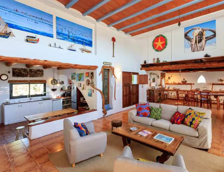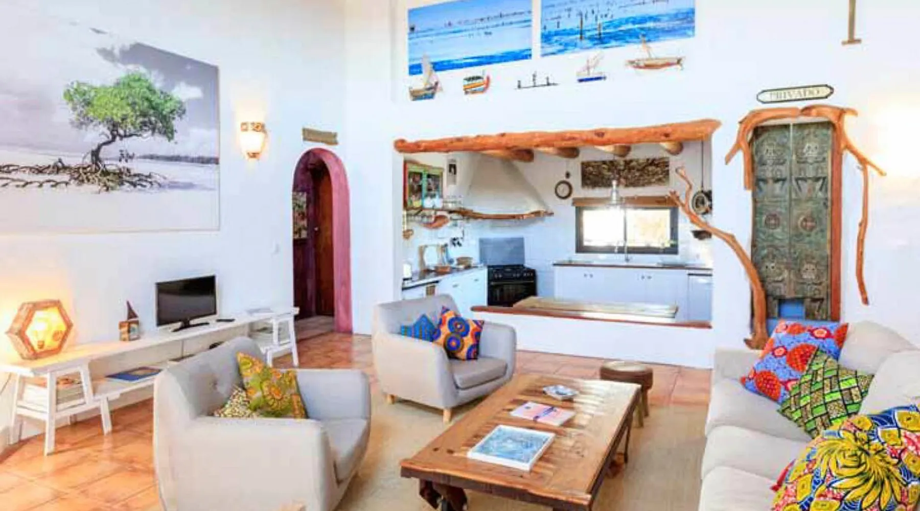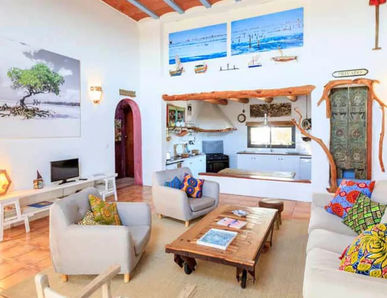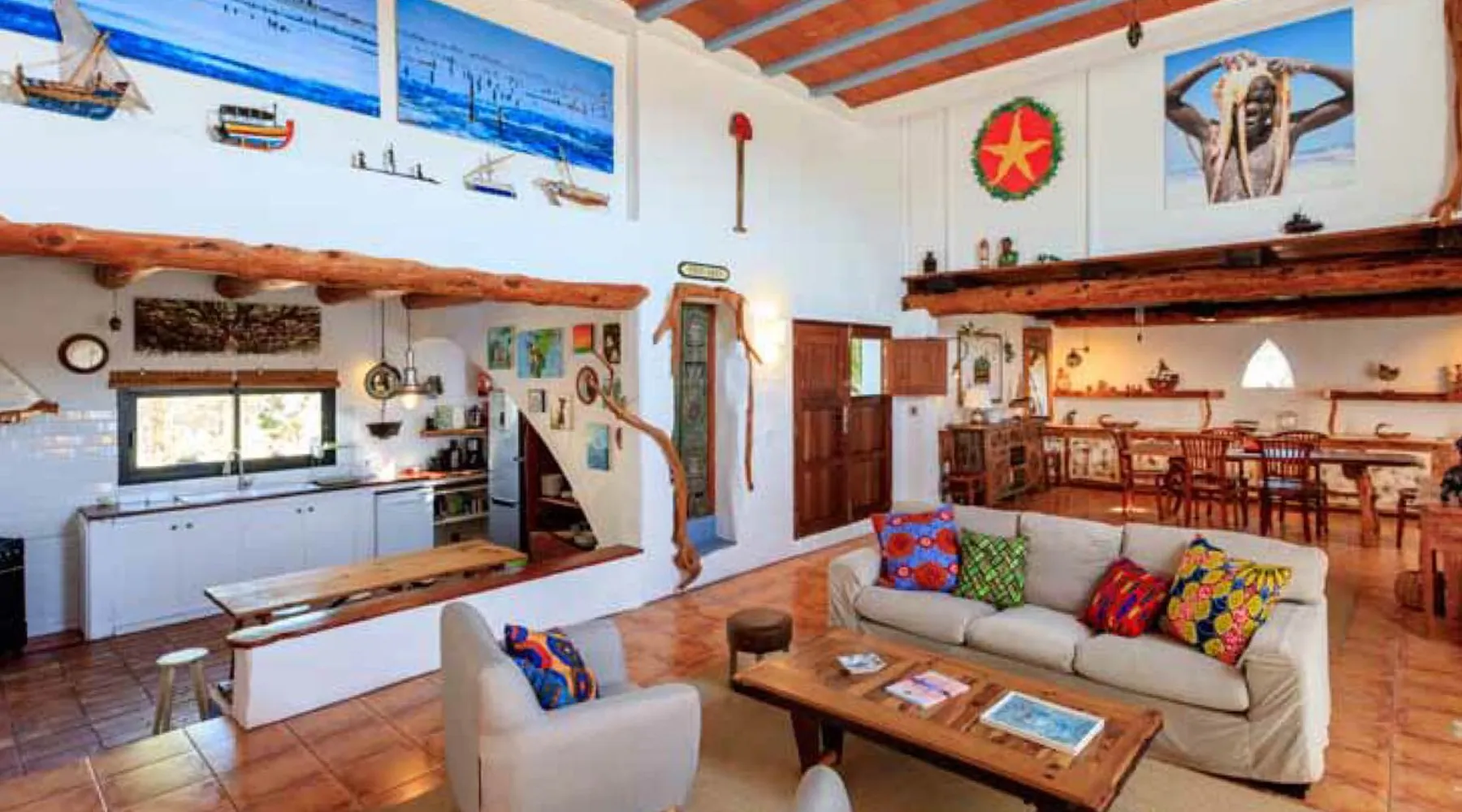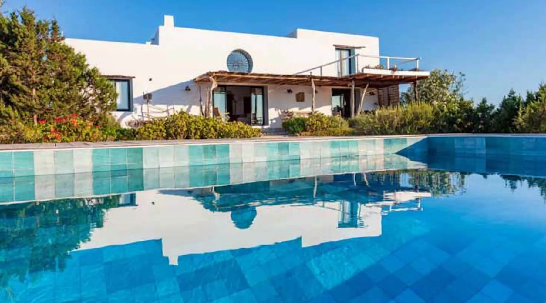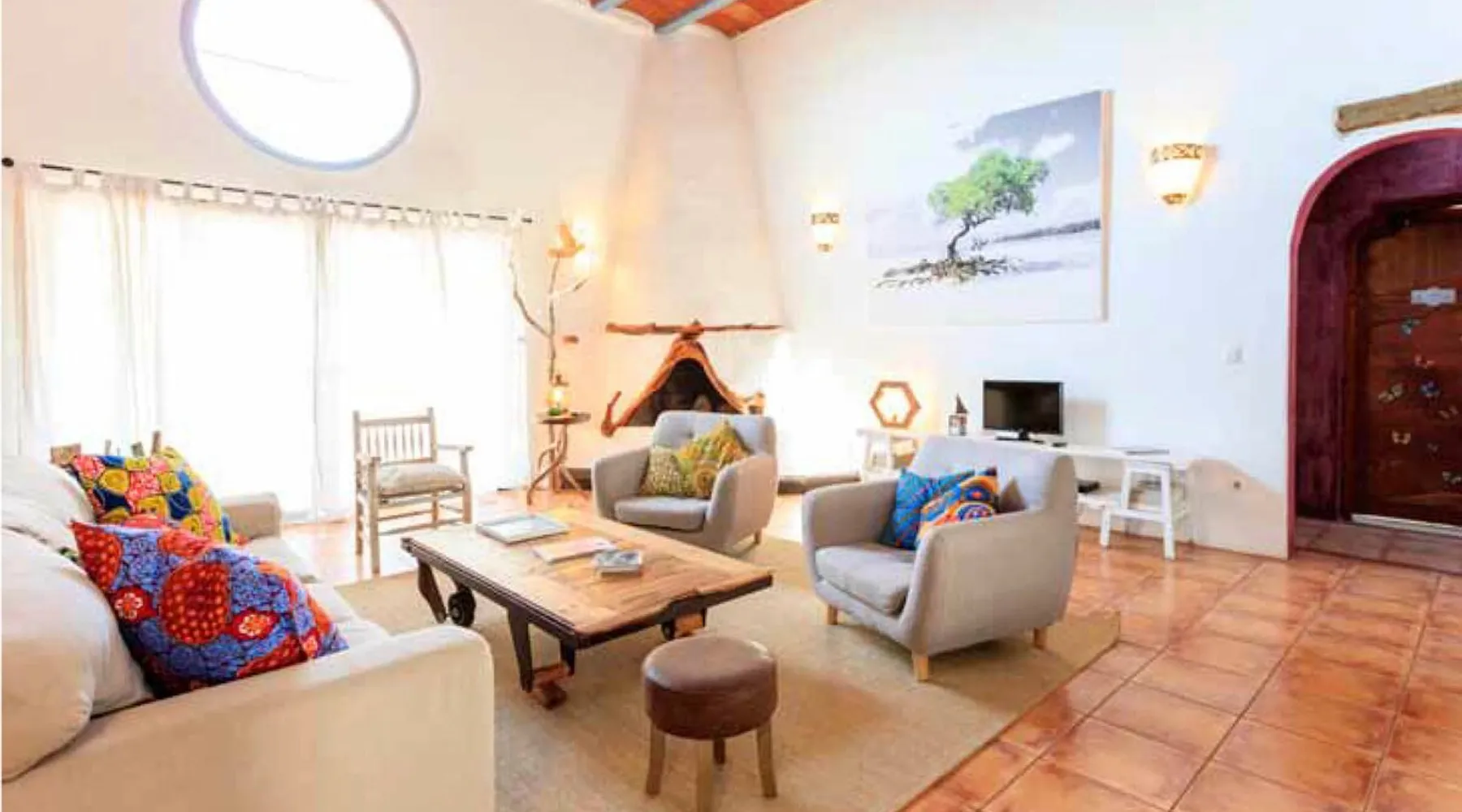 The holiday home Can Piedrópolis is located in Formentera and boasts a beautiful view of the sea. The 222 m² property consists of a living room, a fully-equipped kitchen, 2 bedrooms and 3 bathrooms as well as 3 additional toilets and can therefore accommodate 4 people. Additional amenities include high-speed Wi-Fi (suitable for video calls) with a dedicated workspace for home office, a smart TV with streaming services, a fan, beach/pool towels as well as a washing machine. Other things to note 4 high chairs and 4 baby cots are also available. This property features a private outdoor area with a fenced pool, a garden, multiple terraces, a barbecue, and an outdoor shower. The property is 1.5 km from the beach of Cala Saona and in an ideal location to enjoy water activities and tennis. 8 parking spaces are available on the property, free parking is available on the street and a parking space is available in a garage. One pet is allowed. Dinners and barbecues may be held on the property. The holding of parties is prohibited. Air conditioning is not available. Childcare is available. An electric vehicle charging station is available. The property has motorbike and bicycle storage. This property has guidelines to help guests with the correct separation of waste. More information is provided on site. This property has light and water-saving features. Sustainable materials have been used in the insulation at this property. The pool and gardens are maintained by the owner of the house. License legal name: Can Picca - Pet allowed payment 15EUR per pet per night Regional license number:ET/6606 Registration Details ESFCTU000007037000015799000000000000000000000ET-66060