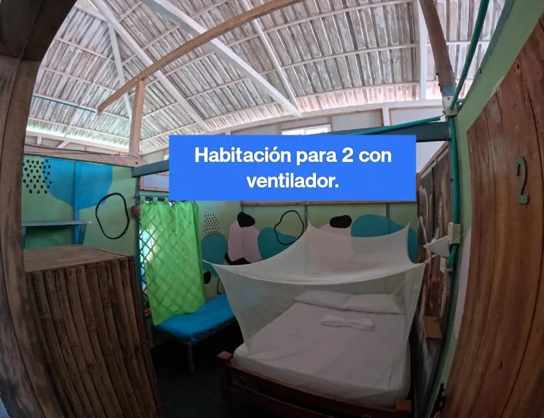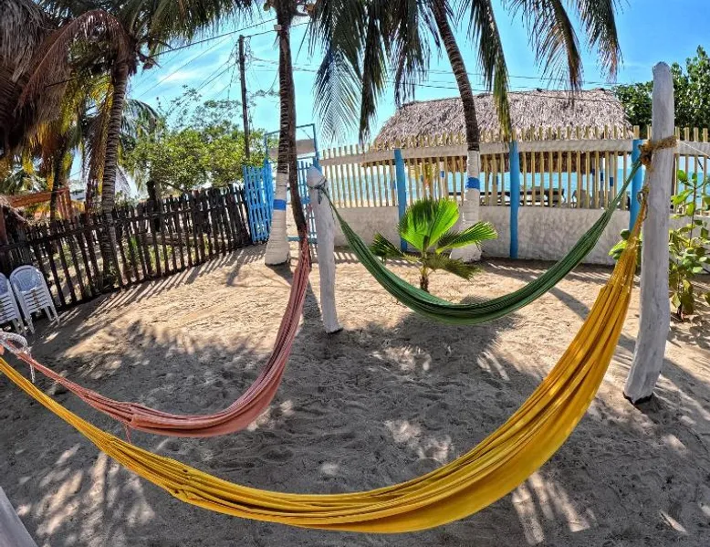 Beachfront Location: Cabaña La Gloria in San Onofre offers a private beach area and direct beachfront access. Guests can relax on the terrace or balcony with stunning sea views. Comfortable Accommodations: The guest house features family rooms with private bathrooms, air-conditioning, and tiled or parquet floors. Each room includes a TV, refrigerator, and wardrobe for added comfort. Outdoor Spaces: Enjoy the garden, terrace, and outdoor seating area. The property is pet-friendly and includes an inner courtyard with quiet street views. Local Attractions: Punta Seca Beach is a 7-minute walk away, while Golfo de Morrosquillo Airport lies 32 mi from the property. This air-conditioned family room includes a flat-screen TV with cable channels, a private bathroom as well as a terrace with sea views. The unit offers 5 beds.
