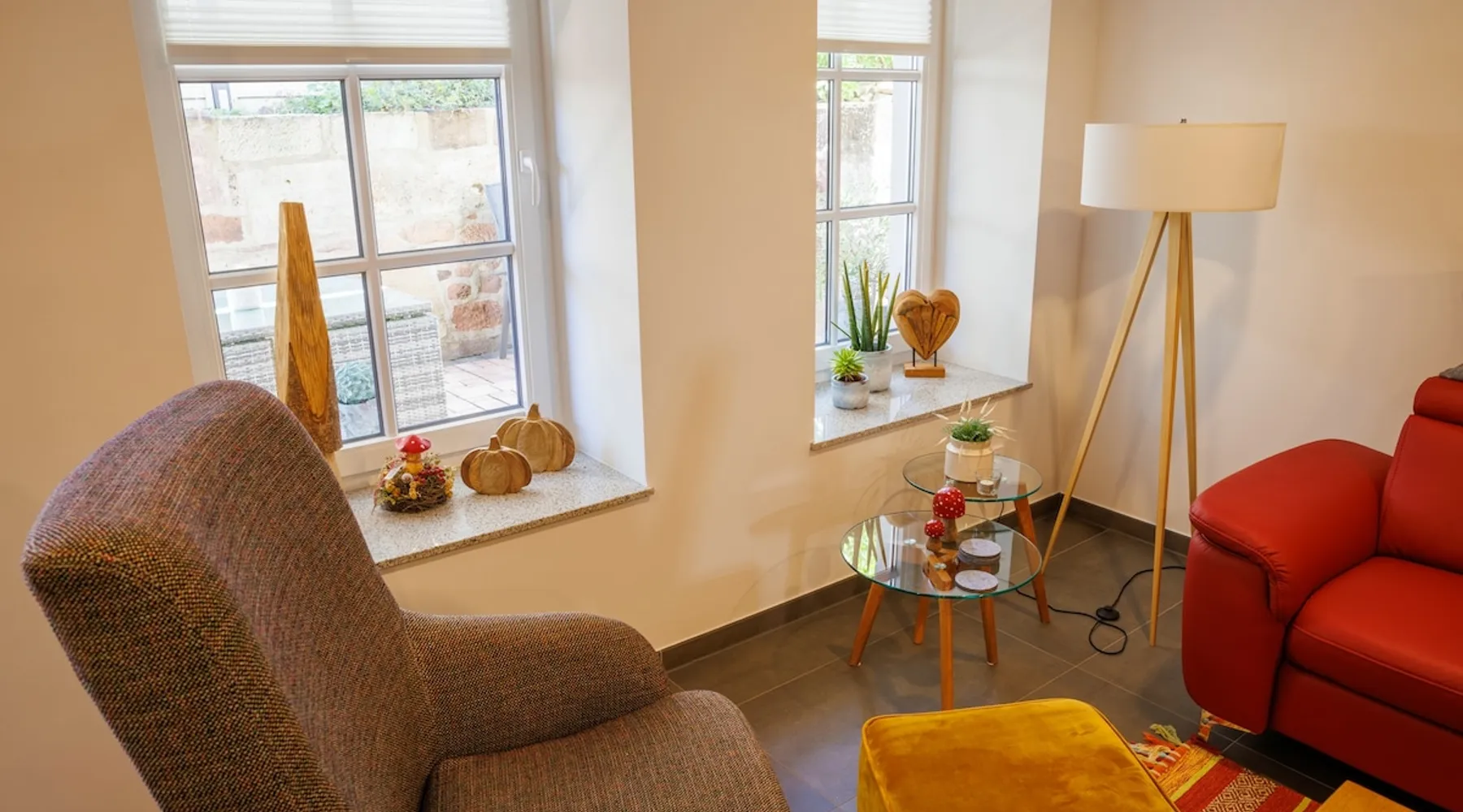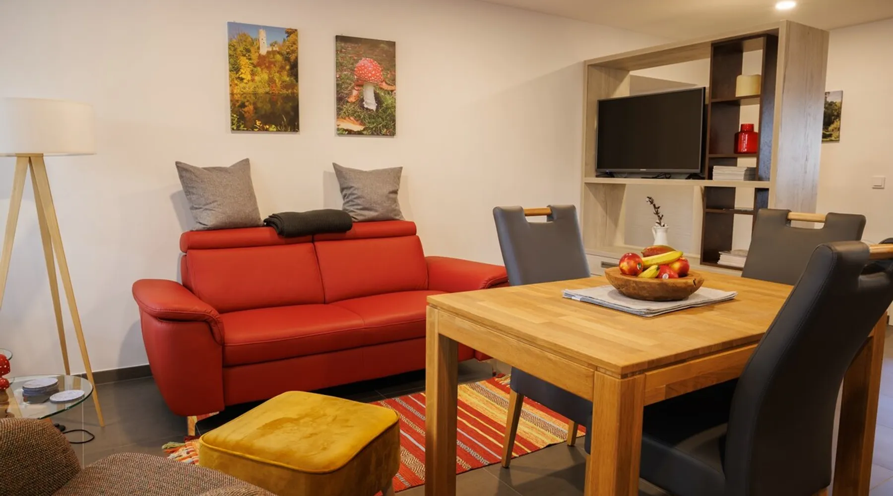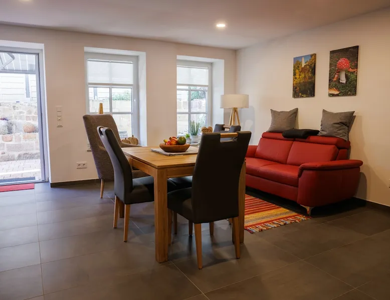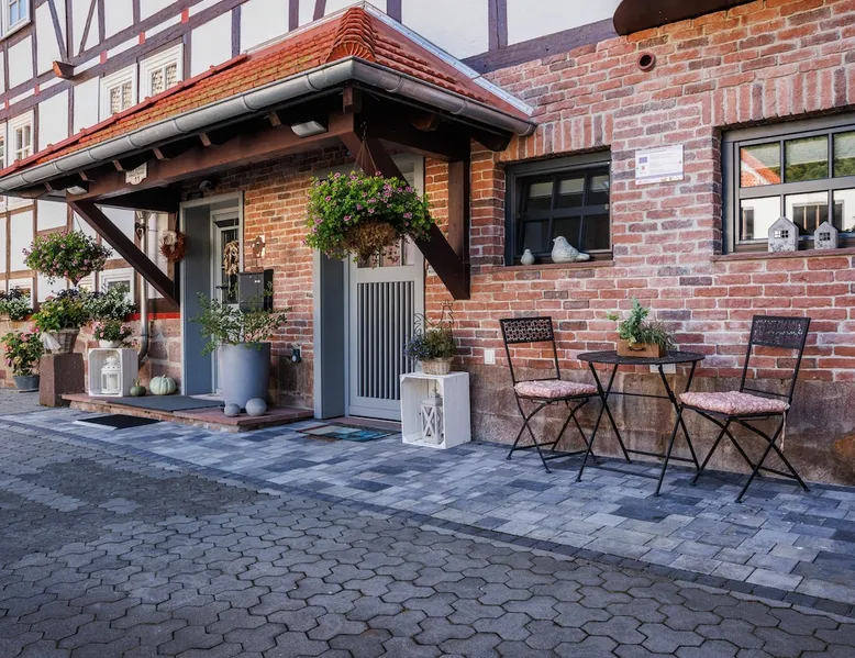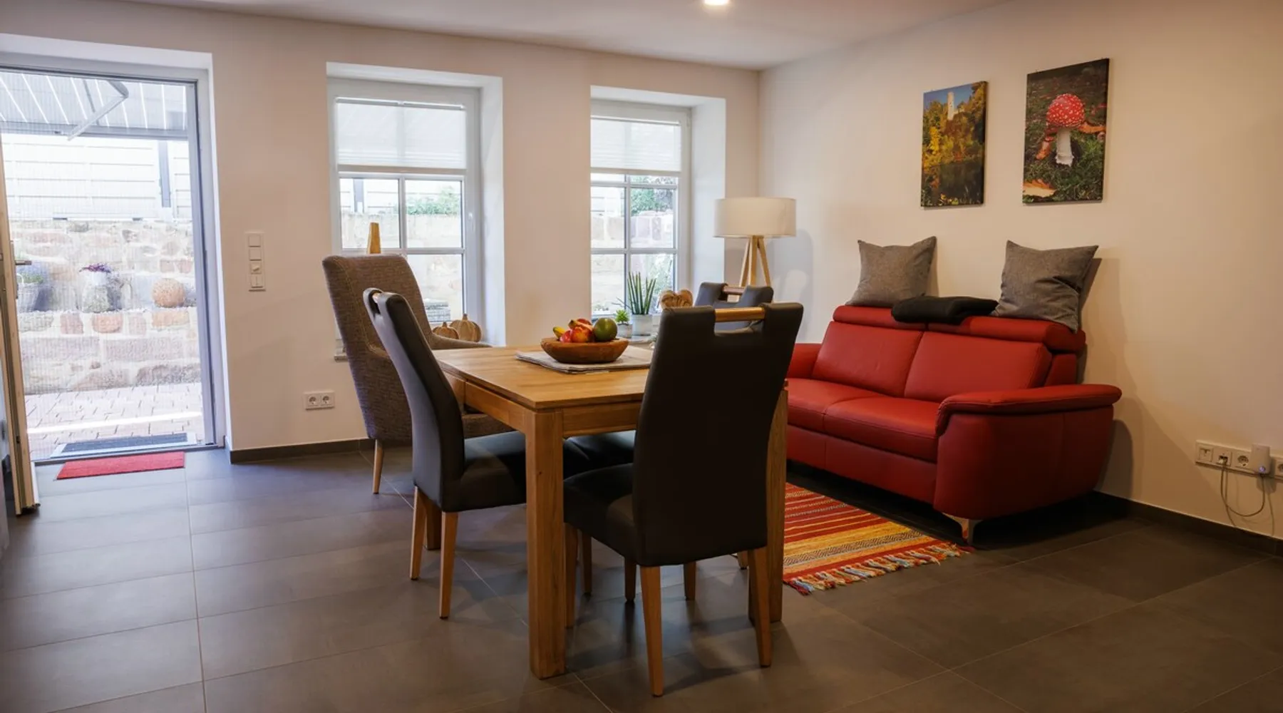 The "Alter Kuhstall" holiday flat, which is located in a historic half-timbered house in Neuenstein, is the perfect holiday flat for a stress-free holiday with your loved ones. The 55 m² accommodation consists of a living/dining area with a fully equipped kitchenette with dishwasher, 1 bedroom and 1 bathroom and thus offers space for 2 people. It is also equipped with WLAN and satellite TV. Other things to note The holiday flat offers a private outdoor area with terrace, which can be completely covered with a pergola. A barbecue with accessories is available on request. The Landgasthof Heß is just a few minutes' walk away. A bakery with café, a pizzeria and a supermarket are 2 km away. There are many marked hiking and cycling trails, including two archaeological trails, the Knüll Nature Park and the Fable Trails. Enjoy the beautiful nature of the original Little Red Riding Hood landscape! A car park is available on the property and parking is also possible on the street. Pets, smoking and events are not permitted. Company bookings for professional use are only possible by prior arrangement with the host. The accommodation has step-free access and indoor facilities. There are security cameras and/or audio recording devices in the property. The property has a storage room for motorbike and bicycle. The property has a recycling policy. After booking, please complete the Holidu contact form that will be emailed to you and provide your address. This will help the host to prepare your stay in the best possible way.