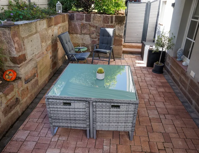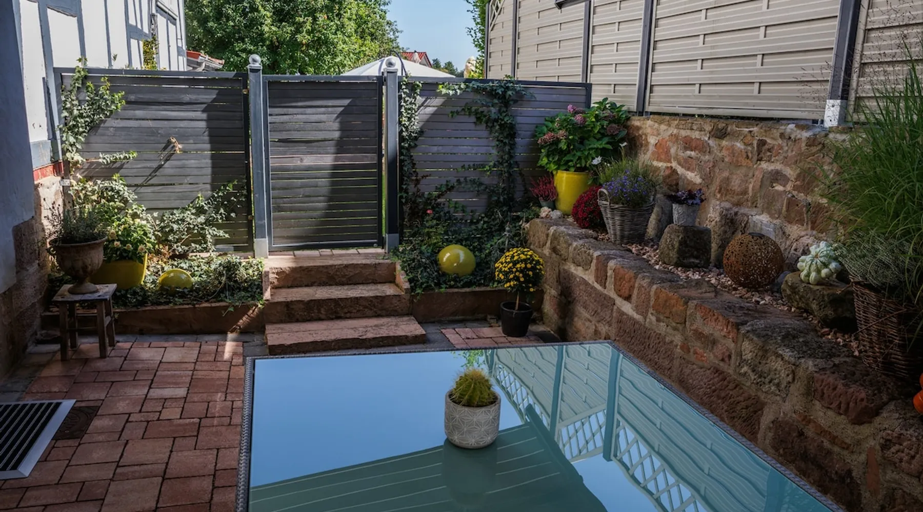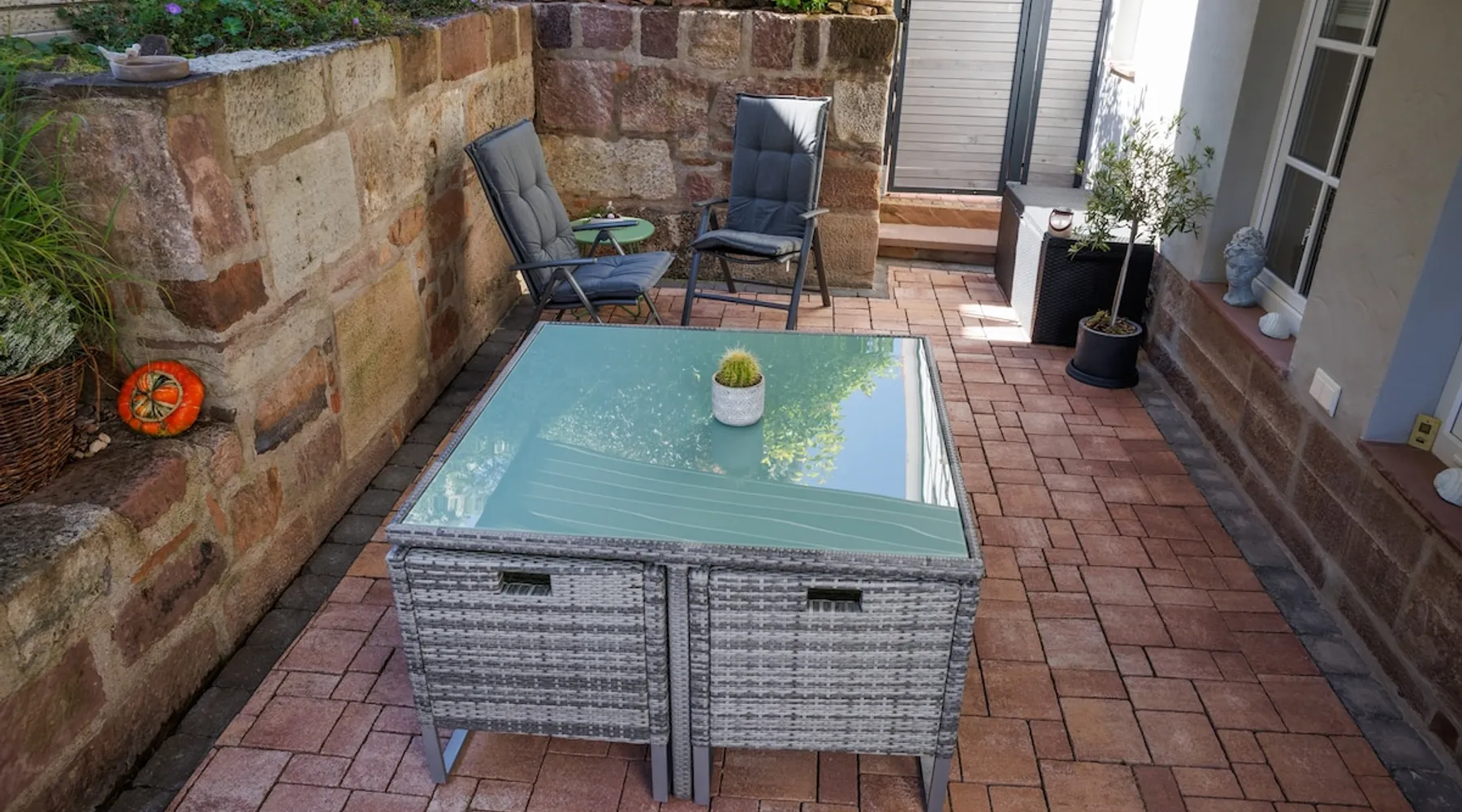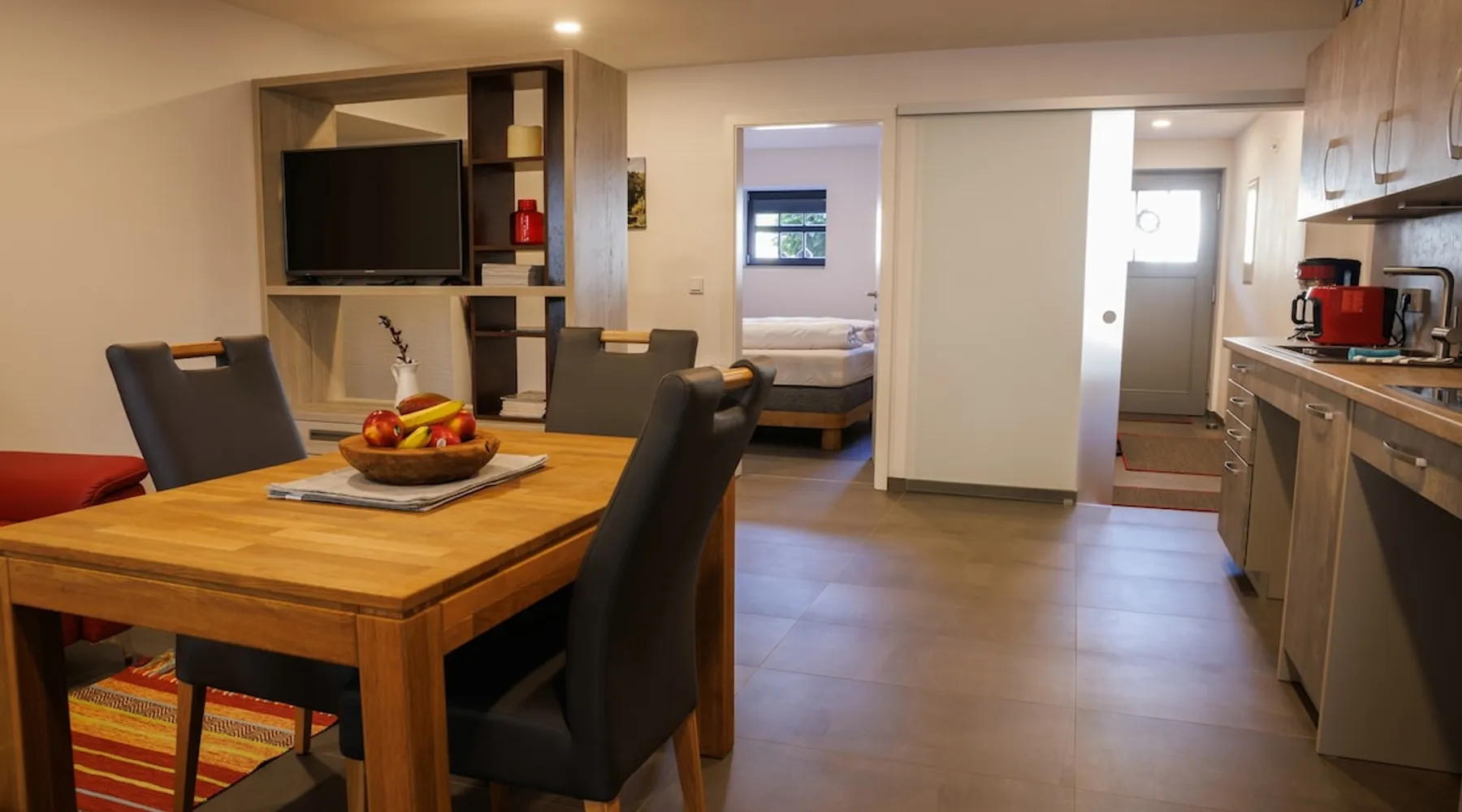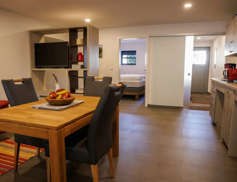 The "Alter Kuhstall" holiday flat, which is located in a historic half-timbered house in Neuenstein, is the perfect holiday flat for a stress-free holiday with your loved ones. The 55 m² accommodation consists of a living/dining area with a fully equipped kitchenette with dishwasher, 1 bedroom and 1 bathroom and thus offers space for 2 people. It is also equipped with WLAN and satellite TV. Other things to note The holiday flat offers a private outdoor area with terrace, which can be completely covered with a pergola. A barbecue with accessories is available on request. The Landgasthof Heß is just a few minutes' walk away. A bakery with café, a pizzeria and a supermarket are 2 km away. There are many marked hiking and cycling trails, including two archaeological trails, the Knüll Nature Park and the Fable Trails. Enjoy the beautiful nature of the original Little Red Riding Hood landscape! A car park is available on the property and parking is also possible on the street. Pets, smoking and events are not permitted. Company bookings for professional use are only possible by prior arrangement with the host. The accommodation has step-free access and indoor facilities. There are security cameras and/or audio recording devices in the property. The property has a storage room for motorbike and bicycle. The property has a recycling policy. After booking, please complete the Holidu contact form that will be emailed to you and provide your address. This will help the host to prepare your stay in the best possible way.
