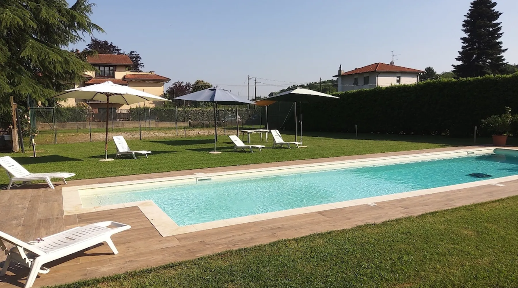 The holiday apartment "Azalea" is located in Induno Olona and impresses guests with its view of the mountain. The 2-storey property consists of a living room with a sofa bed for one person, a fully-equipped kitchen with a dishwasher, 2 bedrooms and 2 bathrooms and can therefore accommodate 6 people. Other things to note Additional amenities include Wi-Fi (suitable for video calls) with a dedicated workspace for home office, a smart TV with streaming services and a DVD player, air conditioning, a fan, heating, a washing machine, a dryer as well as children's books and toys. A baby cot and a high chair are also available. The property features a shared outdoor area with a covered terrace, a barbecue, a heated pool, a garden and an outdoor shower. The property is located just a short drive from supermarkets, 15 minutes from the centre of Varese and 50 minutes from Lugano, Lake Maggiore and Lake Como, while Milan is 1.5 hours away. Furthermore, there is a bus stop within walking distance. A parking space is available on the property and 2 in a garage, additional free parking can be found on the street. Families with children are welcome. The property has motorbike, bicycle and ski storage. It is possible to add a bed for the 7th guest on request and for an additional cost. A maximum of 2 pets are allowed. Smoking and celebrating events are not allowed. Please avoid unnecessary noise after midnight. The doors are wide and easy to access. An electric vehicle charging station is available. A cleaning service is available upon request and for a fee. This property has guidelines to help guests with the correct separation of waste, more information is provided on site. This property features energy-saving lighting. The electricity at this property is partly generated by photovoltaic panels. Sustainable materials have been used in the insulation at this property. The homeowner lives on the same plot. - Airport shuttle payment 50EUR per ride - Beach/pool towels payment 10EUR per person - Train station shuttle payment 25EUR per ride CIR:012083-BEB-00002 Registration Details IT012083C194CZH3K2