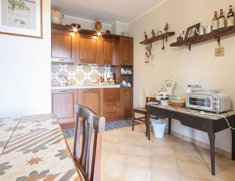 In an elevated rural location, this spacious vacation home welcomes you with a view of the beautiful countryside. The space In an elevated rural location, this spacious vacation home welcomes you with a view of the beautiful countryside. The well-equipped house in the municipality of Torchiara offers the ideal location for those seeking relaxation and nature lovers who are looking for peace and quiet and prefer relatively short distances to natural treasures and cultural experiences. The design and color scheme of the interior create a warm atmosphere in which you can relax with your extended family and enjoy cozy get-togethers. However, you will certainly spend most of your time on the terrace, where you can sit and enjoy a coffee while taking in the beautiful surroundings. All bedrooms are accessible from the outside. Bring your bikes and spend active hours in the beautiful countryside. The house is an excellent starting point for excursions to the Cilento National Park, Vallo di Diano and Alburni with charming small towns, lush vegetation, exciting rocky stretches and long sandy beaches, which you can reach after a short drive. A visit to the Paestum Archaeological Park is a must. In Agropoli, with its Byzantine history, there are many popular attractions including Borgo Medievale di Agropoli, Angioino Aragonese Castle, the medieval ruins of the Monastery of San Francesco and the churches of St. Mary of Constantinople, San Marco and San Francesco. Can comfortably fit up to 9 people Other things to note Please note that: Bed linen and towels are included in the room rate in 2025. Consumption costs are not included in the room rate and will be charged according to guest use within three weeks after check-out. Up to one pet is allowed. Registration Details IT065147B4N36CZ27R