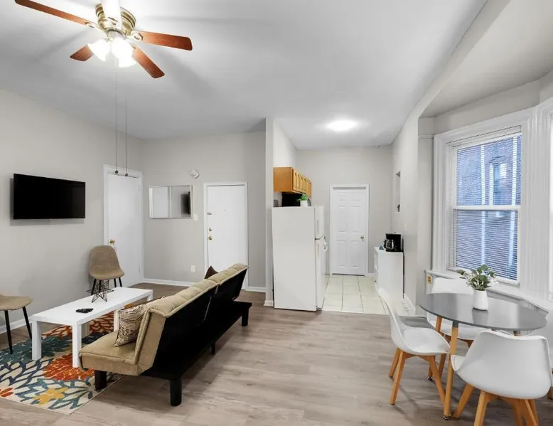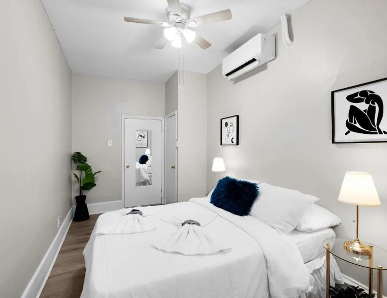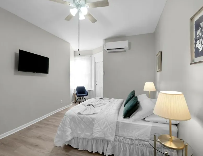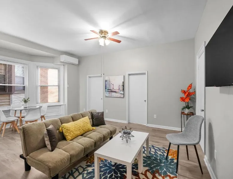 Spacious and Pet-Friendly: Lovely 2br In Univ City offers a spacious apartment in Philadelphia. The property welcomes pets, ensuring a comfortable stay for all guests. Modern Amenities: Guests enjoy free WiFi, air-conditioning, and a fully equipped kitchenette. The apartment includes a spa bath, seating area, and a TV for relaxation. Convenient Location: Located 6.2 mi from Philadelphia International Airport, the apartment is a 13-minute walk from the University of Pennsylvania. Nearby attractions include the Mutter Museum (1.9 mi) and Philadelphia Museum of Art (2.9 mi). Guest Favorites: Visitors appreciate the convenient location and the range of amenities, making it a preferred choice for stays in Philadelphia. Guests will have a special experience as the apartment offers a spa bath. The spacious apartment has a shared bathroom, air conditioning, a tea and coffee maker, as well as a seating area with a TV. In the kitchen, guests will find a stovetop, a refrigerator, kitchenware and an oven. The apartment features a wardrobe, a sofa and heating. The unit has 2 beds and 1 futon.