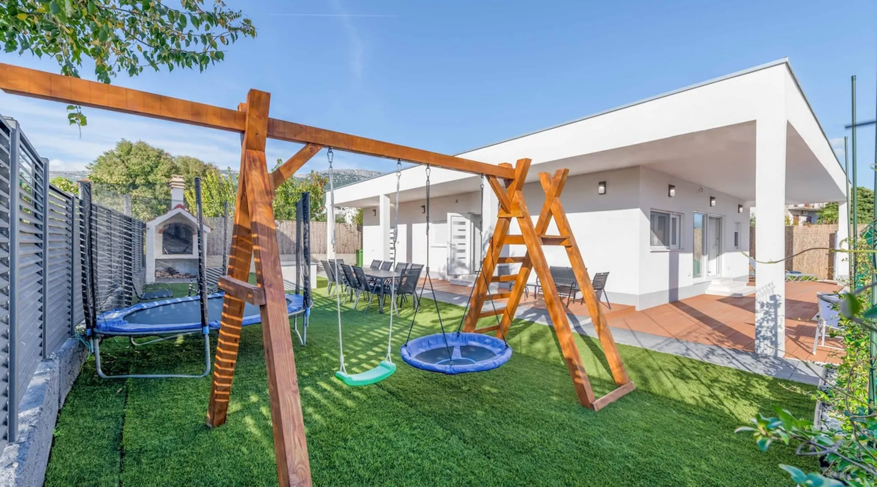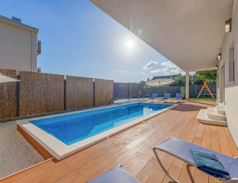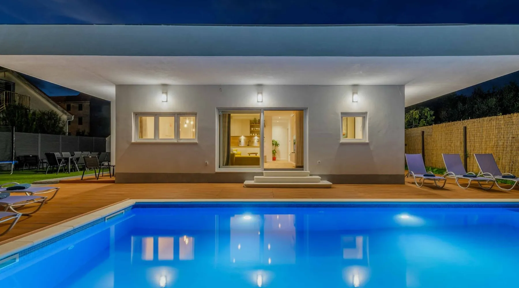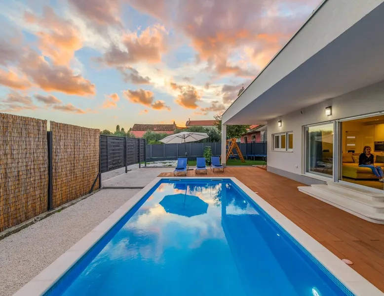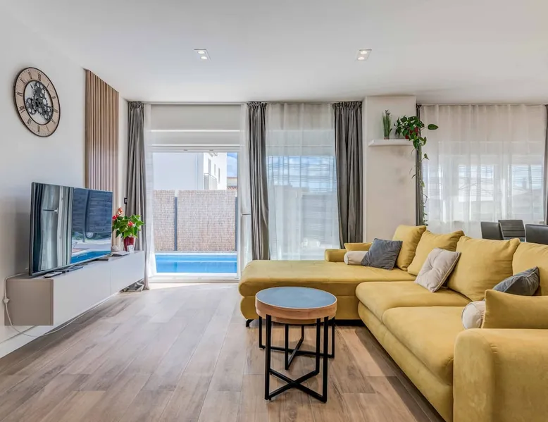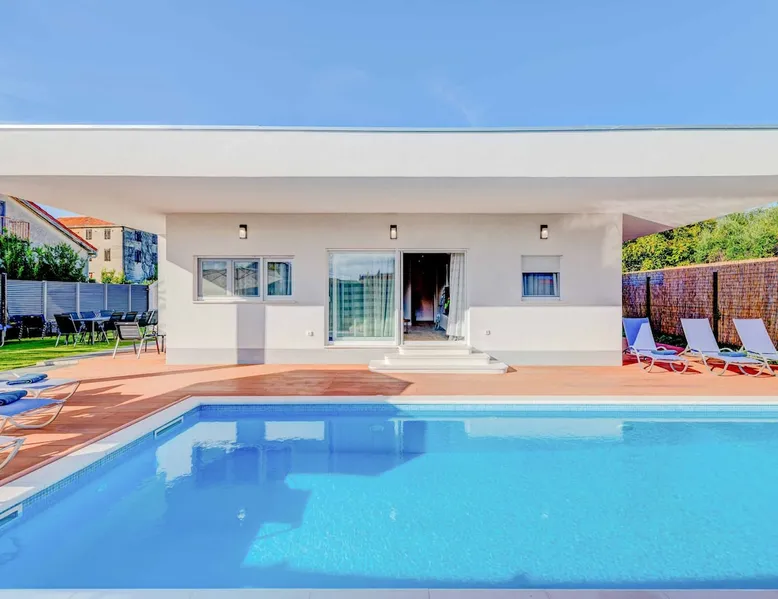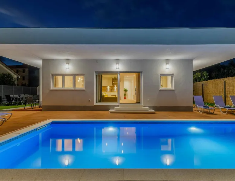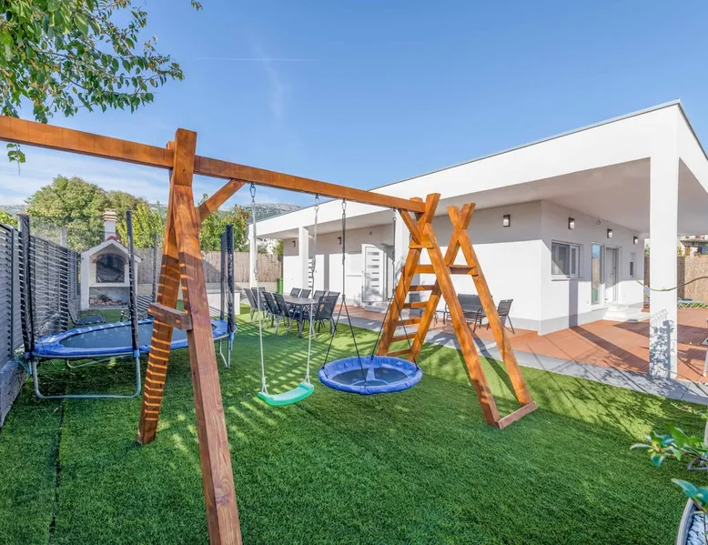 With Dardin Beach practically on its doorstep, Villa Midnight Moon boasts an optimal location offering guests direct access to the Croatian sun, sea, and sand. Many restaurants, cafes, and additional beaches can be found within the neighbourhood while the island’s top attractions are just a short drive away. The space With four bedrooms and three bathrooms, this villa comfortably accommodates up to 8 guests, ideal for extended family holidays and getaways with friends. With plenty to keep the littles entertained, including satellite TV channels and an outdoor play area, adults can relax around the private swimming with peace of mind. Of an evening, why not gather the whole family together and enjoy an al fresco meal grilled on the barbeque? The open plan living, dining, and kitchen area is fully equipped with the latest mod con appliances and ample seating for all the family. Wi-Fi and air conditioning throughout ensure a cool and comfortable stay. *Please note that access to this villa is quite restrictive, and you may struggle to get to the villa with a large vehicle.