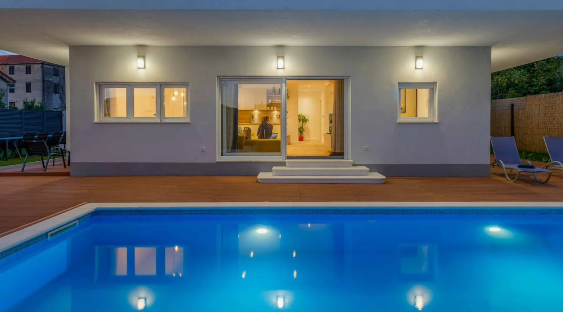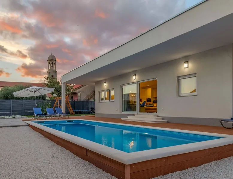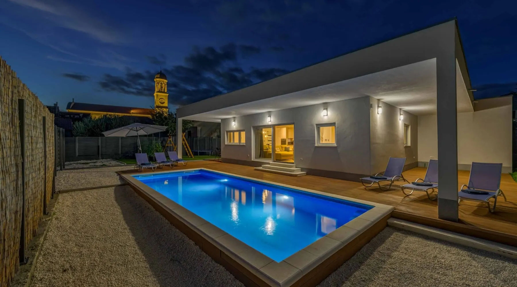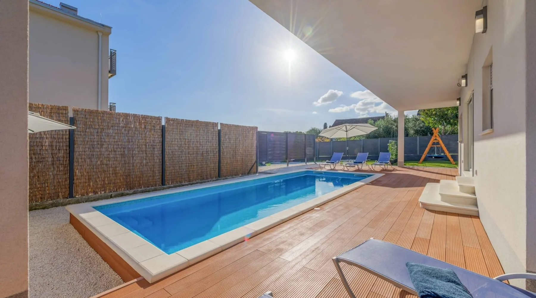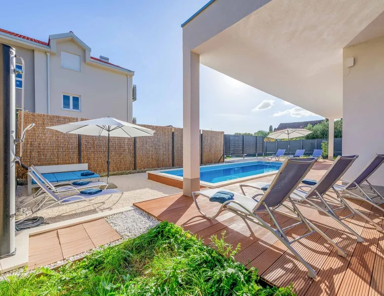 With Dardin Beach practically on its doorstep, Villa Midnight Moon boasts an optimal location offering guests direct access to the Croatian sun, sea, and sand. Many restaurants, cafes, and additional beaches can be found within the neighbourhood while the island’s top attractions are just a short drive away. The space With four bedrooms and three bathrooms, this villa comfortably accommodates up to 8 guests, ideal for extended family holidays and getaways with friends. With plenty to keep the littles entertained, including satellite TV channels and an outdoor play area, adults can relax around the private swimming with peace of mind. Of an evening, why not gather the whole family together and enjoy an al fresco meal grilled on the barbeque? The open plan living, dining, and kitchen area is fully equipped with the latest mod con appliances and ample seating for all the family. Wi-Fi and air conditioning throughout ensure a cool and comfortable stay. *Please note that access to this villa is quite restrictive, and you may struggle to get to the villa with a large vehicle.