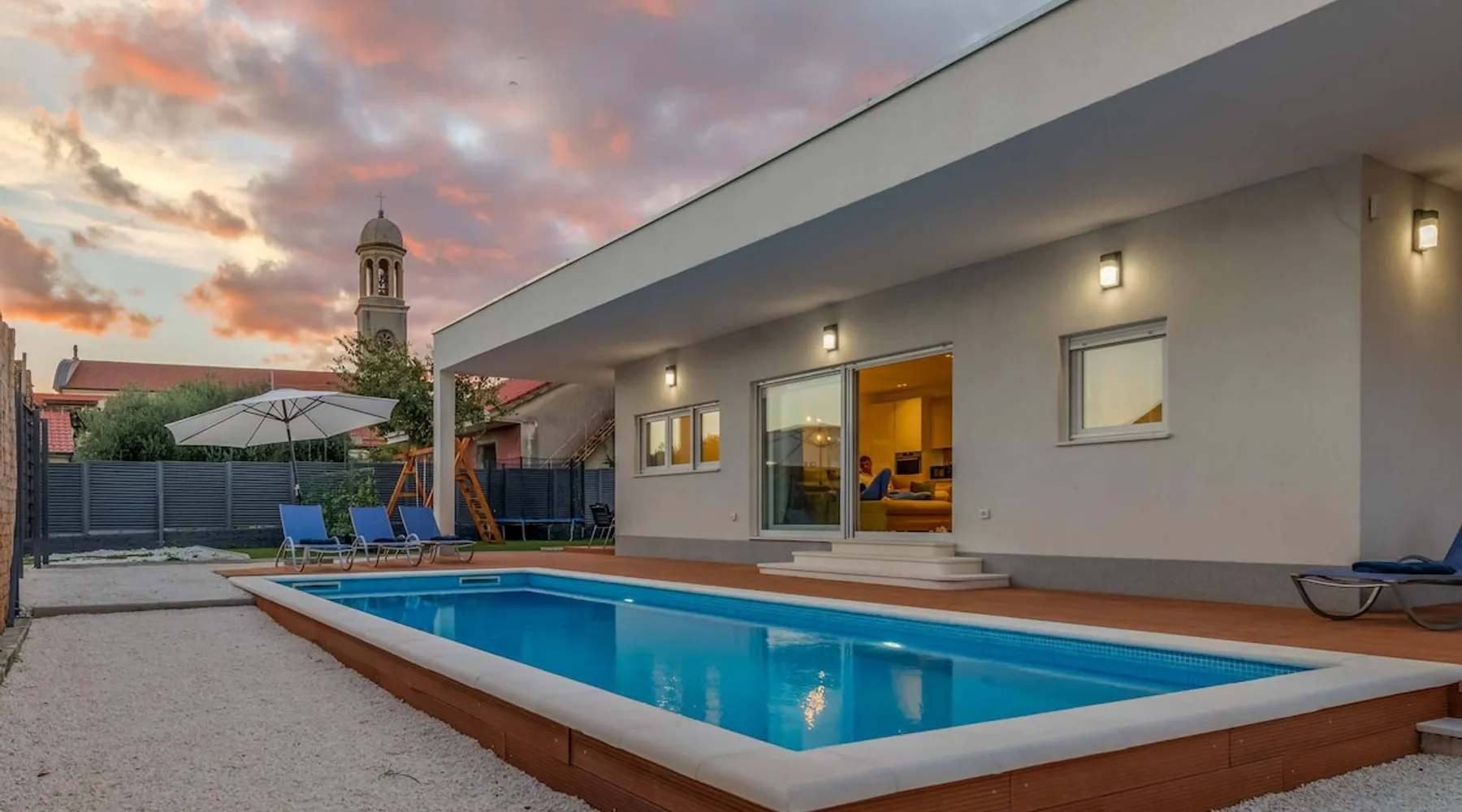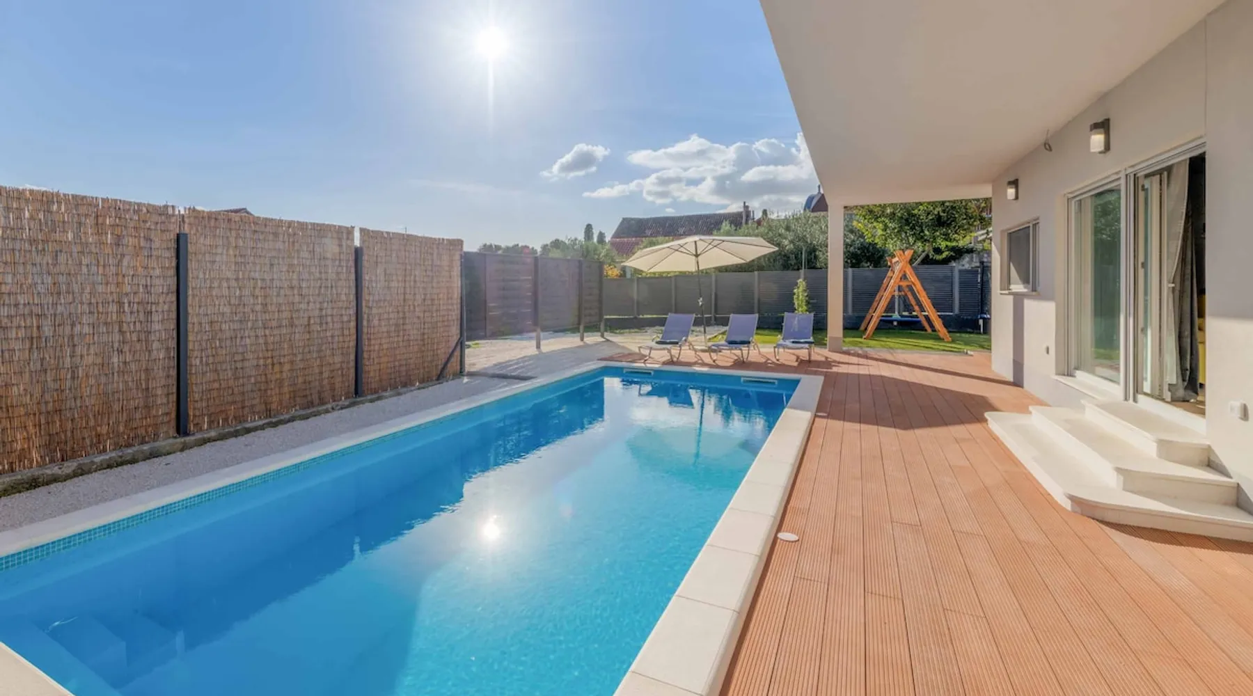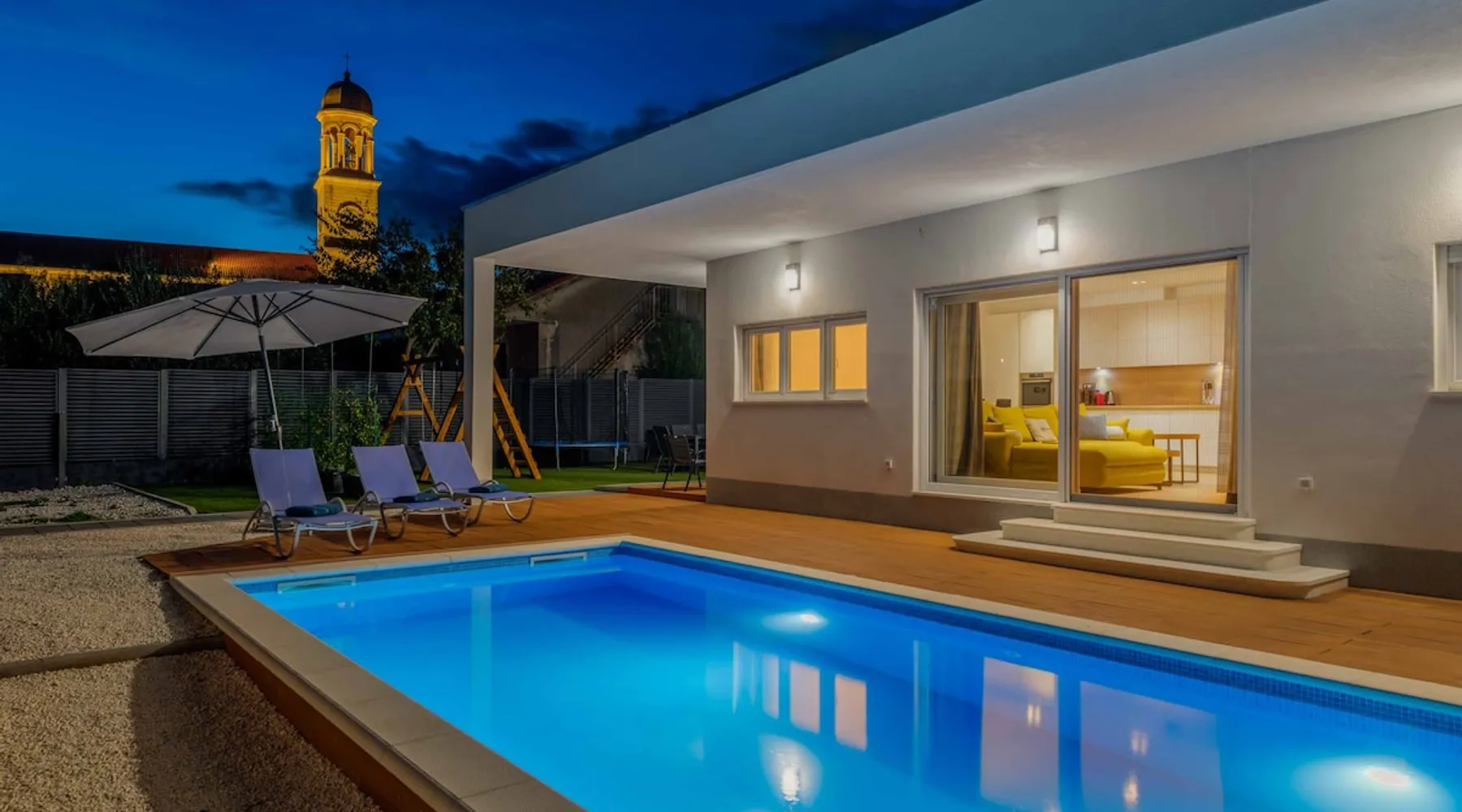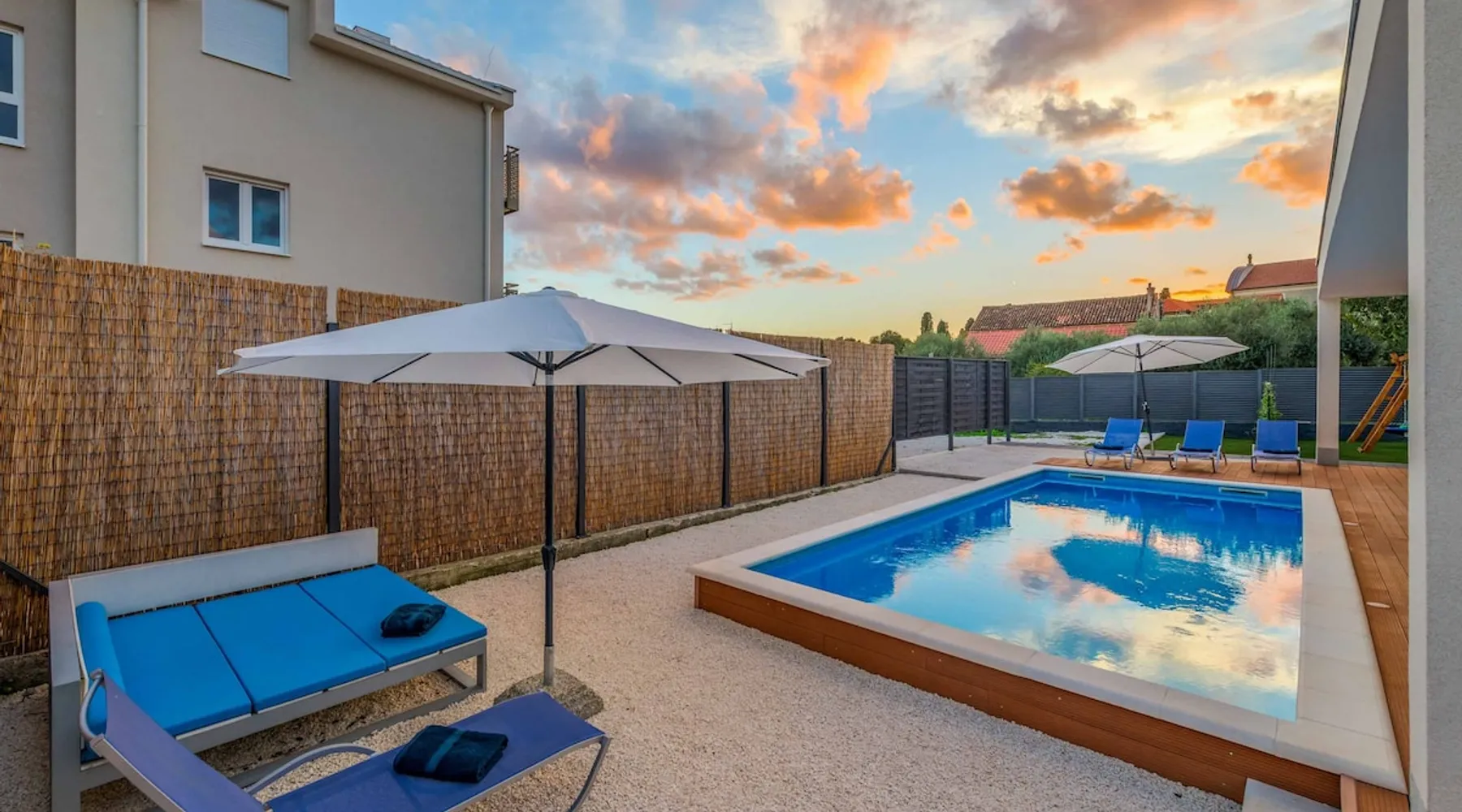 With Dardin Beach practically on its doorstep, Villa Midnight Moon boasts an optimal location offering guests direct access to the Croatian sun, sea, and sand. Many restaurants, cafes, and additional beaches can be found within the neighbourhood while the island’s top attractions are just a short drive away. The space With four bedrooms and three bathrooms, this villa comfortably accommodates up to 8 guests, ideal for extended family holidays and getaways with friends. With plenty to keep the littles entertained, including satellite TV channels and an outdoor play area, adults can relax around the private swimming with peace of mind. Of an evening, why not gather the whole family together and enjoy an al fresco meal grilled on the barbeque? The open plan living, dining, and kitchen area is fully equipped with the latest mod con appliances and ample seating for all the family. Wi-Fi and air conditioning throughout ensure a cool and comfortable stay. *Please note that access to this villa is quite restrictive, and you may struggle to get to the villa with a large vehicle.
