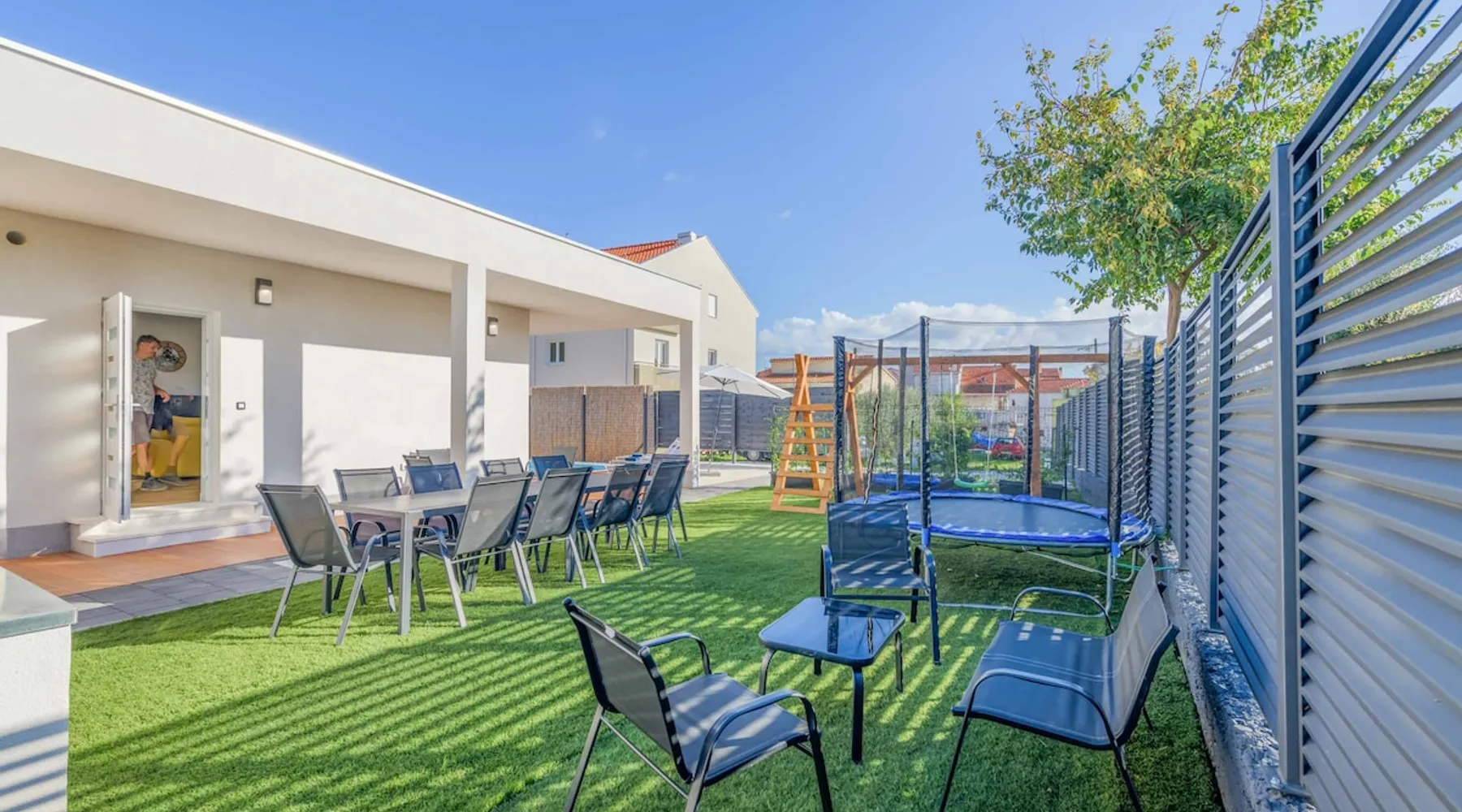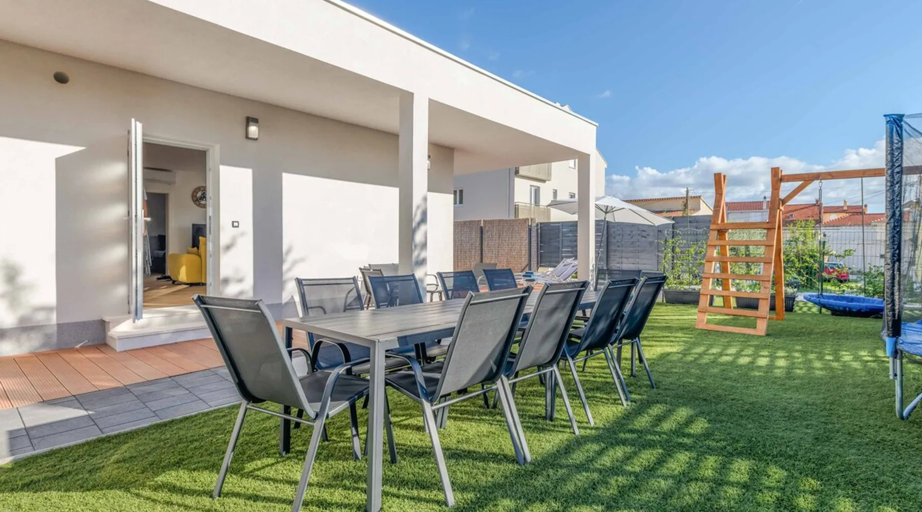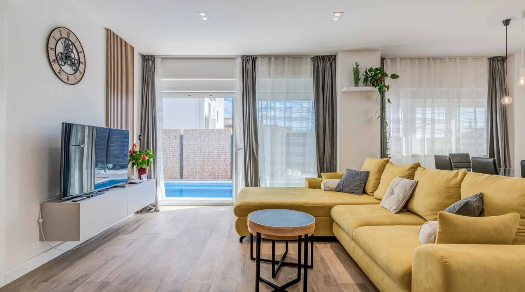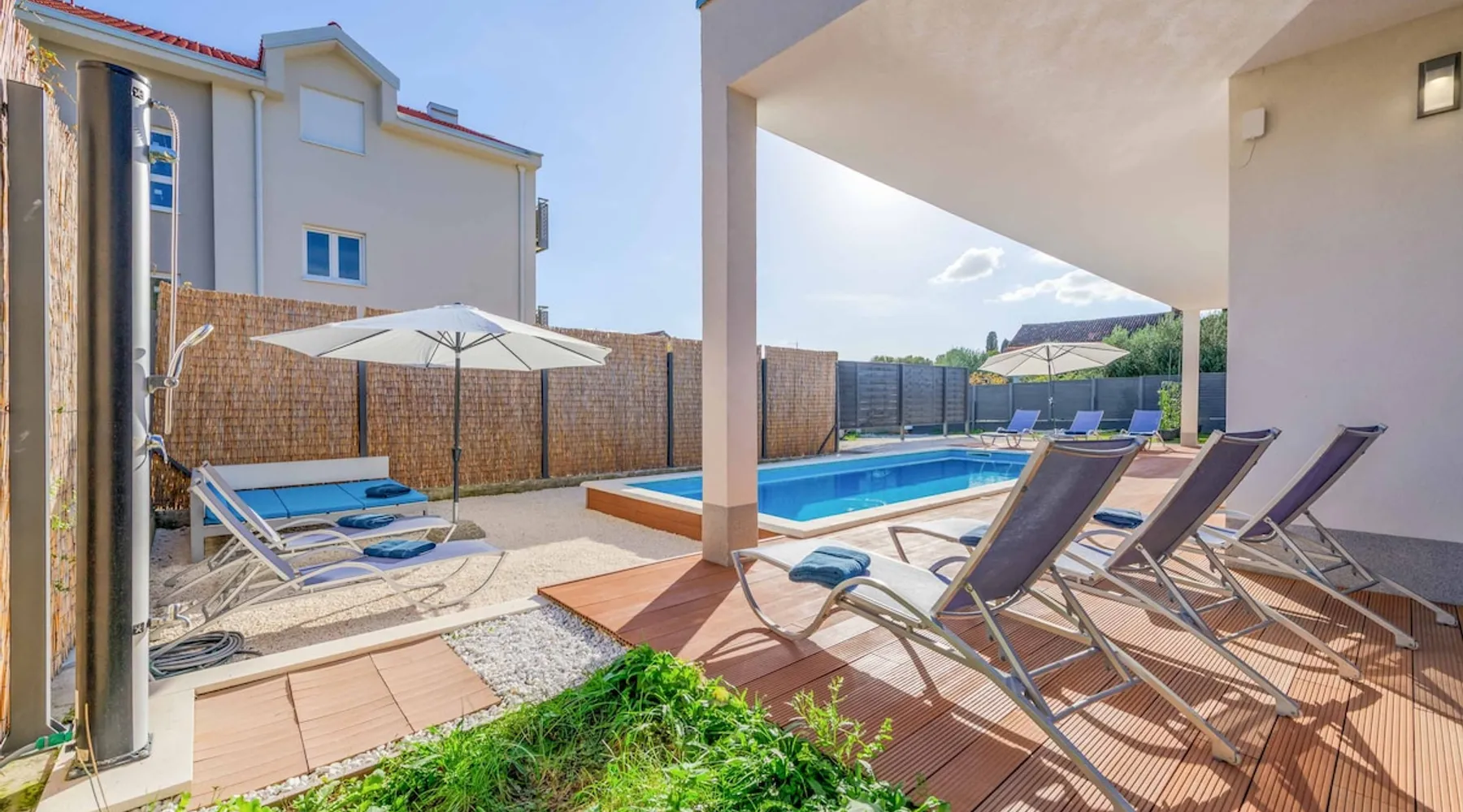 With Dardin Beach practically on its doorstep, Villa Midnight Moon boasts an optimal location offering guests direct access to the Croatian sun, sea, and sand. Many restaurants, cafes, and additional beaches can be found within the neighbourhood while the island’s top attractions are just a short drive away. The space With four bedrooms and three bathrooms, this villa comfortably accommodates up to 8 guests, ideal for extended family holidays and getaways with friends. With plenty to keep the littles entertained, including satellite TV channels and an outdoor play area, adults can relax around the private swimming with peace of mind. Of an evening, why not gather the whole family together and enjoy an al fresco meal grilled on the barbeque? The open plan living, dining, and kitchen area is fully equipped with the latest mod con appliances and ample seating for all the family. Wi-Fi and air conditioning throughout ensure a cool and comfortable stay. *Please note that access to this villa is quite restrictive, and you may struggle to get to the villa with a large vehicle.