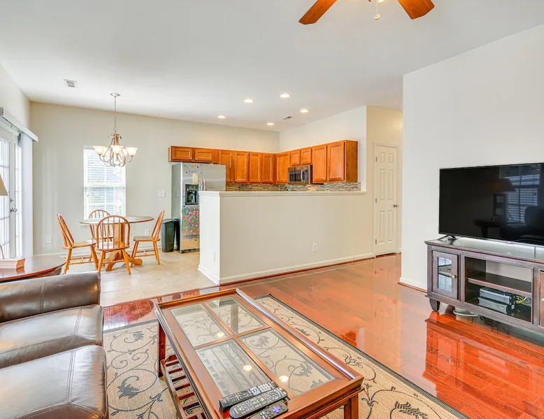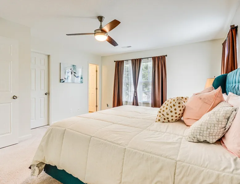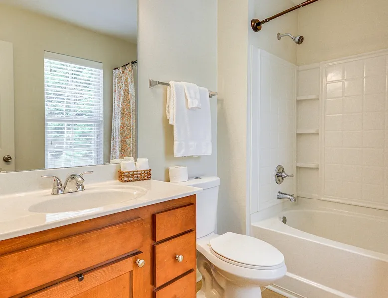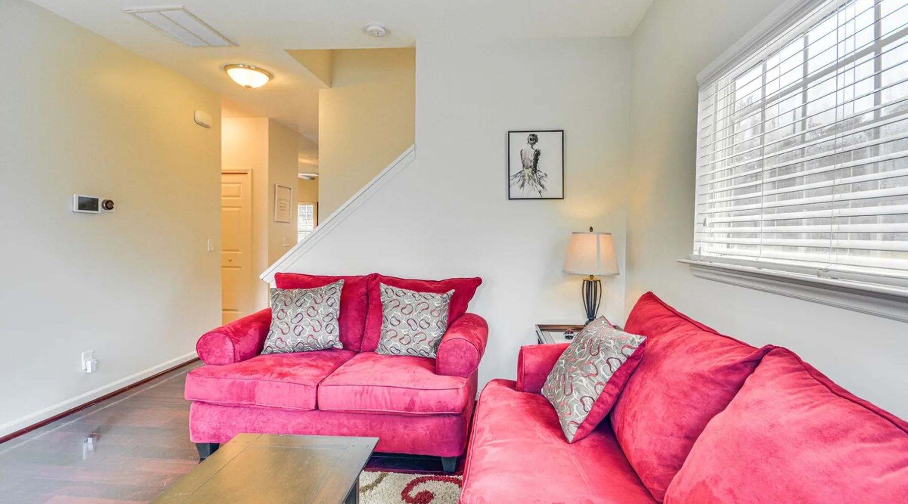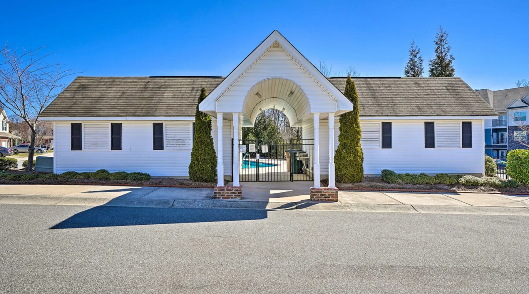 Discover North Carolina and all it has to offer and make this spacious 2-bedroom, 2.5-bathroom vacation rental your home away from home. This townhome features Smart TVs, a community pool, and a fully equipped kitchen — perfect for whipping up mouthwatering meals with loved ones. Venture just 8 miles to explore downtown attractions, entertainment, and historical sites. Take a breath of fresh air at Gateway Gardens or step back in time at the History Museum. Greensboro is your oyster! The space Permit #: 24-493 | Community Pool | Multiple Living Spaces | Free WiFi Bedroom 1: King Bed | Bedroom 2: Queen Bed MAIN FEATURES: Smart TVs, dining table, ceiling fans, charcoal grill w/ smoker (charcoal not provided), fenced yard, porch w/ outdoor furniture KITCHEN: Stainless steel appliances, refrigerator, stove/oven, microwave, toaster, dishwasher, coffee maker, cooking basics, dishware/flatware, spices GENERAL: Linens/towels, washer/dryer (laundry detergent provided), central A/C & heating, iron/board, hair dryer, trash bags/paper towels FAQ: Quiet hours (after 10:00 PM), 3 exterior security cameras (outward facing) ACCESSIBILITY: 2-story townhome, half step required to enter PARKING: Driveway (1 vehicle), open lot (first-come, first-served) Guest access Guests will have access to the entire property via keyless entry Other things to note - No smoking - No pets allowed - No events, parties, or large gatherings - Must be at least 25 years old to book - Additional fees and taxes may apply - Photo ID may be required upon check-in - NOTE: Please observe quiet hours after 10:00 PM - NOTE: Your safety matters. This property features 3 exterior security cameras: Camera 1 is located by the front door facing the outdoor entryway, camera 2 is located on the back of the house facing the yard, and camera 3 is an Arlo doorbell device facing the front walkway. The cameras are outward facing and do not look into interior spaces. The cameras actively record video and sound - NOTE: This 2-story townhome requires a half step to enter. Stairs are required to access all of the bedrooms located on the upper level
