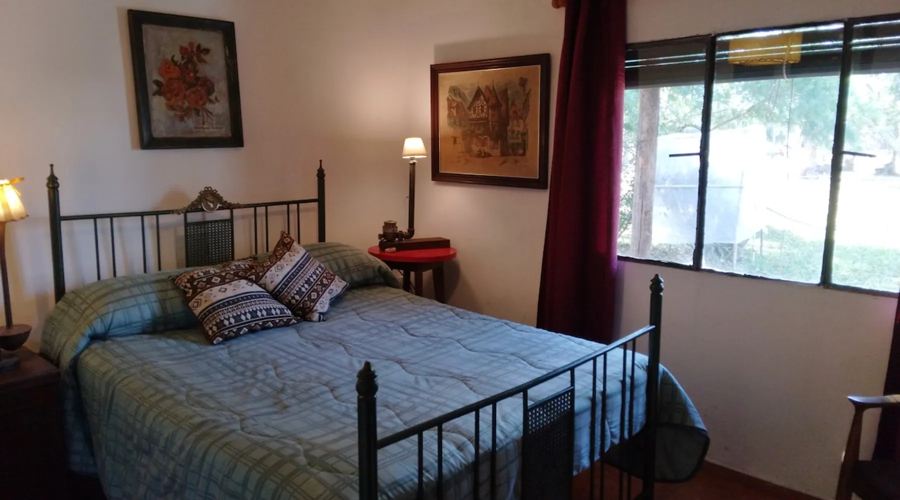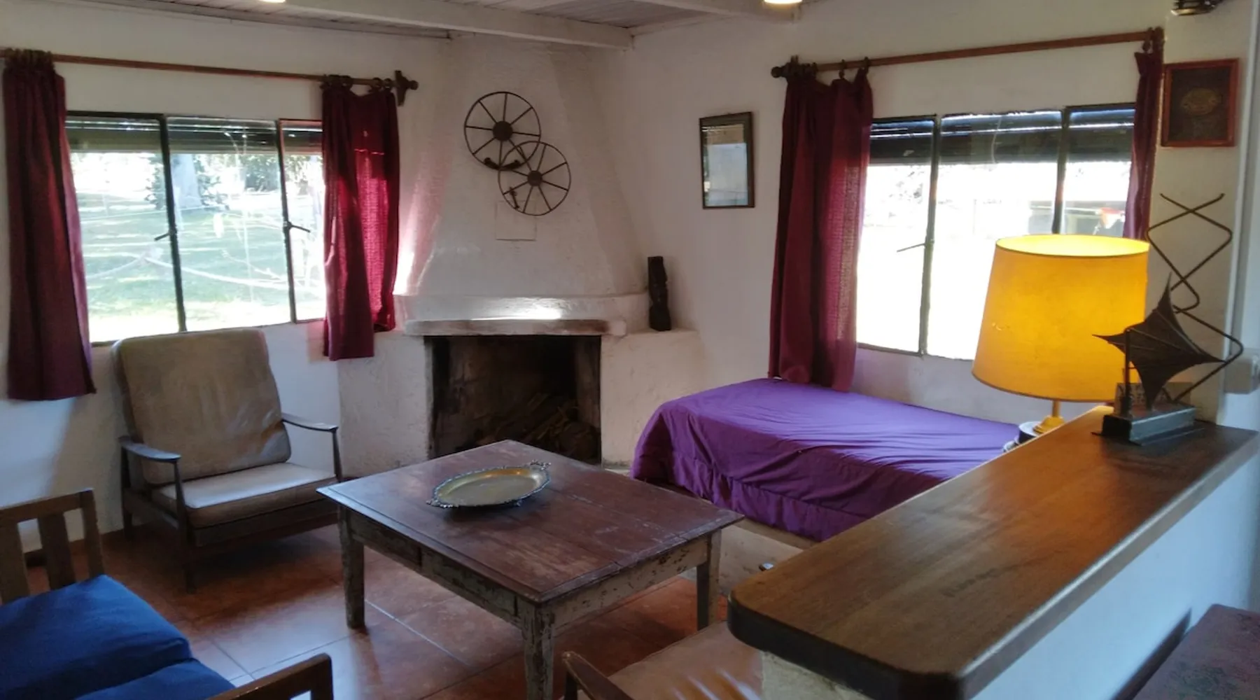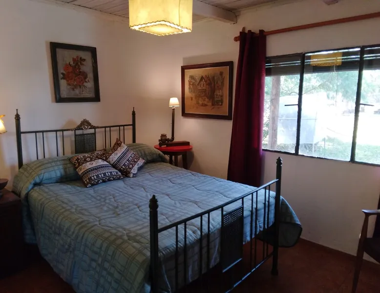 Located 3.5 km from the city center of San José de Mayo, the estate has a fully equipped guest house. Cozy and bright environments. Private lagoon access. Great for fishing and bird watching. Coast over the ravines of the river San Jose. It allows you to enjoy walks on the native mountain. Woodstove. Spacious patio with Creole grill. We will be happy to share our corner of the world with you!! The space 3.5 km from downtown San José de Mayo. 50 km from Kiyu. 30 km from the Sierra de Mahoma (tourist village and stone sea). An hour from Montevideo, we have a corner of peace and quiet in contact with nature by the river. Our home is 30 meters from the house where guests will be staying, so we are available to attend to any need that may arise during their stay. We provide guests with breakfast preparation items (bread or cookies, butter, jam, milk or yogurt), they can freely use tea and instant coffee. Firewood (for grill and stove) is available. There are places next to the guest house that are transit and use on the property, such as the trail to the mountain and meadow, the sheds, and the swing of the animal drinker. We don't serve breakfast. We don't make the beds. There is no laundry service. Cleaning supplies are available at the house. Guest access Predio. Lagoon. Monte Nativo. River. Activities Allowed: Mount Hike, Fishing, Bird Watching. Our home is 30 meters from the house where guests will be staying, so we are available to attend to any need that may arise during their stay. We provide guests with breakfast preparation items, and they can freely use instant tea and coffee. We don't serve breakfast. We don't make the beds. There is no laundry service. Firewood (for grill and stove) is available. Cleaning supplies are available Other things to note Spanish, English, Portuguese, and a little Italian and French. There are places next to the guesthouse that are in transit and use on the property, such as the trail to Mt., the sheds, and the canopy of the animal drinker. (We respect guests' privacy but may need to approach the house.) If you want, we can offer you a guided walk service through places of interest in San José de Mayo (separate cost). We don't serve breakfast. We don't make the beds. There is no laundry service. Firewood (for grill and stove) is available.