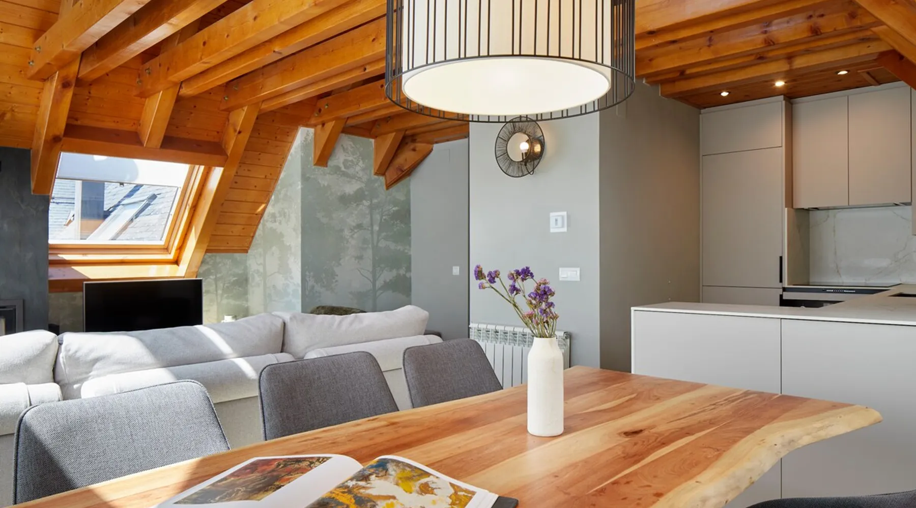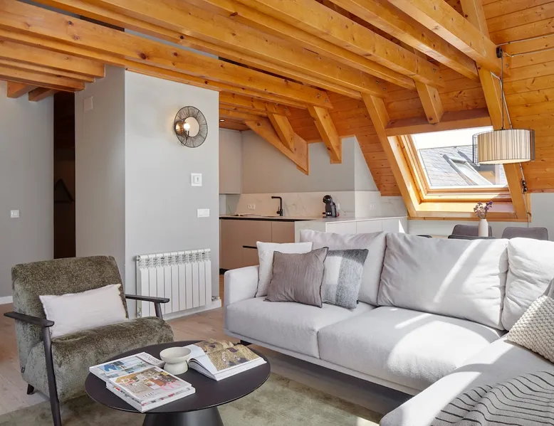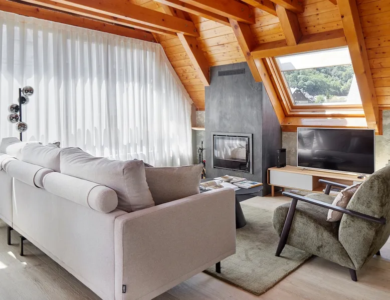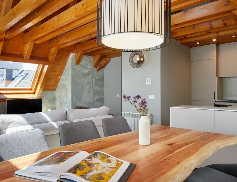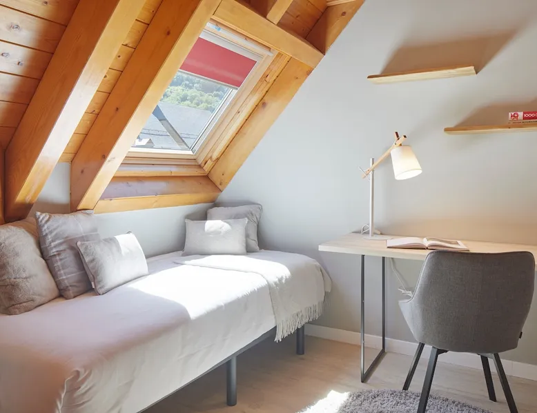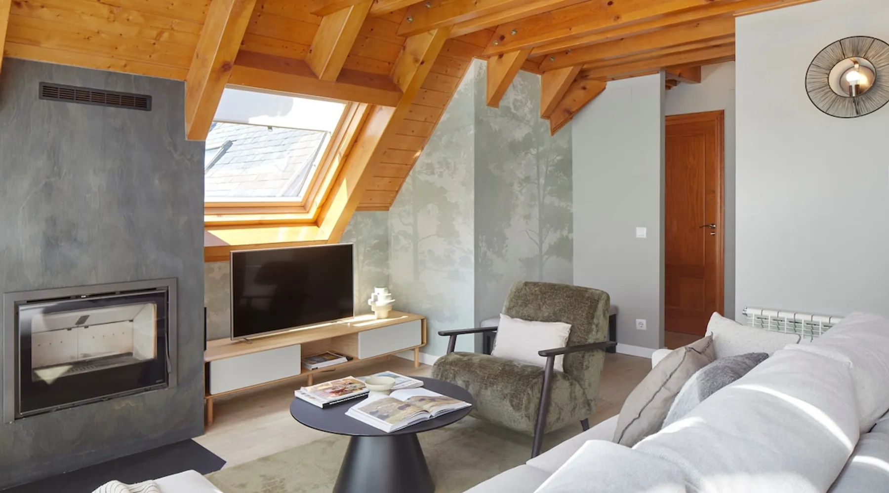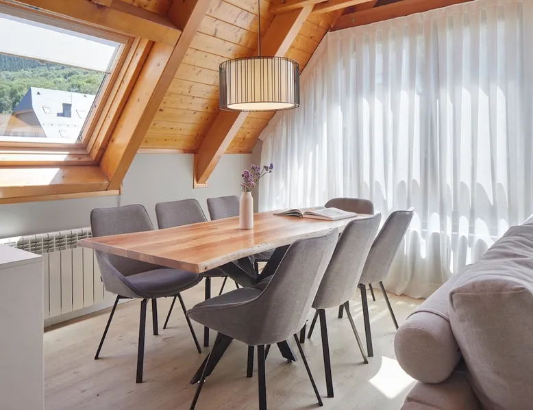 Enjoy an unforgettable stay in this charming duplex in the center of Vielha, with mountain views and a cozy, nature-inspired decor. With wooden ceilings, a fireplace, and a fully equipped kitchen, this space offers you an authentic Pyrenees experience. Plus, you’ll be just steps away from Vielha’s picturesque streets, where you can discover local shops, tapas bars, and the finest regional cuisine. The space This duplex, with its warm atmosphere and wooden details, invites you to relax in its spacious living-dining room, enjoy a morning coffee, or spend an evening by the fireplace. The open-plan kitchen is fully equipped, allowing you to prepare a delicious homemade dinner. When you step outside, explore Vielha’s cobbled streets, filled with local shops, cozy restaurants, and tapas bars where you can savor the exquisite Aranese cuisine. LAYOUT Master bedroom: 150 cm bed. Bedroom 2: two 90 cm beds. Bedroom 3: bunk bed (90 cm). Two bathrooms. Bright and spacious living-dining room. Open-plan kitchen. HIGHLIGHTS Like all FeelFree properties, Les Marmottes guarantees the highest quality standards. It offers a parking space, ski storage, wifi, smart TV, and high-quality linens, ensuring a worry-free stay. NRA: ESFCTU0000250090004647050000000000000HUTVA -051024-280 Other things to note To access your apartment, it is mandatory to complete the online check-in with the details of all travelers over 14 years old and provide a credit card to the host. Registration Details Catalonia – Regional registration number HUTVA-051024
