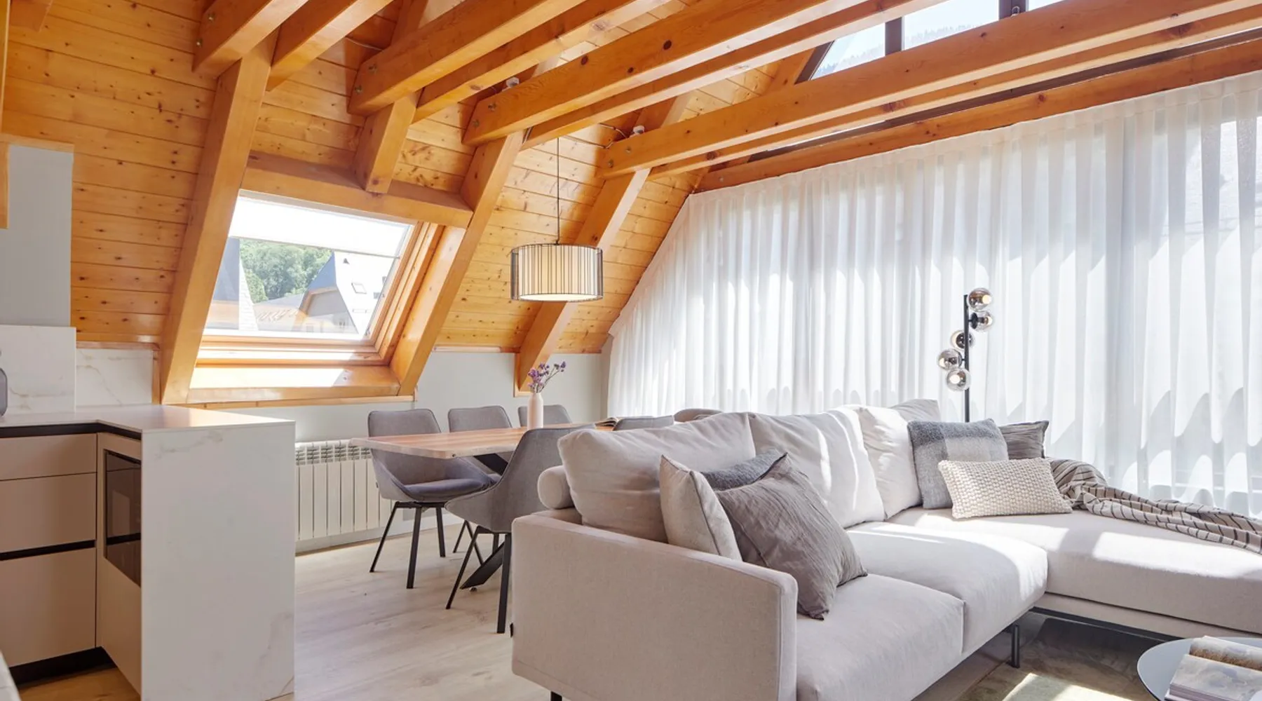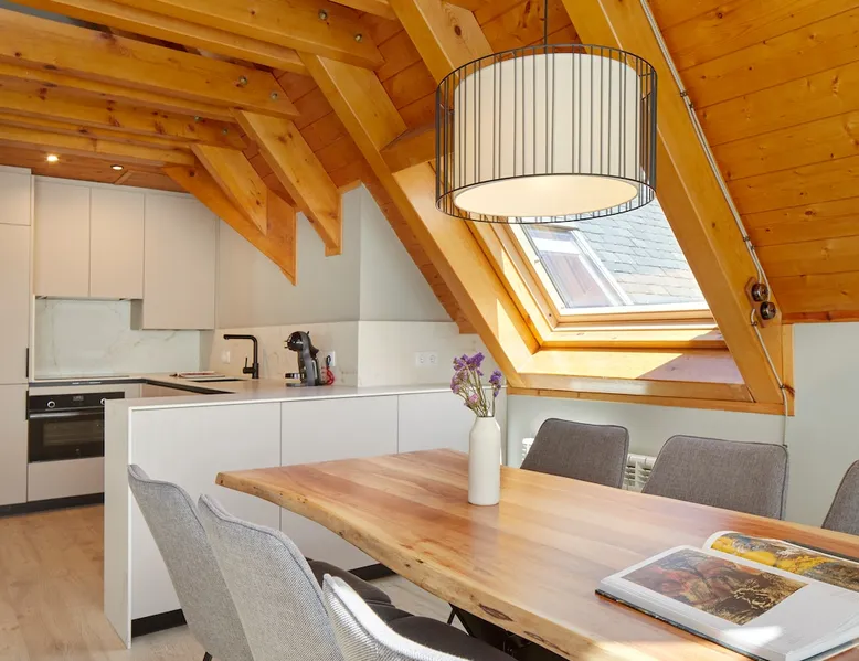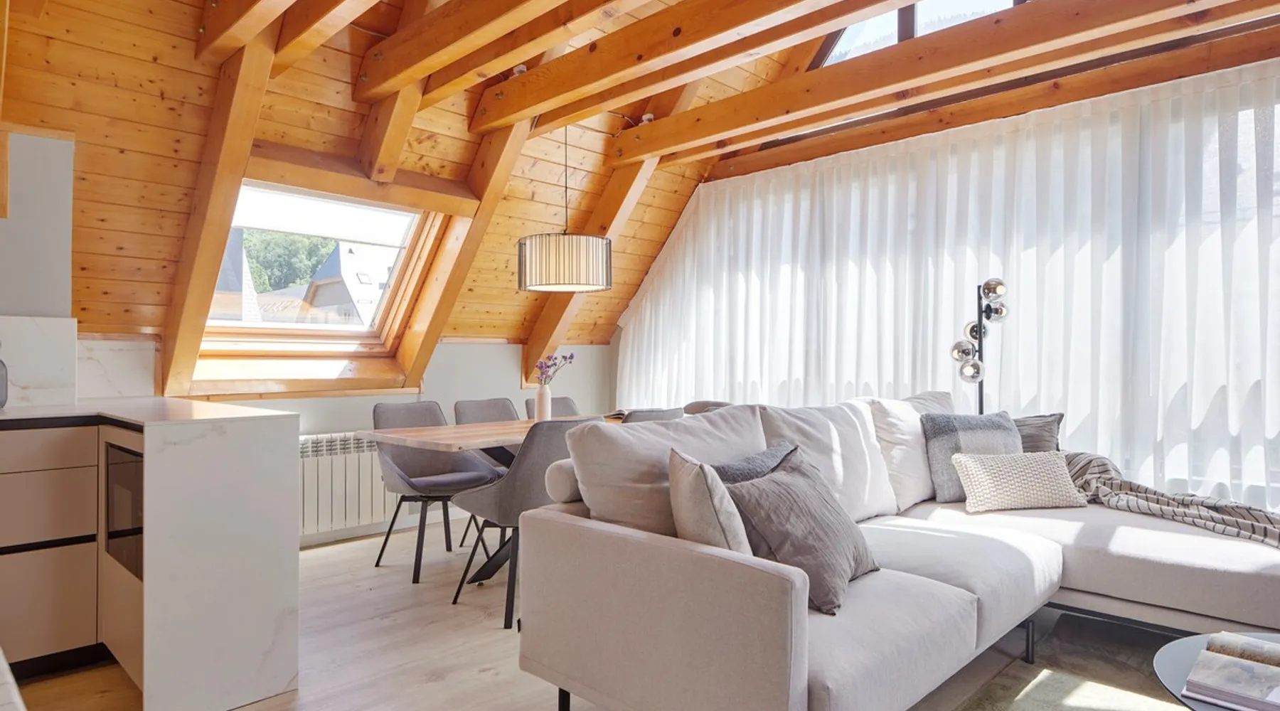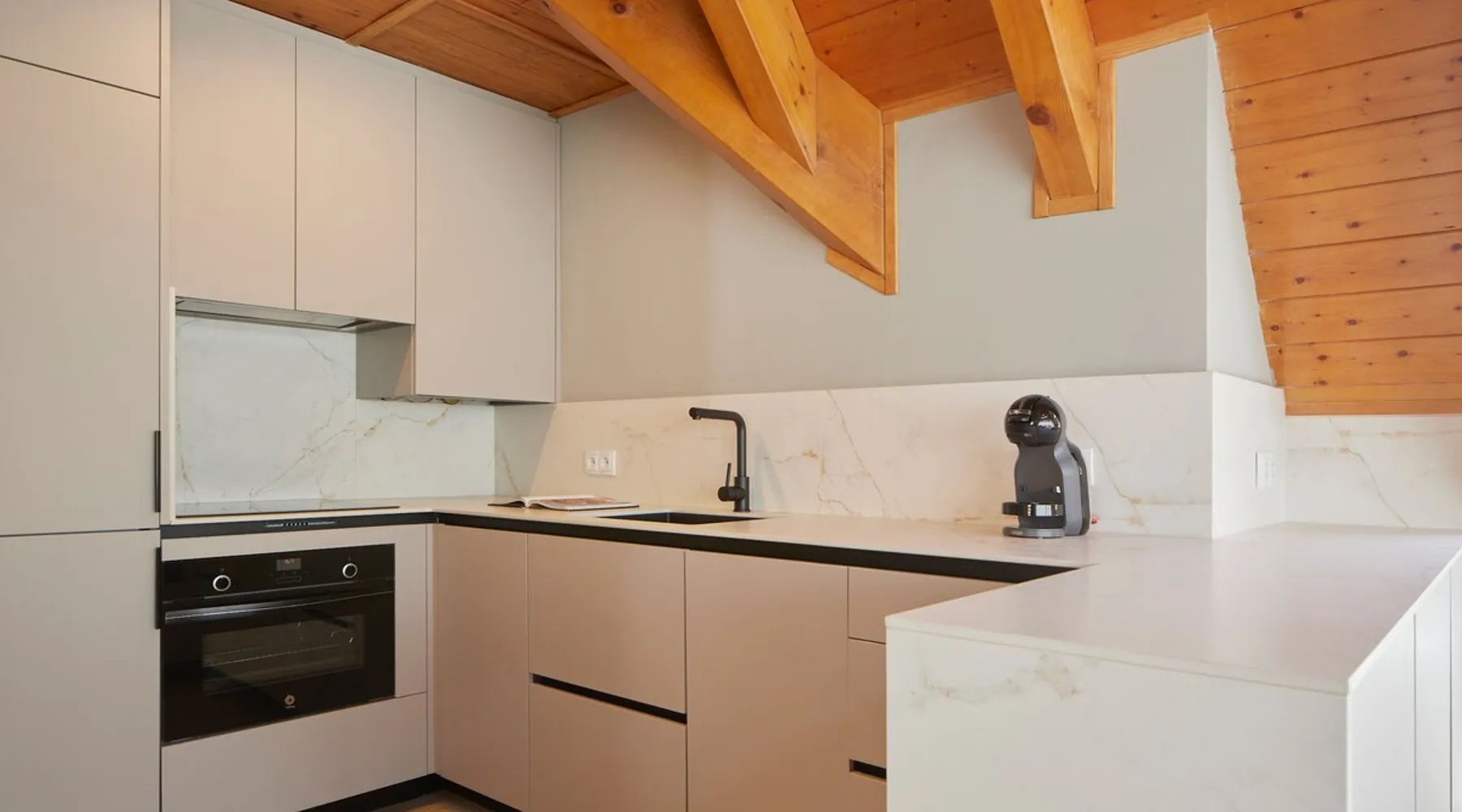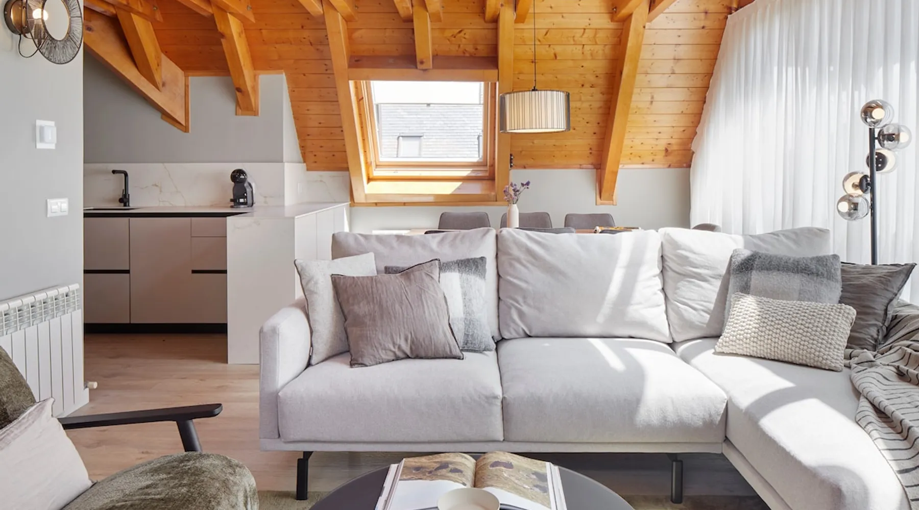 Enjoy an unforgettable stay in this charming duplex in the center of Vielha, with mountain views and a cozy, nature-inspired decor. With wooden ceilings, a fireplace, and a fully equipped kitchen, this space offers you an authentic Pyrenees experience. Plus, you’ll be just steps away from Vielha’s picturesque streets, where you can discover local shops, tapas bars, and the finest regional cuisine. The space This duplex, with its warm atmosphere and wooden details, invites you to relax in its spacious living-dining room, enjoy a morning coffee, or spend an evening by the fireplace. The open-plan kitchen is fully equipped, allowing you to prepare a delicious homemade dinner. When you step outside, explore Vielha’s cobbled streets, filled with local shops, cozy restaurants, and tapas bars where you can savor the exquisite Aranese cuisine. LAYOUT Master bedroom: 150 cm bed. Bedroom 2: two 90 cm beds. Bedroom 3: bunk bed (90 cm). Two bathrooms. Bright and spacious living-dining room. Open-plan kitchen. HIGHLIGHTS Like all FeelFree properties, Les Marmottes guarantees the highest quality standards. It offers a parking space, ski storage, wifi, smart TV, and high-quality linens, ensuring a worry-free stay. NRA: ESFCTU0000250090004647050000000000000HUTVA -051024-280 Other things to note To access your apartment, it is mandatory to complete the online check-in with the details of all travelers over 14 years old and provide a credit card to the host. Registration Details Catalonia – Regional registration number HUTVA-051024