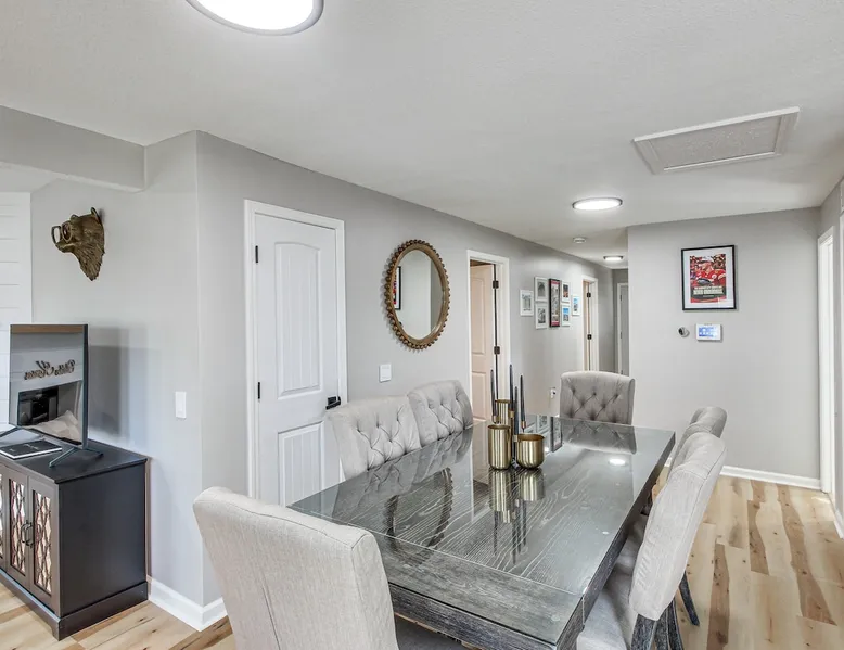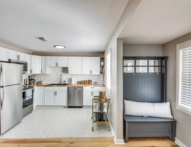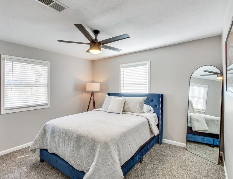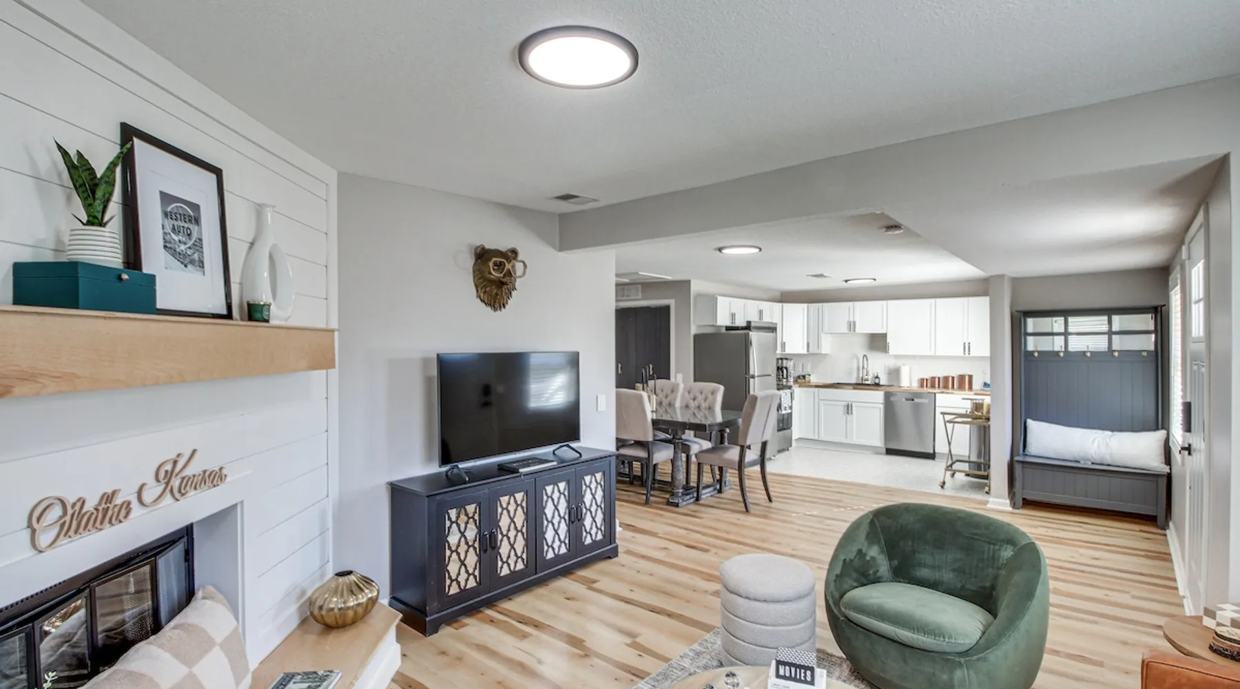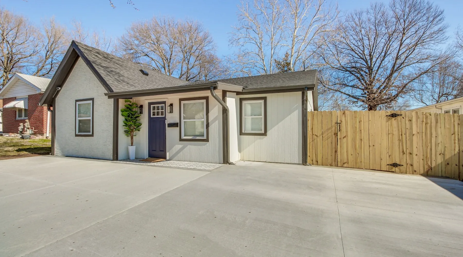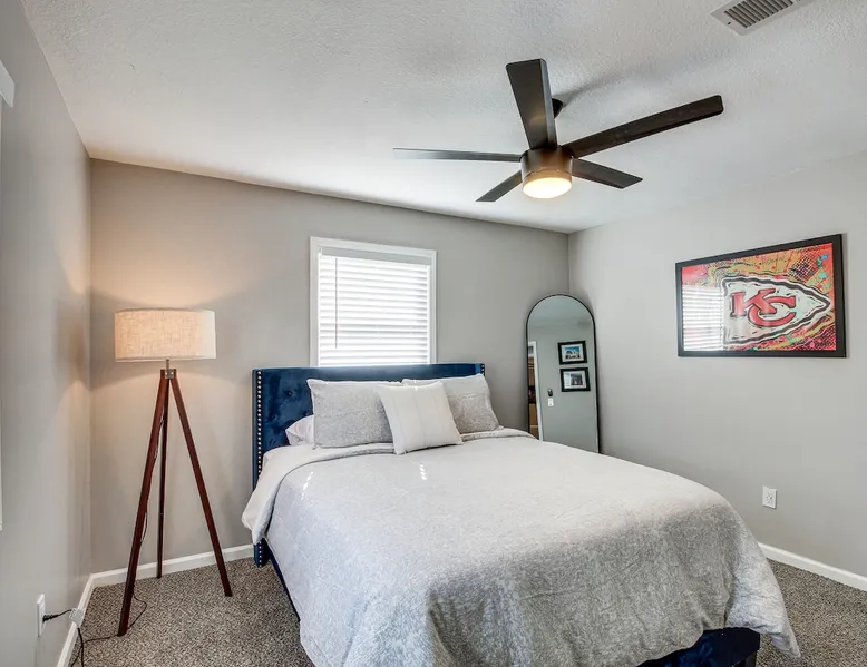 Experience the excitement of the Kansas City area when you stay at this well-appointed, 3-bedroom, 1-bath home in Olathe! Perfect for families and friends, this vacation rental offers a fully equipped kitchen, modern décor, and easy access to the area’s top attractions. Take a stroll through Ernie Miller Park & Nature Center, catch a Royals game at Kauffman Stadium, or check out the Overland Park Farmers’ Market. After a day of adventure, head inside for a cozy movie night by the Smart TV. The space Dog Friendly w/ Fee | Smart TV | Central Air Conditioning & Heating Bedroom 1: Queen Bed | Bedroom 2: Queen Bed | Bedroom 3: Queen Bed | Additional Sleeping: Pack ‘n Play MAIN FEATURES: Smart TV, modern home décor, board games, books, 6-person dining table, high chair, ceiling fans KITCHEN: Cooking basics, microwave, refrigerator, stove/oven, dishwasher, Ninja coffee maker (coffee, creamer & syrups provided) GENERAL: Free WiFi, linens/towels, in-unit washer/dryer, hair dryer, complimentary toiletries FAQ: Pet fee (paid pre-trip), 3 exterior security cameras (facing out) ACCESSIBILITY: Step-free access, single-story home PARKING: Driveway (3-4 vehicles), free street parking (first-come, first-served) Guest access Guests will have access to the entire property via keyless entry Other things to note - No smoking - Pet friendly w/ $100 fee (+ fees & taxes, dogs only) - No events, parties, or large gatherings - Must be at least 21 years old to book - Additional fees and taxes may apply - Photo ID may be required upon check-in - NOTE: This single-story property offers step-free access - NOTE: Your safety matters. This property features 3 exterior security cameras: camera 1 is located at the front door facing the front entrance, camera 2 is at the back door facing the back entrance, and camera 3 is near the front driveway of the house facing out. The cameras do not look into interior spaces. The cameras record video and sound when activated by motion. They will record when they first sense motion and 30 seconds after the last motion is detected