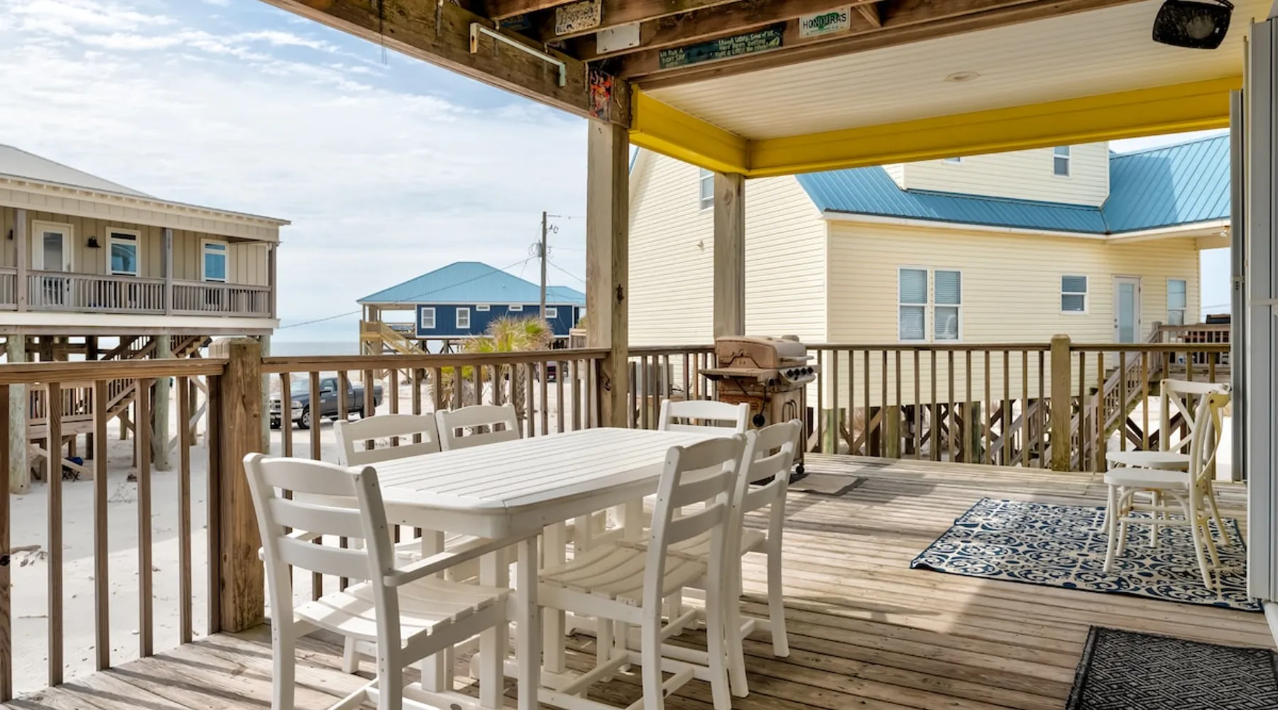 Escape to paradise at Lazy Daze Beach House. This stunning 2-story vacation rental home on Dauphin Island. With an open floor plan for the living space, this home is perfect for gatherings and relaxation. The large fully equipped kitchen is a chef's dream, while the dining room table offers ample seating for family meals. Cozy up in the living room across from the fireplace and enjoy movie nights on the large TV. The space Upstairs, the second floor features a luxurious master ensuite with a king-size bed, a private covered outdoor patio with sweeping views of the Gulf, and a spacious his and hers bathroom. Downstairs, guests will find a queen bedroom and a bunk room with 1 full-over-full and 1 twin-over-twin bunk bed, perfect for accommodating children or additional guests. A common bathroom on the first floor ensures convenience for all. Outside, the wrap-around deck provides the ultimate outdoor living experience. Parts of the deck are covered and include seating and dining areas, ideal for enjoying meals al fresco or simply soaking in the island ambiance. The elevated deck offers breathtaking views of the white sands and sparkling waters of the Gulf of Mexico, creating the perfect backdrop for your island getaway. Other things to note Lazy Daze is the first house on the right on Strand Ct - a small gulfside street off Bienville Blvd on the west end of Dauphin Island. Guests have access to the gulf side beaches by taking a short walk down Strand Ct. As with all of our Dauphin Island Beach Rentals, all linens and towels are provided, WIFI, along with a fully-outfitted kitchen. There will be a starter pack of toilet paper, paper towels, and trash bags; please plan on bringing more for day 2 ;). A great beach vacation is waiting on you! House Rules: 1. Minimum Age for the Primary Renter is 25, and Primary Renter must be present for the entire stay. 2. Maximum Occupancy numbers include Children 3 and over and cannot be exceeded at any time. 3. All of our Homes are Non-Smoking. 4. A signed Rental Agreement is Required, which contains additional Rules and Guidance. 5. This property does not allow weddings or parties. 6. Check-in time is 3 pm, and check-out time is 10 am. 7. Start dishes and linens before departure. 8. Take the trash can to the street on Tuesday night and Friday night. 9. This home is pet-friendly, dogs only, 2-Pet Maximum Limit - $100 pet fee per pet plus tax applies. Pet Fee is NOT included in Airbnb quote and will result in additional charge.