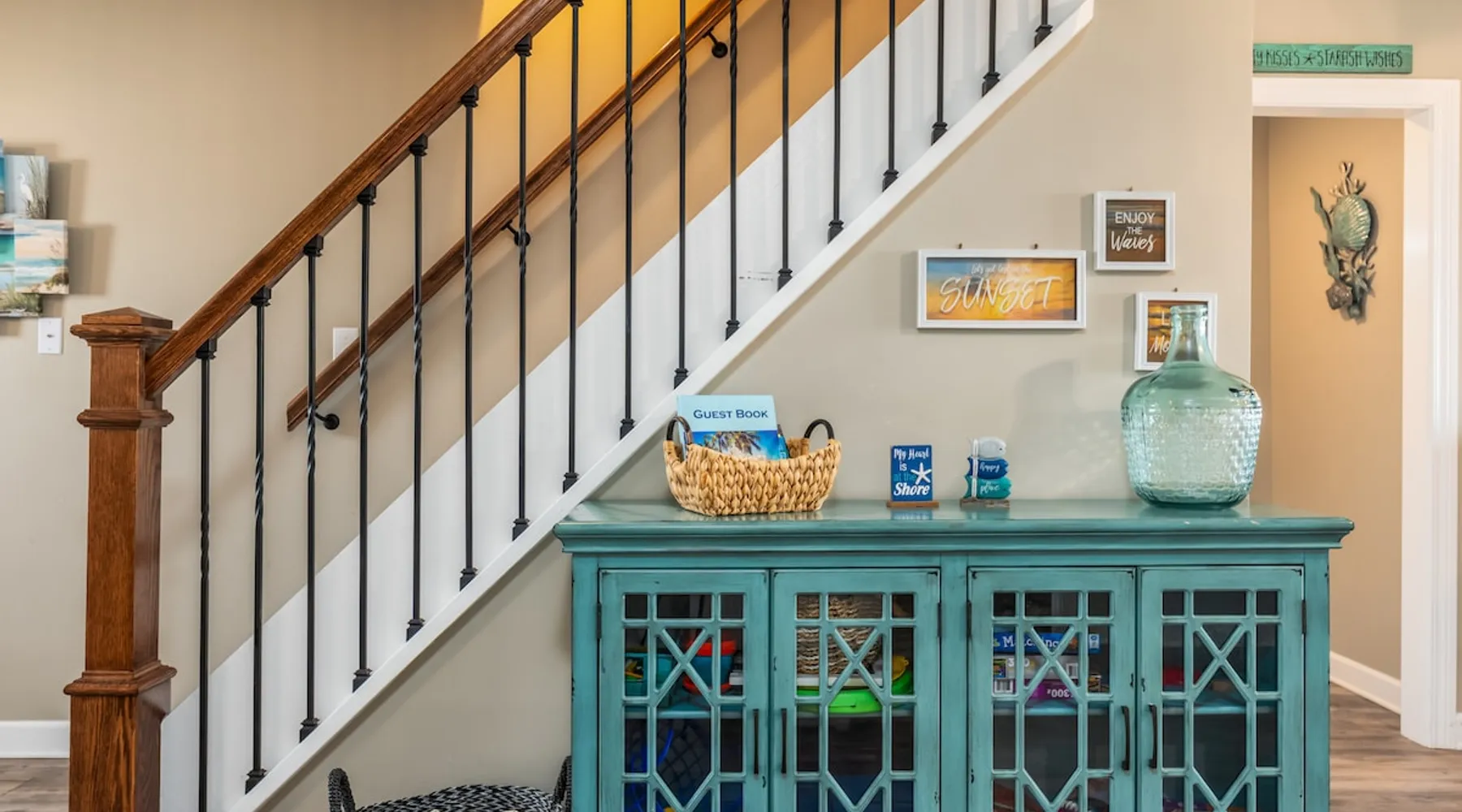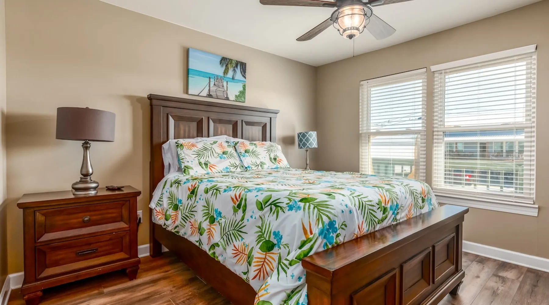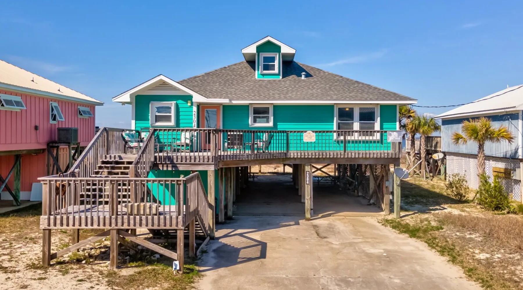 Escape to Chele's Bayside Cottage, a delightful 2-story vacation home on Dauphin Island where your furry friends are welcome! This pet-friendly beach retreat is located on the sound side, giving you a private beach with a pier that is boat-friendly and great for fishing. The space Chele's Bayside Cottage features an open floor plan living space with a fully equipped modern kitchen and island seating, perfect for family gatherings. The dining room offers direct access to the covered back porch with waterfront views, while the tastefully decorated living room boasts a large flat-screen TV and access to the porch. With four bedrooms spread throughout the house, including a king bedroom and two queen bedrooms on the first floor and a bunk room with two full-over-full bunk beds on the second floor, there's plenty of space for everyone. The NE King Bedroom offers waterfront views and direct porch access, while the SE Queen bedroom shares a bathroom with it. The SW Queen bedroom provides quick access to the common bathroom, and the upstairs bunk room is ideal for kids with its dedicated TV area. Outside, the covered back porch features overhead fans, lounge chairs, and dining space. The back deck also includes a grill for outdoor cooking. Enjoy the private beach and stunning views of the Mississippi Sound, and take advantage of access to a pier with a covered boat slip, and fish cleaning station. Chele's Bayside Cottage also includes a dedicated laundry room for convenience, swings and picnic tables under the pilings. Experience the best of island living at Chele's Bayside Cottage! Other things to note As with all of our Dauphin Island Beach Rentals, all linens and towels are provided, WIFI, along with a fully-outfitted kitchen. There will be a starter pack of toilet paper, paper towels, and trash bags; please plan on bringing more for day 2 ;). A great beach vacation is waiting on you! Please note the following house rules: 1. Minimum Age for the Primary Renter is 25, and Primary Renter must be present for the entire stay. 2. Maximum Occupancy numbers include Children 3 and over and cannot be exceeded at any time. 3. All of our Homes are Non-Smoking. 4. A signed Rental Agreement is Required, which contains additional Rules and Guidance. 5. This property does not allow weddings or parties. 6. Check-in time is 3 pm, and check-out time is 10 am. 7. Start dishes and linens before departure. 8. Take the trash can to the street on Tuesday night and Friday night. 9. This home is pet-friendly with prior permission. Only dogs, must be approved by insurance policy— 2-Pet Maximum Limit - $100 pet fee per pet plus tax.