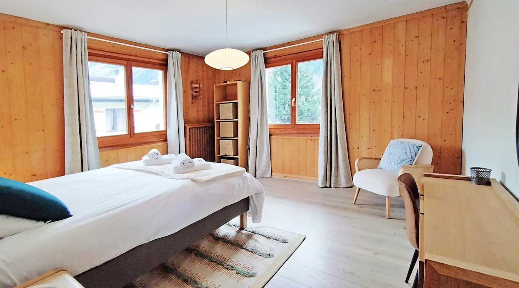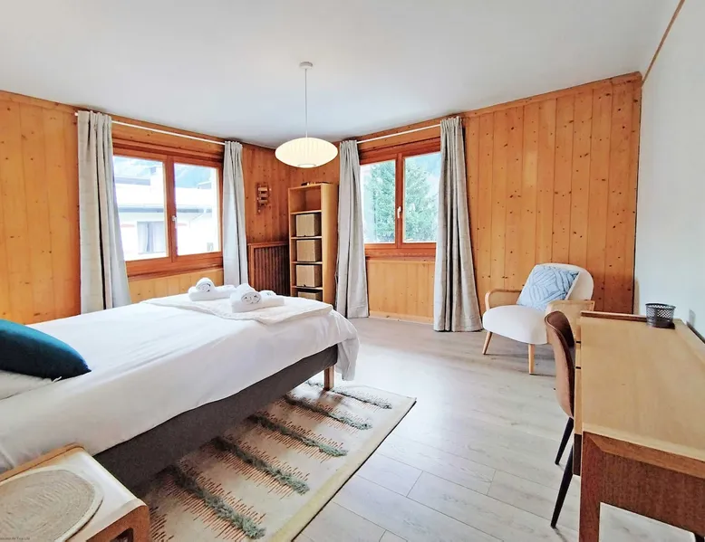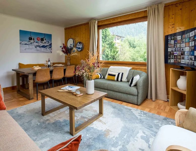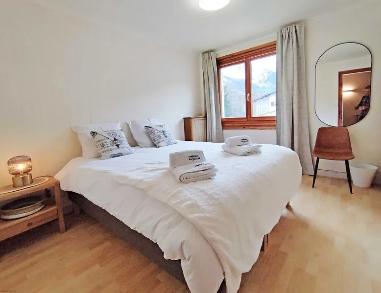 Edelweiss 2 apartment is a beautiful 3 bedroom, 1 bathroom central Chamonix apartment with parking and fiber internet. Edelweiss Apartment 2 is a 3 bedroom 1 bathroom apartment with parking and Wi-Fi. See more info or click 'Book online' for réserver. The space Edelweiss 2 Apartment is a stylishly furnished 3-bedroom, 1-bathroom apartment within the Edelweiss residence in the heart of Chamonix, featuring shared outdoor parking. Positioned along the riverside, this apartment is a stone's throw away from the bustling hub of shops, restaurants, and bars. With two double bedrooms, a third bedroom with bunk beds, and a shared family bathroom, it is a great apartment for families and groups of friends to enjoy the Chamonix valley. Step outside, and you'll find a shared garden providing breathtaking views of Mont Blanc, coupled with access to the open-air parking area. Edelweiss 2 Apartment exudes character through its furnishings, ensuring a delightful stay for up to 6 people. The well-equipped kitchen and spacious lounge enhance the overall comfort of this Chamonix haven. There is a small adjacent studio that allows the apartment to sleep up to 7 people, this is available on request only and for an additional fee. Key Features 88 SQM Sleeps 6-7 On first floor of quiet residence (three other apartments - see below) in the centre of Chamonix One master double bedroom 2nd double bedroom 3rd bedroom with bunk beds Family bathroom Fibre internet Large lounge area Dining table and chairs to seat 6 Well-equipped kitchen Communal garden and patio area Communal outdoor parking 4th bedroom/adjacent studio that is available on request for a additional cost. Sleeping groups of up to 19 people using the other apartments in the residence, Edelweiss 1 and Edelweiss 3 apartments, or booking as a whole - Residence Edelweiss Registration Details 74056002538IE