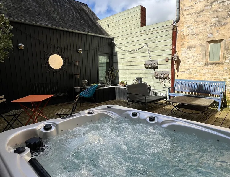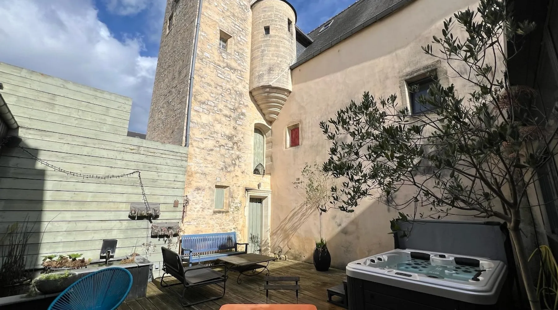 In the living heart of the city of Bayeux, a house with 3 bedrooms and 2 bathrooms, a spa and a garden, fully equipped and "hidden" in the shade of a manor, which amazes with its 16th century turret. The house is rated 4 stars by Atout France. The stones and beams bring charm and perfectly match the loft spirit and premium amenities. Everything is within walking distance (museums, shops) The beaches of Arromanches and Omahah are in the immediate vicinity. The space The master bedroom on the ground floor has a large bathtub and a large walk-in shower on the ground floor upstairs, a shower room serves the 2 additional bedrooms the kitchen has high-tech equipment: an induction cooktop with integrated extraction, a dishwasher, a wine cellar, a convection oven, a microwave and a fridge with freezer. The laundry room has a washing machine and a dryer A parking space reserved for people with reduced mobility is located in front of the door of the house and a large free parking lot with charging station for electric vehicles is just opposite the garden has sun loungers and a barbecue the patio awaits you with its spa Guest access From Paris I recommend taking a train from Paris Gare St Lazare to Caen (2 hours) and renting your car at Caen train station (no car rental at Bayeux train station) 30 minutes to the center of Bayeux. Or take the train directly from Paris to Bayeux (2h15) Other things to note Here are the tours I recommend (my favorites) Regarding D-Day related tours. Around Bayeux I recommend Omaha Beach, the American Cemetery and next door, Combes and the German Cemetery. Pointe du Hoc (Rangers). The German battery of Longues-sur-Mer. The artificial port of Arromanches and its museum. In Bayeux, the English cemetery. Around Bayeux, the Canadian cemetery and Courseulles. If you wish, I can recommend a bilingual tour guide to accompany you "privately" for a day and these sites for example. You can also go to St. Mother Church in the east and to Benouville Bridge in the west, and/or visit the Caen Peace Memorial. Regarding the history of Normandy, visit the Bayeux Tapestry Museum (essential!) and the Caen Castle with the Men's Abbey (very beautiful) and the Women's Abbey. I hope you have a good preparation for your "tour" and I remain at your disposal Laurence Visiting Mont-Saint-Michel is recommended. The site is exceptional and go there on weekdays rather than weekends (visit the abbey at the top). Allow 1.5 hours from the house by car. If you decide to leave for a "big day" and come back late, go see St. Malo (fortified privateer town) and spend the end of the day there. Registration details 1404700037679