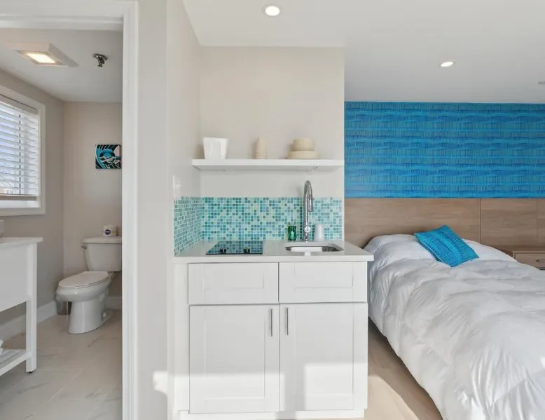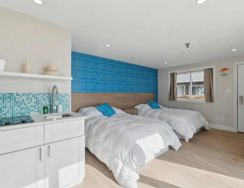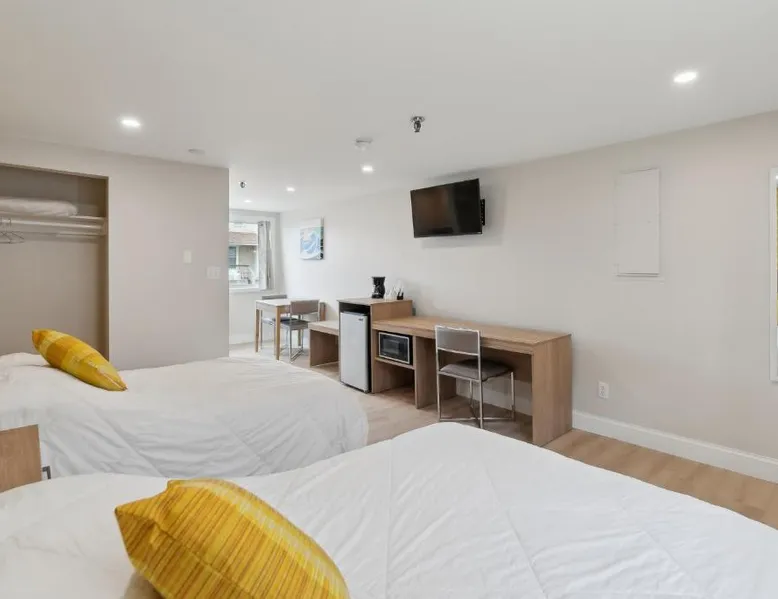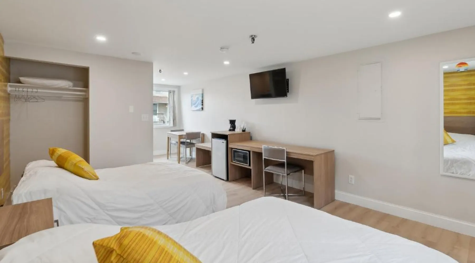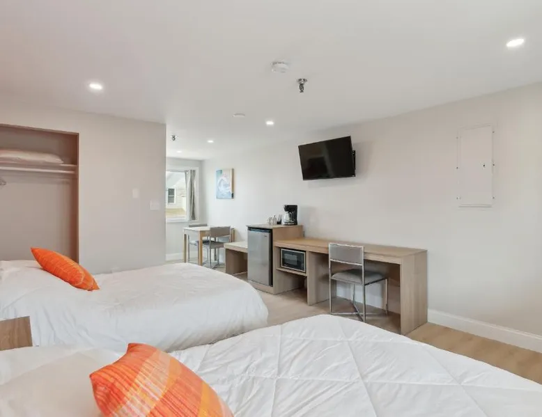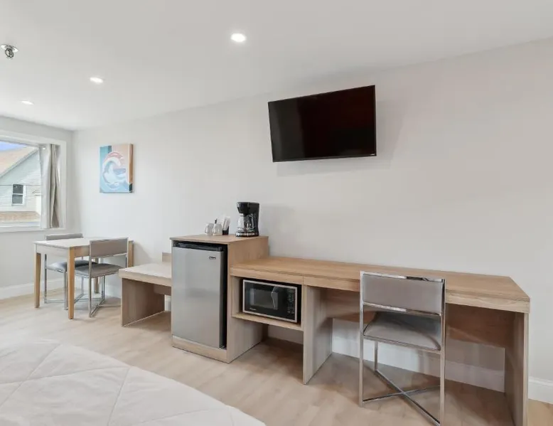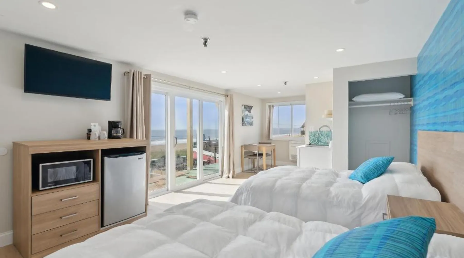 Beachfront Location: The Voyager in Old Orchard Beach offers direct beachfront access and stunning sea views. Guests can relax by the swimming pool with a view or enjoy the outdoor seating area. Comfortable Accommodations: Rooms feature air-conditioning, kitchenettes, private bathrooms, and free WiFi. Additional amenities include balconies, terraces, and patios, ensuring a pleasant stay. Convenient Facilities: The motel provides free on-site private parking, family rooms, and barbecue facilities. Free toiletries, a refrigerator, microwave, and TV enhance the comfort. Nearby Attractions: Located a few steps from Old Orchard Beach and a 0-minute walk to Palace Playland, The Voyager is also close to Old Orchard Beach Pier and Pirate's Cove. Portland International Jetport is 16 mi away. The double room's kitchenette, which features a refrigerator and a microwave, is available for cooking and storing food. The spacious double room provides air conditioning, a tea and coffee maker, a terrace with sea views as well as a private bathroom featuring a shower. The unit offers 2 beds.