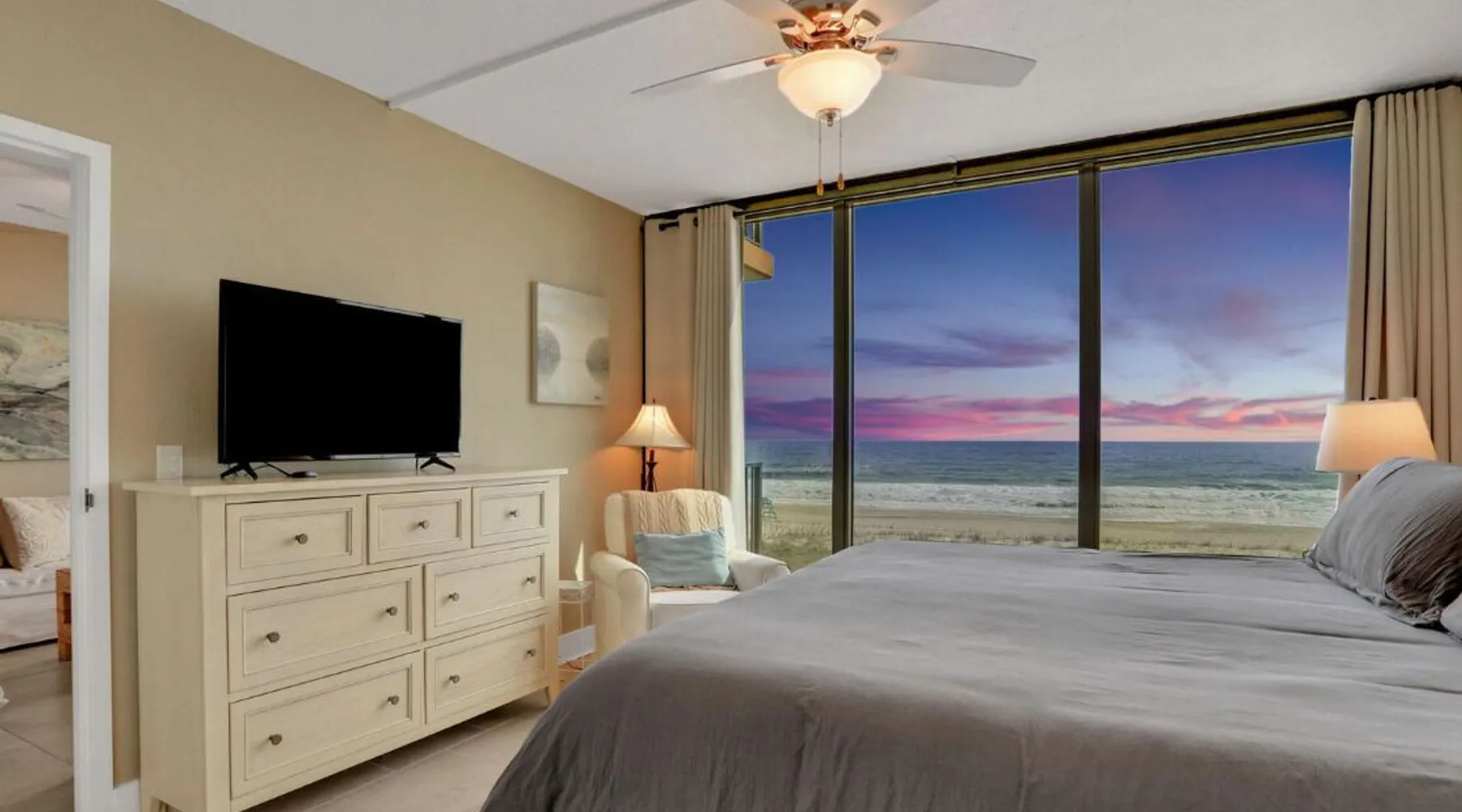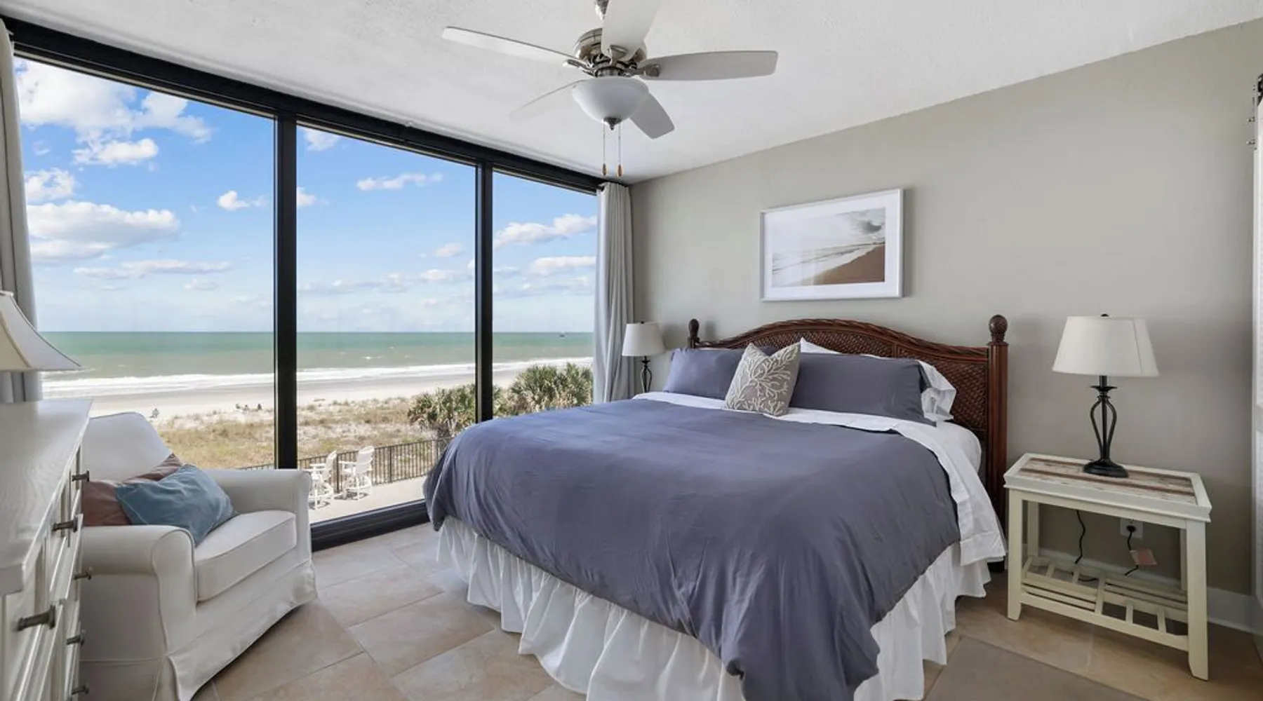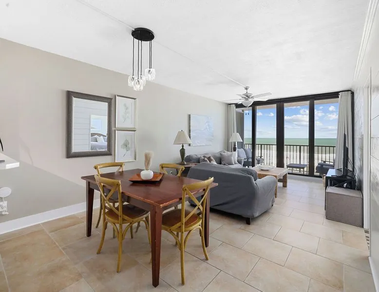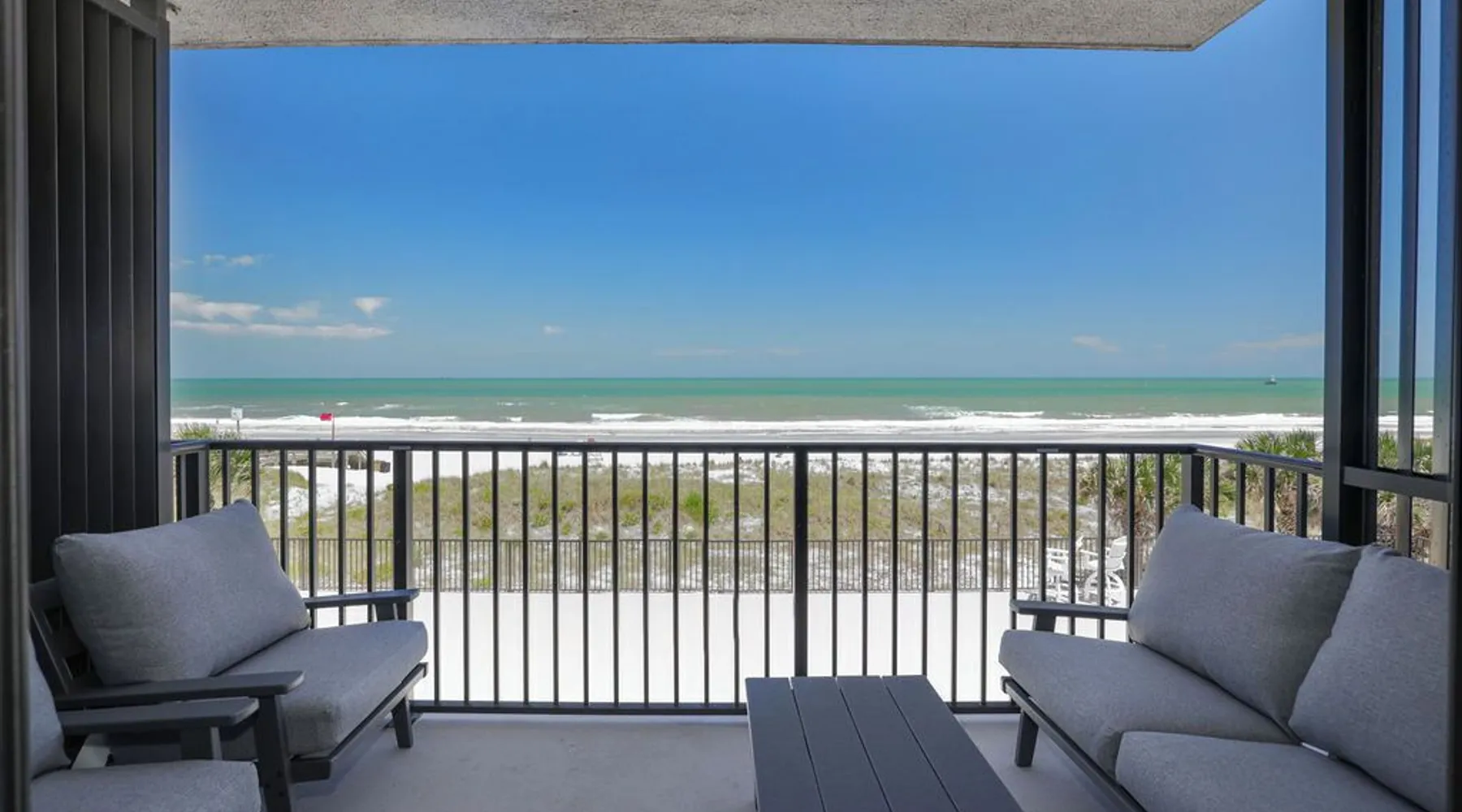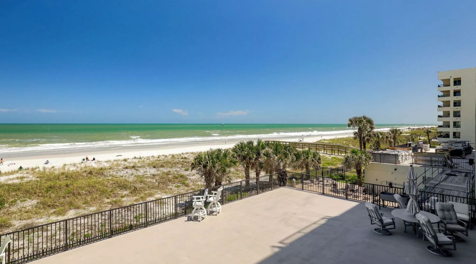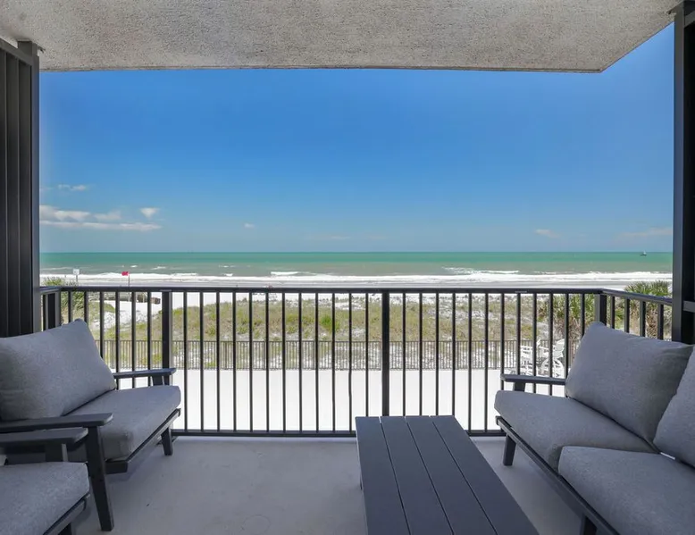 Enjoy stunning ocean views from this 2-bedroom, 2-bathroom condo on the third floor of an oceanfront building in Jax Beach. Wake up to sunrise in the primary bedroom, and savor beach views from the living room, dining area, and kitchen. Relax on the balcony with plush seating. The building features an elevator for your convenience. - 2 bedrooms (1 King, 2 Twins) - 2 full bathrooms - Covered parking space for one vehicle, plus an additional uncovered space - Enjoy the soothing sound of ocean waves from your private beach side balcony - Well-equipped kitchen with cookware, dishes, utensils, and coffee essentials - Condo shower is equipped with supportive handrails for added safety and convenience - Living room TV and bedroom TVs for your streaming accounts - High Speed Internet - Coin-operated washer and dryer on the same floor as condo - Beachfront community pool - Building equipped with two elevators for your convenience - Just steps away from direct beach access for leisurely strolls along the shore - Walk to local attractions, dining, and shopping options - Lease approval subject to HOA (Only single-family use) - No smoking anywhere on the property - No parties or events, quiet hours 10 PM–9 AM per city ordinance - Pets (dogs only) – Only 1 dog less than 20 pounds is allowed. Undisclosed pets = immediate eviction and loss of rent. Pets are not allowed on furniture or bedding. - Primary renter must be 25+ and present for the duration of stay - Check-in 4 PM / Check-out 10 AM - Review the full House Rules section before booking to ensure a smooth and enjoyable stay.