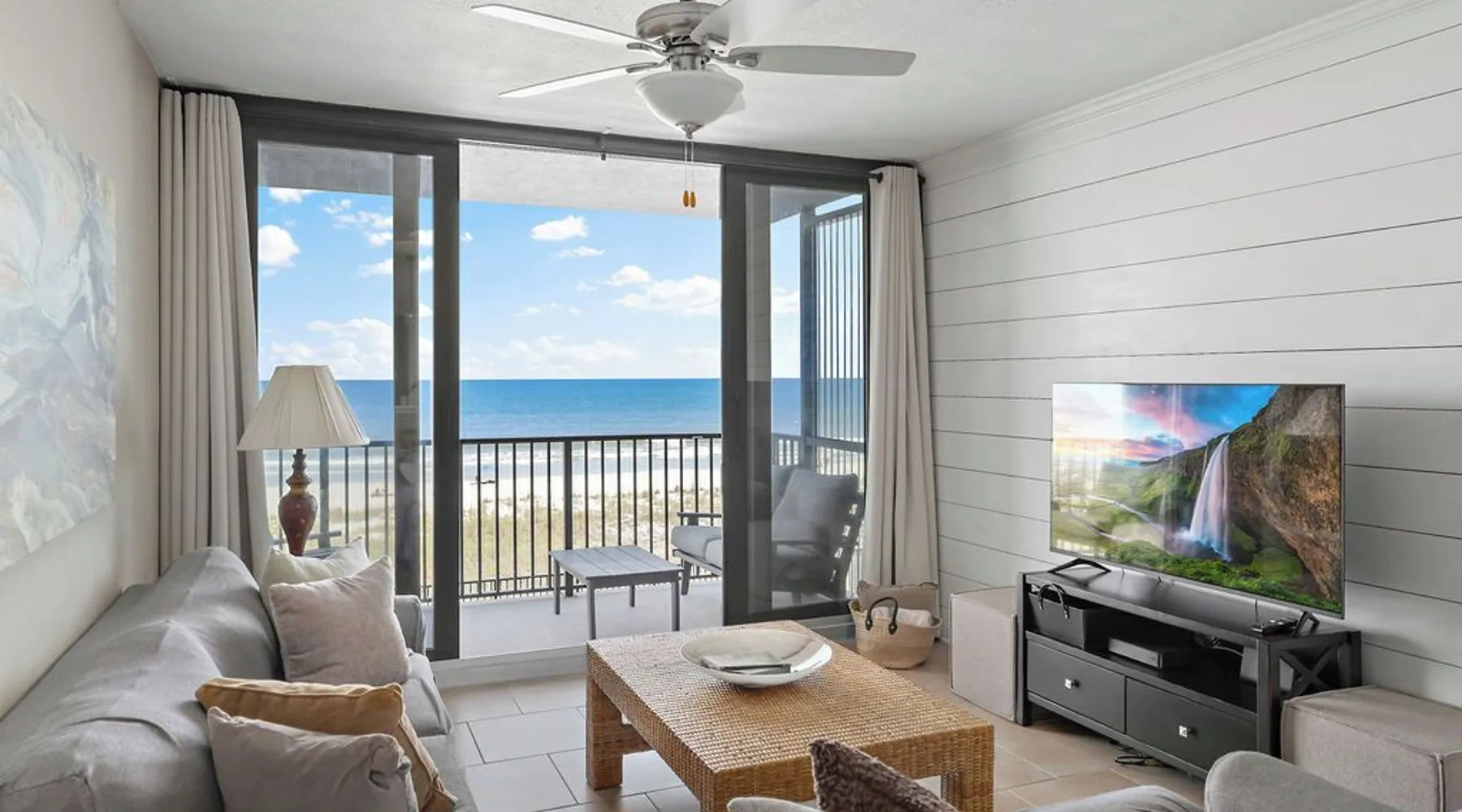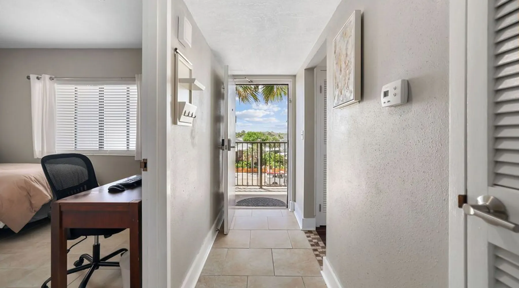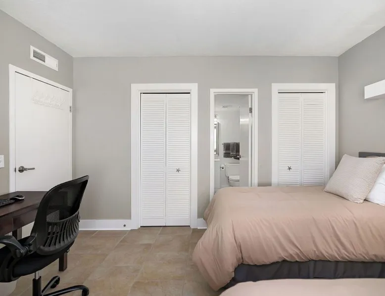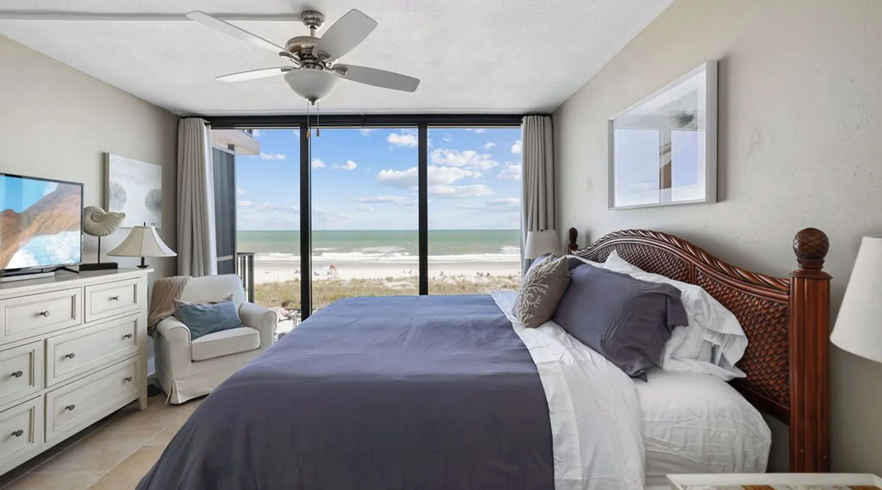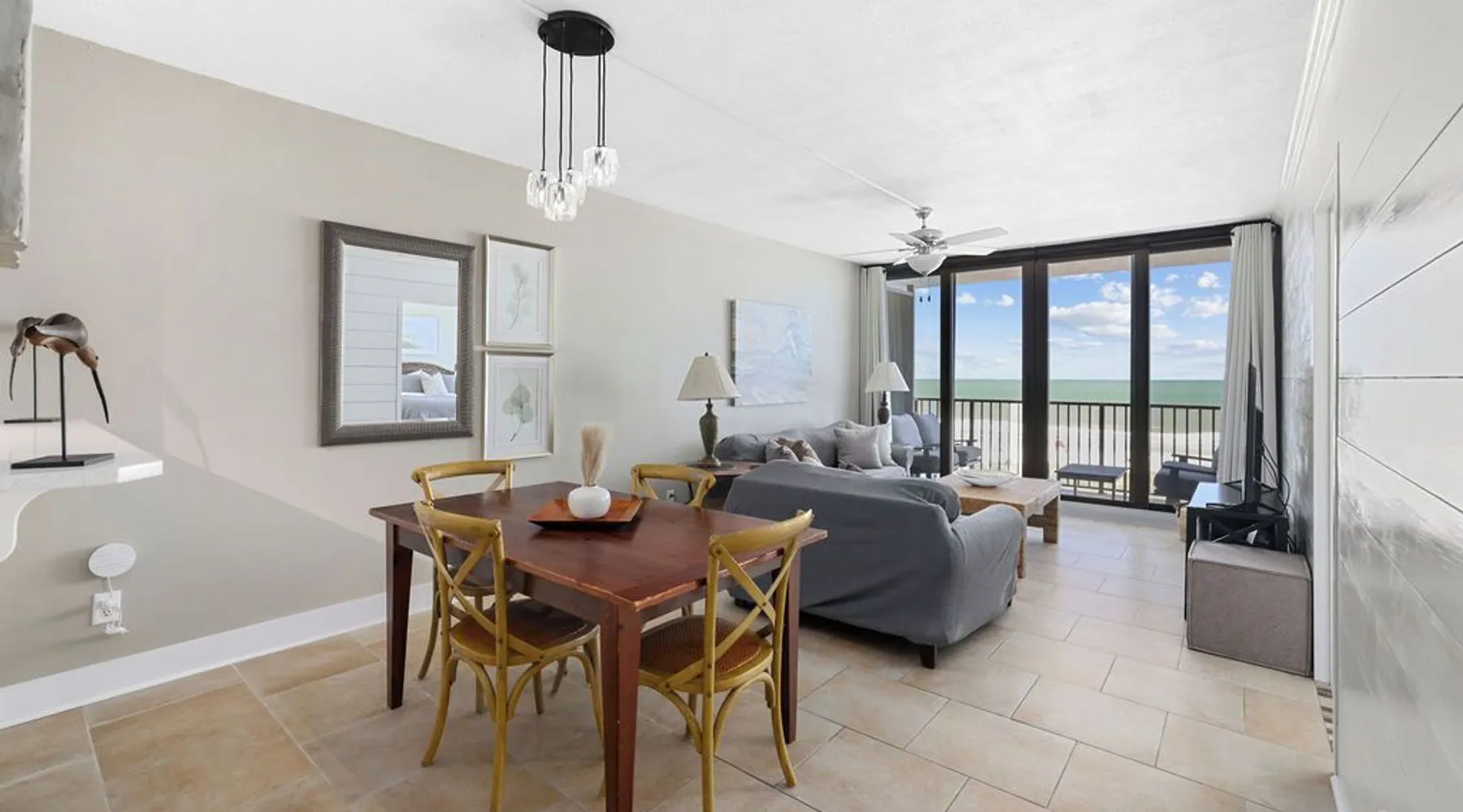 Enjoy stunning ocean views from this 2-bedroom, 2-bathroom condo on the third floor of an oceanfront building in Jax Beach. Wake up to sunrise in the primary bedroom, and savor beach views from the living room, dining area, and kitchen. Relax on the balcony with plush seating. The building features an elevator for your convenience. - 2 bedrooms (1 King, 2 Twins) - 2 full bathrooms - Covered parking space for one vehicle, plus an additional uncovered space - Enjoy the soothing sound of ocean waves from your private beach side balcony - Well-equipped kitchen with cookware, dishes, utensils, and coffee essentials - Condo shower is equipped with supportive handrails for added safety and convenience - Living room TV and bedroom TVs for your streaming accounts - High Speed Internet - Coin-operated washer and dryer on the same floor as condo - Beachfront community pool - Building equipped with two elevators for your convenience - Just steps away from direct beach access for leisurely strolls along the shore - Walk to local attractions, dining, and shopping options - Lease approval subject to HOA (Only single-family use) - No smoking anywhere on the property - No parties or events, quiet hours 10 PM–9 AM per city ordinance - Pets (dogs only) – Only 1 dog less than 20 pounds is allowed. Undisclosed pets = immediate eviction and loss of rent. Pets are not allowed on furniture or bedding. - Primary renter must be 25+ and present for the duration of stay - Check-in 4 PM / Check-out 10 AM - Review the full House Rules section before booking to ensure a smooth and enjoyable stay.