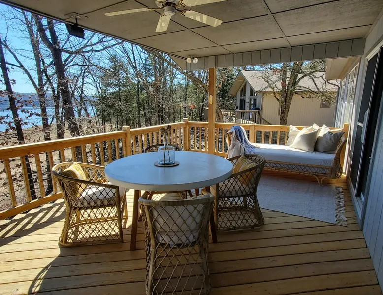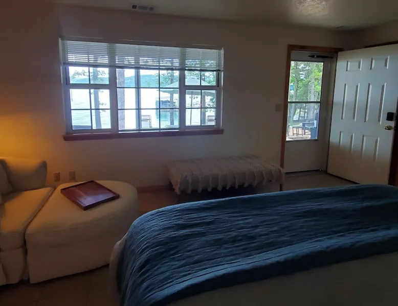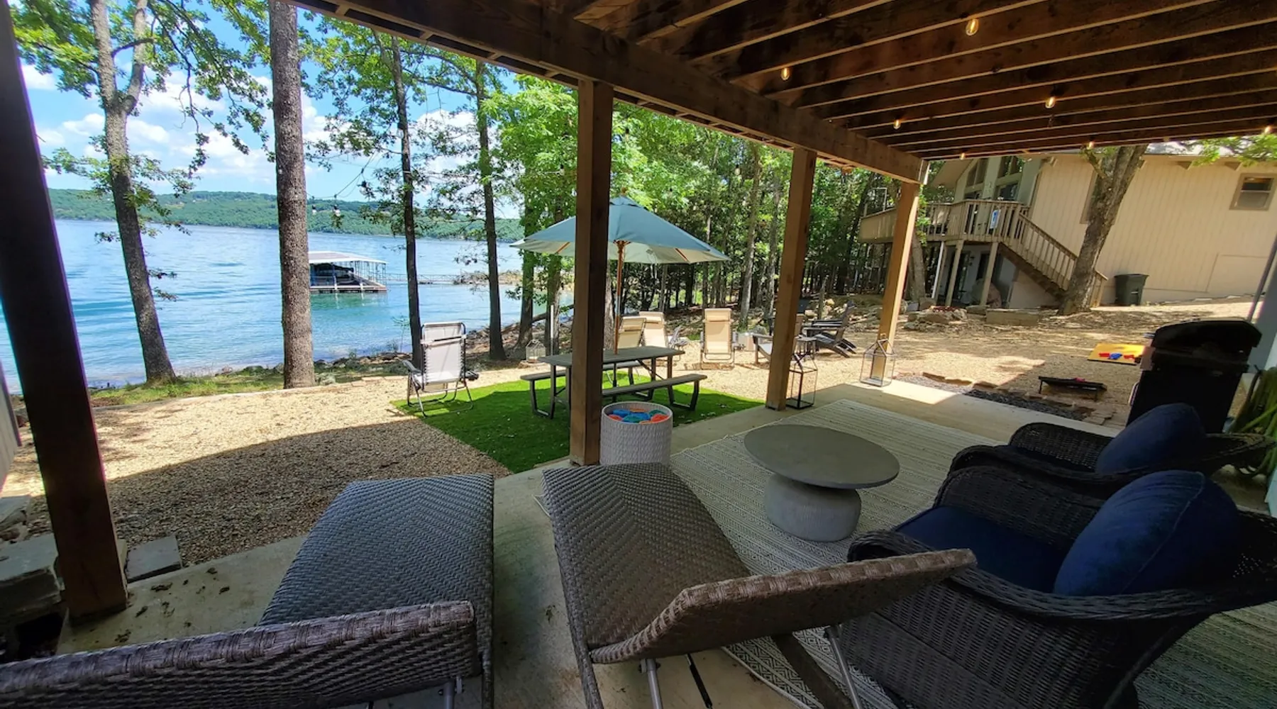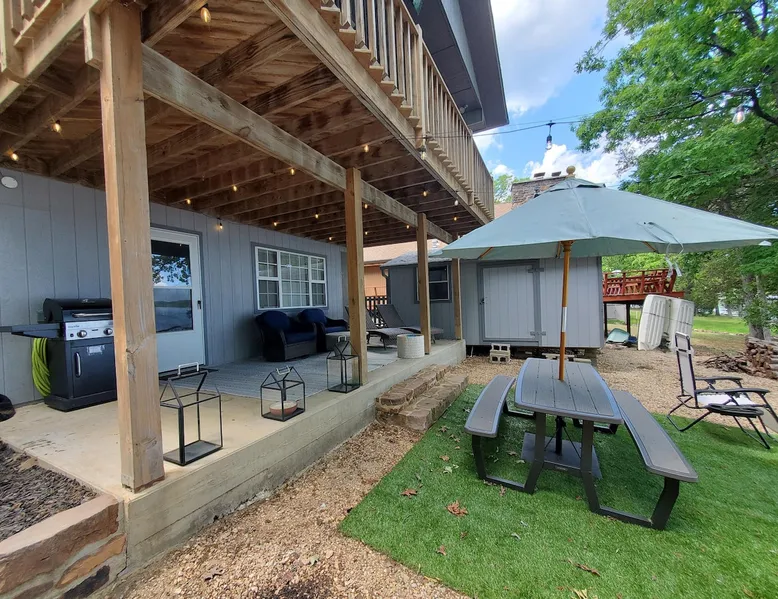 Incredible Lakefront & Lake View House! Flat and Easy Walk to the Water's Edge! 4 Bedrooms/3 Bathrooms; Deck and Covered Patio. The space Ultimate Relaxation: Dive into a world of relaxation and recreation right in your backyard. Whether you prefer swimming, playing by the shore, or casting a line for your next big catch, this home provides the perfect setting for endless enjoyment. Boating Bliss: Bring your boat along for the ultimate aquatic escapade! With the convenience of tying your boat to a tree on the shoreline, you can explore the expansive waters at your leisure. Spacious Living: This two-level haven boasts ample space for all your needs. The main level features 2 bedrooms, 2 baths, a cozy living room, a fully equipped kitchen, and a covered deck offering panoramic views. Downstairs, discover 2 additional bedrooms plus 1 full bath with direct access to the patio and the serene lakeside. Don't miss out on the opportunity to make lasting memories in this idyllic lakeside sanctuary. Your perfect retreat awaits! The Lost Bridge Village Recreation Center has a lakefront Community Swimming Pool open from Memorial Day till Labor Day. There is a charge of $5 per person per day. There is also a free playground for the kids, shuffleboard, basketball court, and a lakefront picnic area with grills. Lost Bridge Village sprawls over several areas around Beaver Lake including Whitney Mountain, which is the highest point over Beaver Lake. No fireworks allowed. The lake community is very quiet and mostly wooded with lots of wildlife and beautiful scenery. Most roads are paved. No hunting is allowed. There are full time and part time residents that appreciate you respecting the covenants and their privacy during your stay. Located minutes from Lost Bridge North Marina. Boat Launches are available at Lost Bridge North Park, Lost Bridge South Park, Off Black Oak Drive in Lost Bridge Village or at the Ventris Boat Launch. There are walking trails at Lost Bridge North Park at 12485 Marina Road in Garfield. Home is located about 30 minutes from (half-way between) Rogers and Eureka Springs. Both places offer an exceptional experience of great food options, entertainment, and shopping. Also, some cell phone service providers do not have cell towers around areas of Beaver Lake. Managed for the Homeowners by Beaver Lake Vacation Rentals, LLC., Garfield, AR. Other things to note Your rental comes with up to $1500 of damage insurance protection: Waivo™ Security Deposit Waiver If You have purchased a Waivo™ Security Deposit Waiver, then the following terms and conditions are now part of Your vacation rental property lease agreement. I. AGREEMENT A. On behalf of Beaver Lake Vacation Rentals, LLC, the party authorized to rent the vacation rental property and the owner of the vacation rental property, Waivo has assumed the responsibility for damages as outlined below and waives Your security deposit up to $1,500, the waiver limit purchased by You, the renter, for your stay at the vacation rental property. B. Waivo is hereby responsible for theft or damage to real or personal property of the vacation rental property as a result of Your acts or omissions. Waivo will pay the lesser of the cost of repairs or the cost to replace the property up to $1,500. This waiver does not negate your responsibilities as a renter for items outside of Waivo’s responsibilities. C. This is not an agreement to provide insurance. You are buying a waiver of the security deposit otherwise due as part of Your vacation rental property lease agreement. II. EXCLUSIONS A. This Security Deposit Waiver will not pay for damages or theft resulting from: 1. Acts of god 2. Prior damage, or normal wear and tear 3. Theft without a valid police report 4. Loss of use of the vacation rental property 5. Rodent, termite, bed bug, infestation, animal, or pet damage 6. Damage to a motorized vehicle 7. Fine art or collectibles B. This Waiver will not pay for damage or theft of property owned by You. C. This Waiver will not pay for costs associated with odor, debris removal, mechanical breakdown. III. CONDITIONS A. Waivo has the sole authority to determine the nature and extent of damages, necessary repairs, and eligibility for the waiver, and shall exercise that authority in a reasonable manner. B. Waivo reserves the right to determine if damage is eligible for reimbursement at actual cash value. C. This Waiver will pay for excessive cleaning, as a direct result of damage, over and above the normal cleaning fee. A stain or spillage is considered damage. D. This Waiver is only effective for a one-time single continuous stay for which You purchased the Waiver. It takes effect when You occupy the vacation rental property and terminates when You depart the same vacation rental property. E. This Waiver is only effective if any theft or damage is reported to Waivo by You, the property manager, the online travel agent or the owner of the vacation rental property within 3 days of Your departure from the vacation rental property. F. Waivo will not respond to damage or theft under $50 US dollars. G. If there is a dispute related to these terms, mediation is required before any party may file litigation. In the event of litigation, all parties waive the right to a jury trial. IV. DEFINITIONS You, or Your, is the renter of the vacation rental property and includes the renter’s spouse, children and any other person the renter invited on to the vacation rental property during your stay at the vacation rental property.