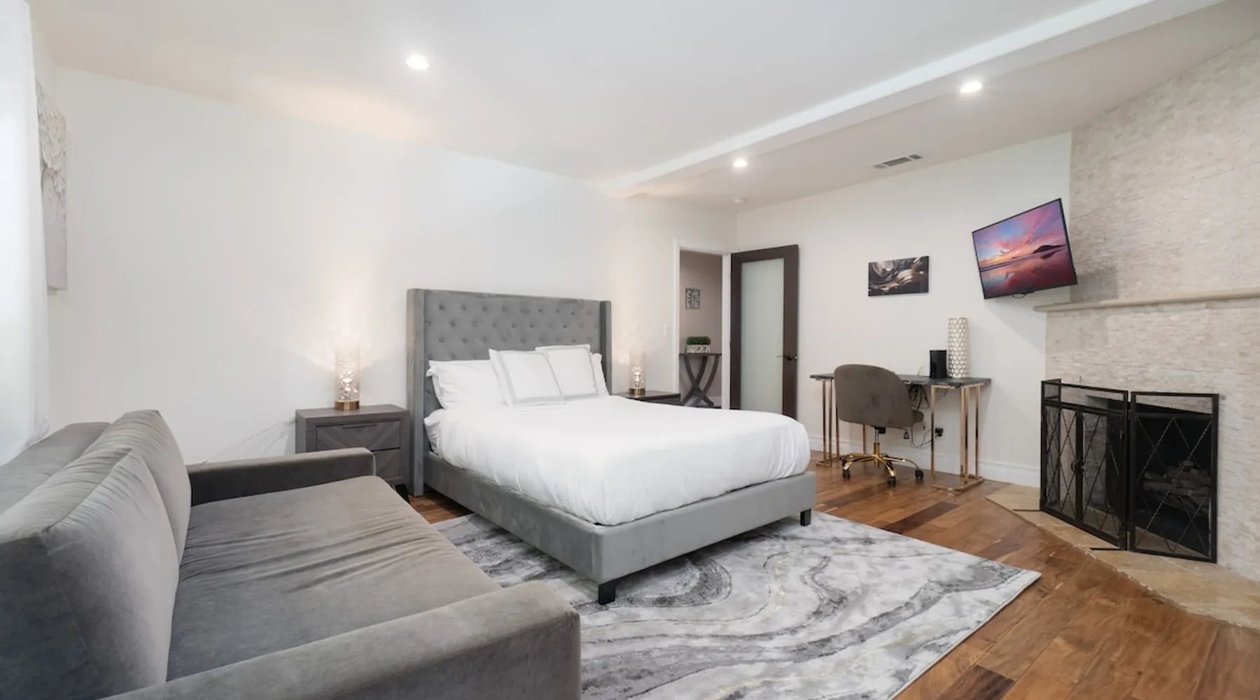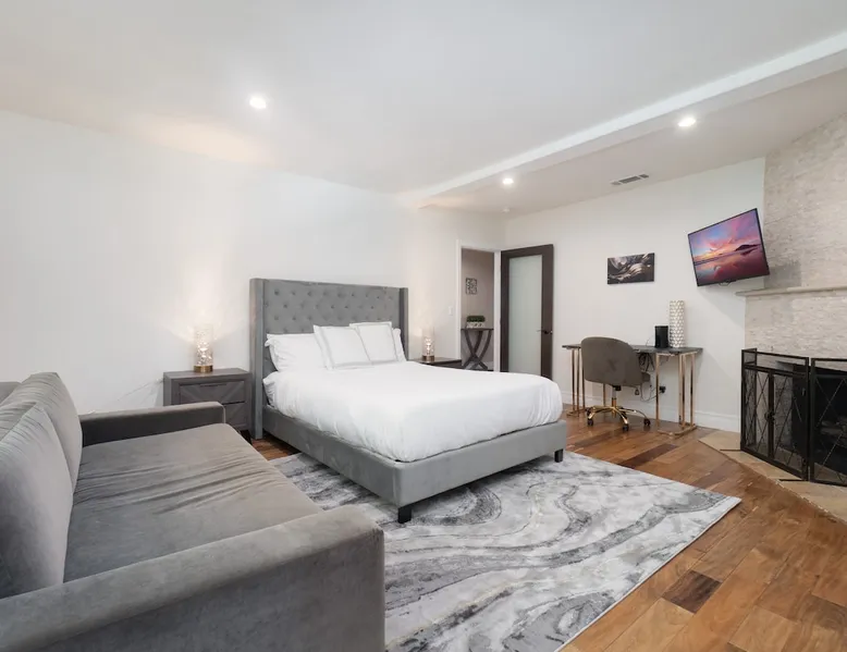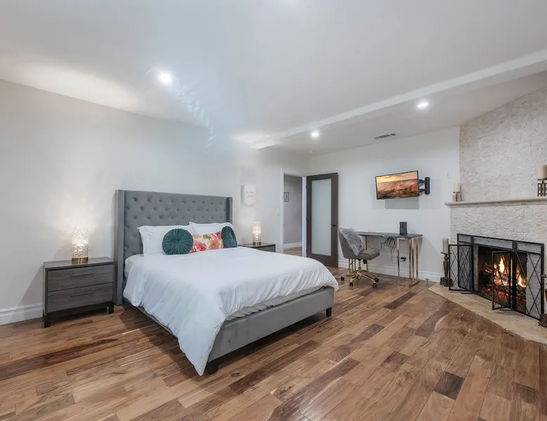 Welcome to your Encino oasis! A guest favorite 🤩. This exquisite home has been meticulously updated throughout, offering a perfect blend of modern luxury and a real grass yard. This fully gated property, has a gourmet kitchen, stunning dining room and a nice large open living concept. Overall, a large comfortable quality home which is more beautiful in person. Gated with long driveway and detached garage. Nice location. The space As you approach the residence, a grand circle drive welcomes you, providing convenient access and adding to the elegant curb appeal. The lush landscaping surrounding the property creates a tranquil atmosphere, inviting you to unwind and relax in style. Step inside to discover a spacious interior featuring three bedrooms and three bathrooms, each thoughtfully designed with your comfort in mind. The living spaces are adorned with luxurious amenities and tasteful decor, seamlessly blending sophistication with warmth. For those seeking entertainment, a billiard table and foosball table awaits, promising hours of friendly competition and enjoyment. A covered patio beckons with its wicker seating arrangement, ideal for al fresco dining or simply unwinding with a good book. One of the property's most delightful features is the orange tree, allowing guests to indulge in freshly picked fruit during their stay. Imagine starting your day with a glass of freshly squeezed orange juice, savoring the flavors of the Mediterranean right in your own backyard. Whether you're seeking a peaceful retreat or a luxurious getaway, this Mediterranean home offers the perfect escape. With its upscale amenities, lush surroundings, and inviting atmosphere, it's a haven where every moment is infused with comfort and elegance. Other things to note For rentals of 30 days or longer, a flat, non-refundable utilities fee is required. This fee is calculated based on the size of the property and seasonal usage, and must be paid upfront. Utilities are $25-49/day on monthly bookings. This home is pet friendly and there is a $250 pet cleaning fee. This fee is per pet. Important Note for Late or Last-Minute Bookings: Thank you for your reservation! Please note that for bookings made after 4 PM or for same-day arrivals, we may not always have time to fully refresh the property before your check-in, depending on the timing of your reservation. If you notice anything that needs attention upon arrival, please don’t hesitate to message us — we’re happy to send someone out the next day to take care of it. Your comfort is our priority, and we’ll do our best to ensure you have a great stay. Registration Details HSR24-000184