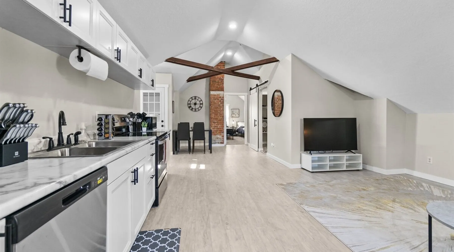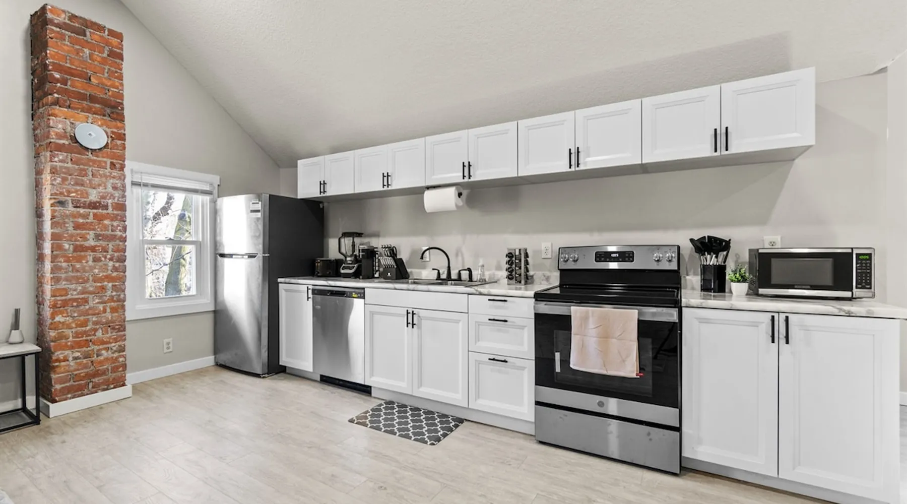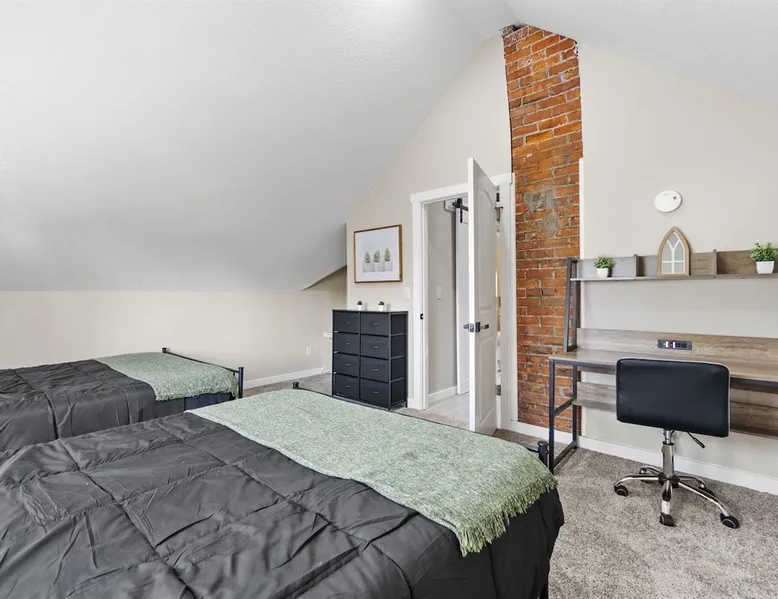 📍 Prime Location: Nestled right in the heart of downtown, just a stone's throw away from the vibrant energy of all the downtown attractions! 🏡 Charming Space: Seamlessly blends rustic charm with modern comfort, with cool wooden beam and brick accents that exude character throughout. 🚗 Parking: There is free street parking available for you here so you don't have to pay anywhere else downtown! 💼 Desk: If work follows wherever you go, you'll have a desk to get down to business here! The space Stay in the upper unit of this charming duplex, complete with all the essentials you need, from kitchen supplies to spices. We’ve created a space that feels like your home away from home, ensuring a comfortable and enjoyable stay. Guest access Easy, Convenient Check-In with 24/7 Access to Your Private Space Booking is simple! Upon confirming your reservation, you'll sign a rental agreement & upload your photo ID. Once that's done, you'll receive a unique entry code for the property's keypad, so you can access your space without the hassle of keys or coordinating check-in times. Enjoy the flexibility of 24/7 access to your private home, ensuring convenience and freedom during your stay.