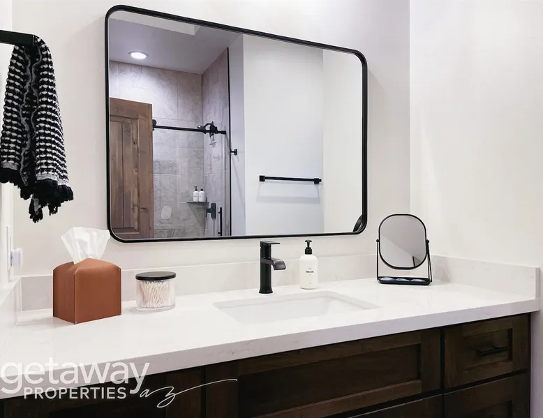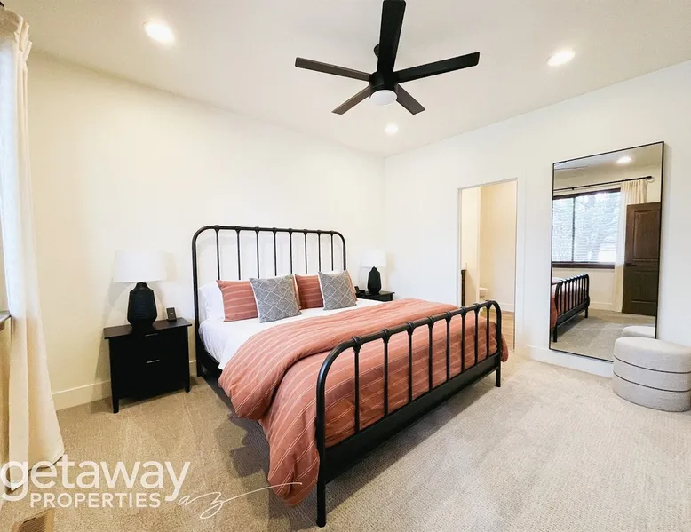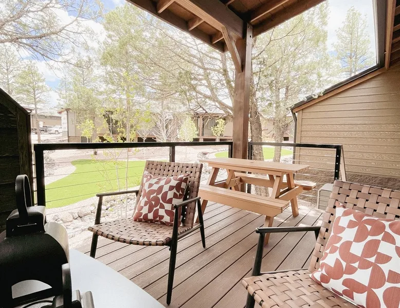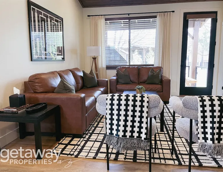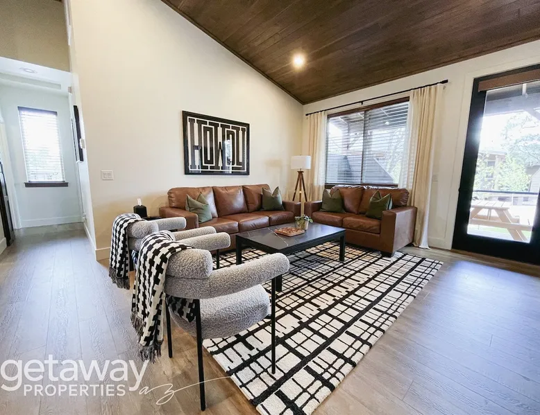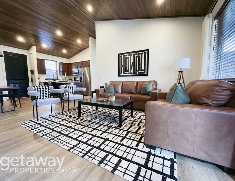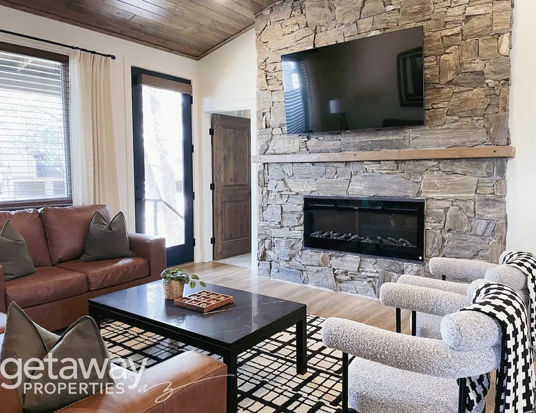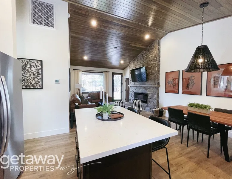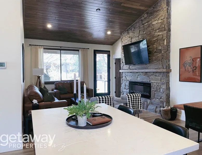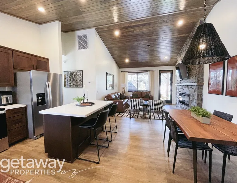 Relax by the fireplace or grill on the patio—your mountain getaway awaits. Escape to this stylish Show Low retreat surrounded by Arizona’s White Mountain beauty! This 2-bed, 2-bath single-level home combines modern design with cozy mountain charm—featuring a stone fireplace, fully equipped kitchen, and private deck with BBQ. Just minutes from Bison Golf Club, hiking trails, and serene lakes, it’s the perfect getaway for couples or families seeking comfort and adventure. The space ☆☆ BEDROOMS ☆☆ This peaceful retreat offers two inviting bedrooms designed for comfort and rest. • Primary Suite – King bed with plush bedding, ensuite bathroom, and soft natural light. A quiet retreat after a day on the trails or exploring town. • Bedroom 2 – Queen bed with cozy linens and easy access to the hallway bathroom. Perfect for kids, friends, or another couple. ☆☆ BATHROOMS ☆☆ Two modern bathrooms ensure privacy and ease. The primary ensuite offers a spacious walk-in shower, while the hallway bath includes a full tub—ideal for families. Both are stocked with shampoo, conditioner, body wash, and fresh towels for a hotel-quality stay. ☆☆ KITCHEN & RELAXING AREAS ☆☆ The open-concept kitchen features stainless steel appliances, farmhouse sink, and everything you need for home-cooked meals. Enjoy coffee at the breakfast bar or gather for dinner around the dining table. In the living area, unwind by the stunning stone fireplace, stream your favorite shows, or play board games together—every detail invites relaxation. ☆☆ OUTSIDE SPACE ☆☆ Step outside to your private covered patio and breathe in the crisp mountain air. Grill dinner on the BBQ, dine al fresco at the picnic table, or simply lounge in the outdoor chairs with a drink in hand. The peaceful setting and easy on-site parking make it effortless to unwind after a day of exploring Show Low’s scenic trails and lakes. Other things to note ☀ Sleeps 4 comfortably in 2 bedrooms, 2 bathrooms ☀ Private covered patio with outdoor dining + BBQ grill ☀ Cozy stone fireplace + Smart TV in living area ☀ Fully equipped kitchen with stainless appliances ☀ Kid-friendly with Pack ’n Play & high chair ☀ Fast Wi-Fi + designated parking space ☀ Close to Bison Golf Club, Fool Hollow Lake & Show Low hiking trails ★☆ Book Today & Let Us Take Care Of You ☆★ Whether you’re teeing off at Bison Golf Club, hiking through White Mountain forests, or simply enjoying a cozy night by the fire, this Show Low getaway offers the perfect blend of relaxation, adventure, and style. This property has special local compliance requirements which include a signed rental agreement, ID verification, and a security hold of $1000 (which is not a traditional security deposit, just a pending transaction). As an optional alternative to the security hold, you may opt in to purchase a non-refundable damage waiver provided by a third-party insurance company. The optional damage waiver is $57 for stays up to 10 nights, with an additional $6 per day for stays longer than 10 nights. Damage waiver purchases are optional. To make this process easy for you, we use a secure and very simple, app-free platform called Happy Guest. It is not an app, and you do not have to sign up for an account - it’s a safe and secure website. It also gives you a guest portal with all the info about the home and all of my favorite local spots. Your guest portal includes advertisements with third-party upgrades that you may want to enhance your stay. These upgrades are optional and include: Late checkout - $40 per hour If you have any questions, just message us anytime! Happy to help!