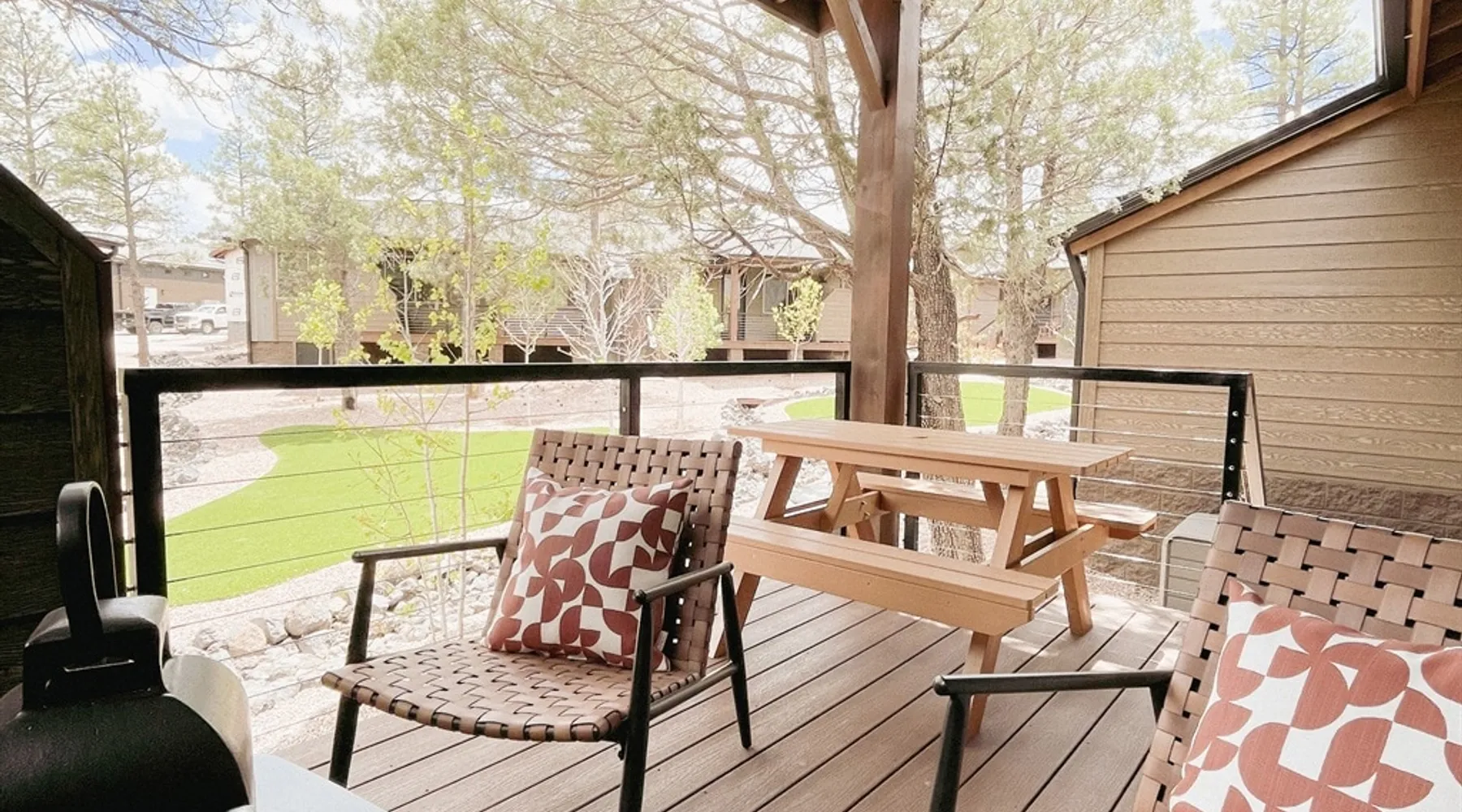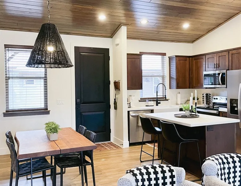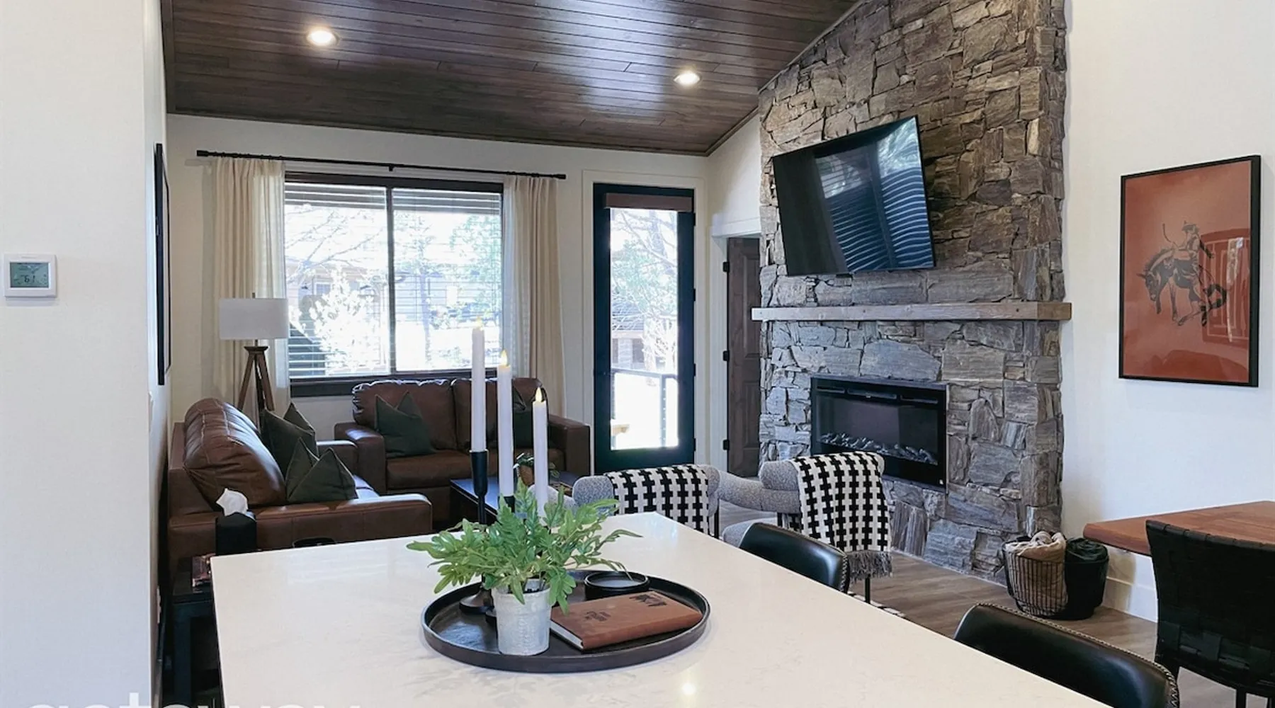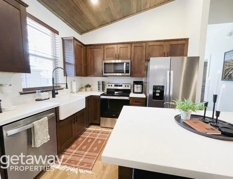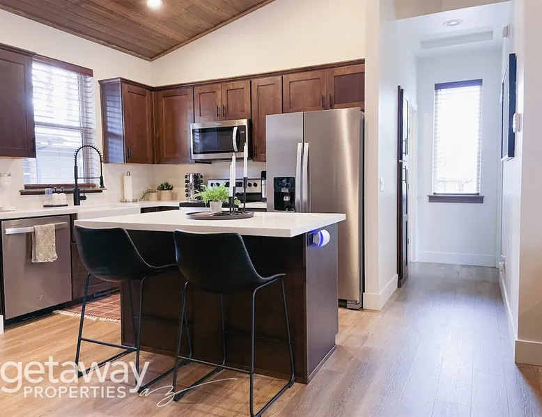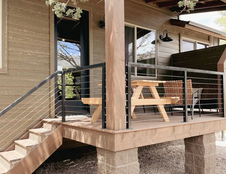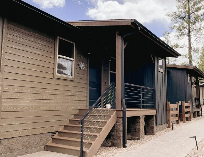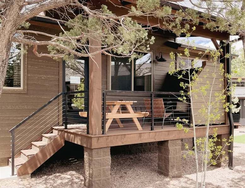 Relax by the fireplace or grill on the patio—your mountain getaway awaits. Escape to this stylish Show Low retreat surrounded by Arizona’s White Mountain beauty! This 2-bed, 2-bath single-level home combines modern design with cozy mountain charm—featuring a stone fireplace, fully equipped kitchen, and private deck with BBQ. Just minutes from Bison Golf Club, hiking trails, and serene lakes, it’s the perfect getaway for couples or families seeking comfort and adventure. The space ☆☆ BEDROOMS ☆☆ This peaceful retreat offers two inviting bedrooms designed for comfort and rest. • Primary Suite – King bed with plush bedding, ensuite bathroom, and soft natural light. A quiet retreat after a day on the trails or exploring town. • Bedroom 2 – Queen bed with cozy linens and easy access to the hallway bathroom. Perfect for kids, friends, or another couple. ☆☆ BATHROOMS ☆☆ Two modern bathrooms ensure privacy and ease. The primary ensuite offers a spacious walk-in shower, while the hallway bath includes a full tub—ideal for families. Both are stocked with shampoo, conditioner, body wash, and fresh towels for a hotel-quality stay. ☆☆ KITCHEN & RELAXING AREAS ☆☆ The open-concept kitchen features stainless steel appliances, farmhouse sink, and everything you need for home-cooked meals. Enjoy coffee at the breakfast bar or gather for dinner around the dining table. In the living area, unwind by the stunning stone fireplace, stream your favorite shows, or play board games together—every detail invites relaxation. ☆☆ OUTSIDE SPACE ☆☆ Step outside to your private covered patio and breathe in the crisp mountain air. Grill dinner on the BBQ, dine al fresco at the picnic table, or simply lounge in the outdoor chairs with a drink in hand. The peaceful setting and easy on-site parking make it effortless to unwind after a day of exploring Show Low’s scenic trails and lakes. Other things to note ☀ Sleeps 4 comfortably in 2 bedrooms, 2 bathrooms ☀ Private covered patio with outdoor dining + BBQ grill ☀ Cozy stone fireplace + Smart TV in living area ☀ Fully equipped kitchen with stainless appliances ☀ Kid-friendly with Pack ’n Play & high chair ☀ Fast Wi-Fi + designated parking space ☀ Close to Bison Golf Club, Fool Hollow Lake & Show Low hiking trails ★☆ Book Today & Let Us Take Care Of You ☆★ Whether you’re teeing off at Bison Golf Club, hiking through White Mountain forests, or simply enjoying a cozy night by the fire, this Show Low getaway offers the perfect blend of relaxation, adventure, and style. This property has special local compliance requirements which include a signed rental agreement, ID verification, and a security hold of $1000 (which is not a traditional security deposit, just a pending transaction). As an optional alternative to the security hold, you may opt in to purchase a non-refundable damage waiver provided by a third-party insurance company. The optional damage waiver is $57 for stays up to 10 nights, with an additional $6 per day for stays longer than 10 nights. Damage waiver purchases are optional. To make this process easy for you, we use a secure and very simple, app-free platform called Happy Guest. It is not an app, and you do not have to sign up for an account - it’s a safe and secure website. It also gives you a guest portal with all the info about the home and all of my favorite local spots. Your guest portal includes advertisements with third-party upgrades that you may want to enhance your stay. These upgrades are optional and include: Late checkout - $40 per hour If you have any questions, just message us anytime! Happy to help!