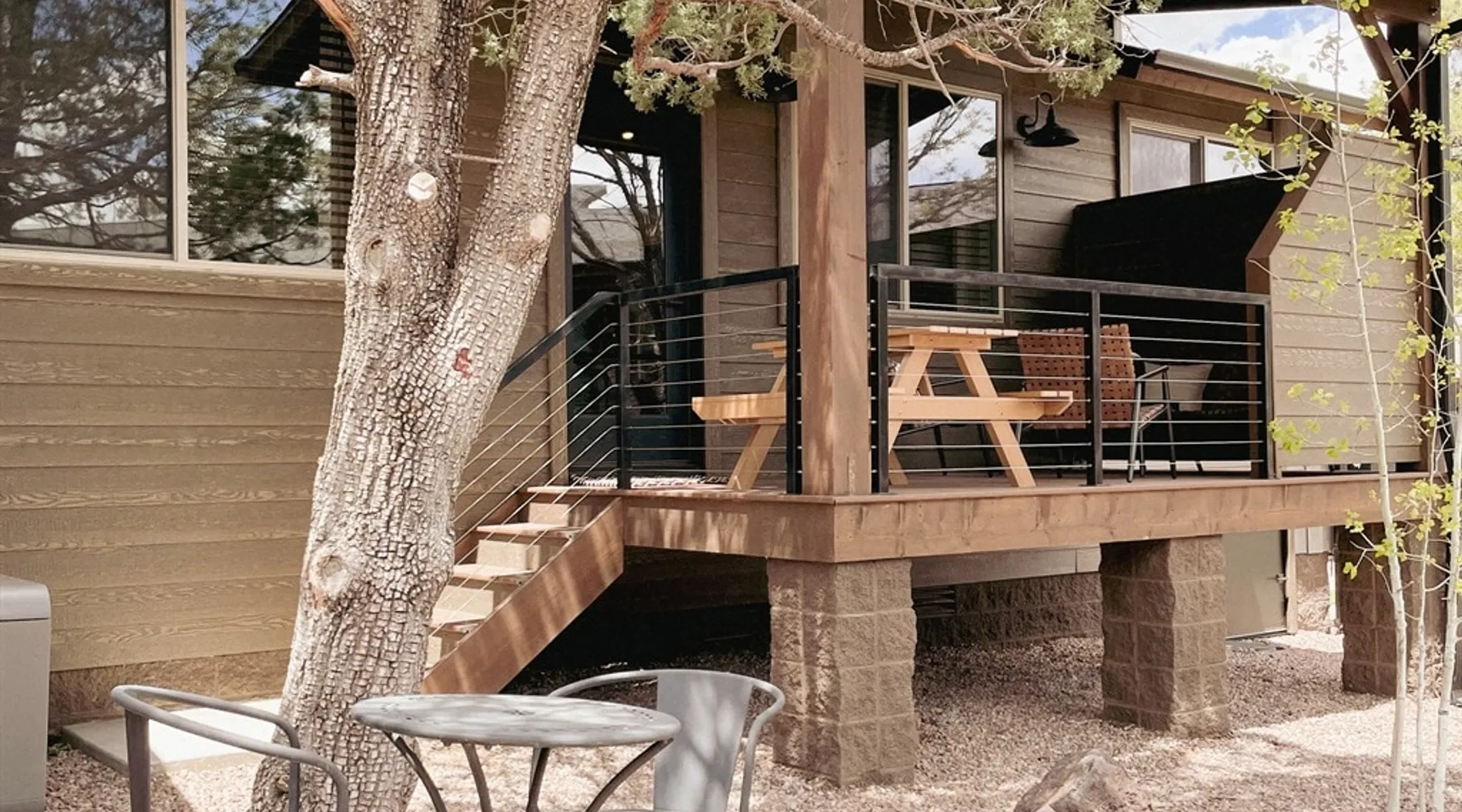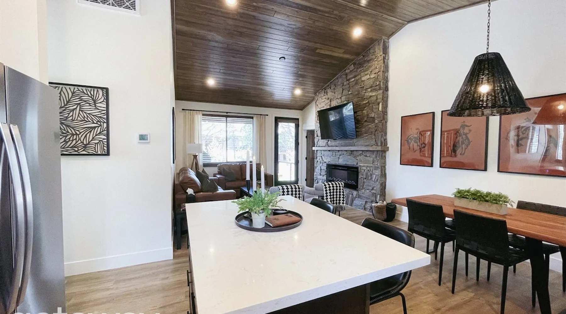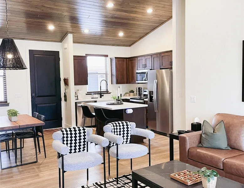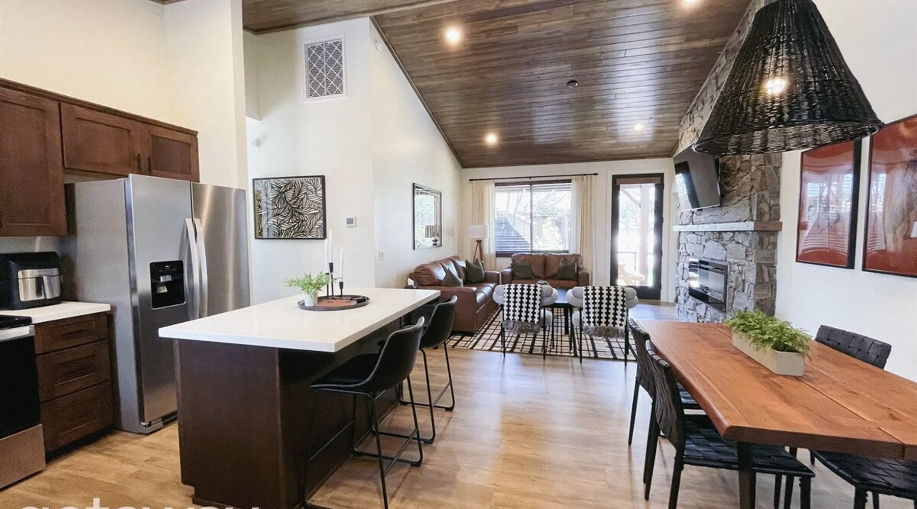 Relax by the fireplace or grill on the patio—your mountain getaway awaits. Escape to this stylish Show Low retreat surrounded by Arizona’s White Mountain beauty! This 2-bed, 2-bath single-level home combines modern design with cozy mountain charm—featuring a stone fireplace, fully equipped kitchen, and private deck with BBQ. Just minutes from Bison Golf Club, hiking trails, and serene lakes, it’s the perfect getaway for couples or families seeking comfort and adventure. The space ☆☆ BEDROOMS ☆☆ This peaceful retreat offers two inviting bedrooms designed for comfort and rest. • Primary Suite – King bed with plush bedding, ensuite bathroom, and soft natural light. A quiet retreat after a day on the trails or exploring town. • Bedroom 2 – Queen bed with cozy linens and easy access to the hallway bathroom. Perfect for kids, friends, or another couple. ☆☆ BATHROOMS ☆☆ Two modern bathrooms ensure privacy and ease. The primary ensuite offers a spacious walk-in shower, while the hallway bath includes a full tub—ideal for families. Both are stocked with shampoo, conditioner, body wash, and fresh towels for a hotel-quality stay. ☆☆ KITCHEN & RELAXING AREAS ☆☆ The open-concept kitchen features stainless steel appliances, farmhouse sink, and everything you need for home-cooked meals. Enjoy coffee at the breakfast bar or gather for dinner around the dining table. In the living area, unwind by the stunning stone fireplace, stream your favorite shows, or play board games together—every detail invites relaxation. ☆☆ OUTSIDE SPACE ☆☆ Step outside to your private covered patio and breathe in the crisp mountain air. Grill dinner on the BBQ, dine al fresco at the picnic table, or simply lounge in the outdoor chairs with a drink in hand. The peaceful setting and easy on-site parking make it effortless to unwind after a day of exploring Show Low’s scenic trails and lakes. Other things to note ☀ Sleeps 4 comfortably in 2 bedrooms, 2 bathrooms ☀ Private covered patio with outdoor dining + BBQ grill ☀ Cozy stone fireplace + Smart TV in living area ☀ Fully equipped kitchen with stainless appliances ☀ Kid-friendly with Pack ’n Play & high chair ☀ Fast Wi-Fi + designated parking space ☀ Close to Bison Golf Club, Fool Hollow Lake & Show Low hiking trails ★☆ Book Today & Let Us Take Care Of You ☆★ Whether you’re teeing off at Bison Golf Club, hiking through White Mountain forests, or simply enjoying a cozy night by the fire, this Show Low getaway offers the perfect blend of relaxation, adventure, and style. This property has special local compliance requirements which include a signed rental agreement, ID verification, and a security hold of $1000 (which is not a traditional security deposit, just a pending transaction). As an optional alternative to the security hold, you may opt in to purchase a non-refundable damage waiver provided by a third-party insurance company. The optional damage waiver is $57 for stays up to 10 nights, with an additional $6 per day for stays longer than 10 nights. Damage waiver purchases are optional. To make this process easy for you, we use a secure and very simple, app-free platform called Happy Guest. It is not an app, and you do not have to sign up for an account - it’s a safe and secure website. It also gives you a guest portal with all the info about the home and all of my favorite local spots. Your guest portal includes advertisements with third-party upgrades that you may want to enhance your stay. These upgrades are optional and include: Late checkout - $40 per hour If you have any questions, just message us anytime! Happy to help!