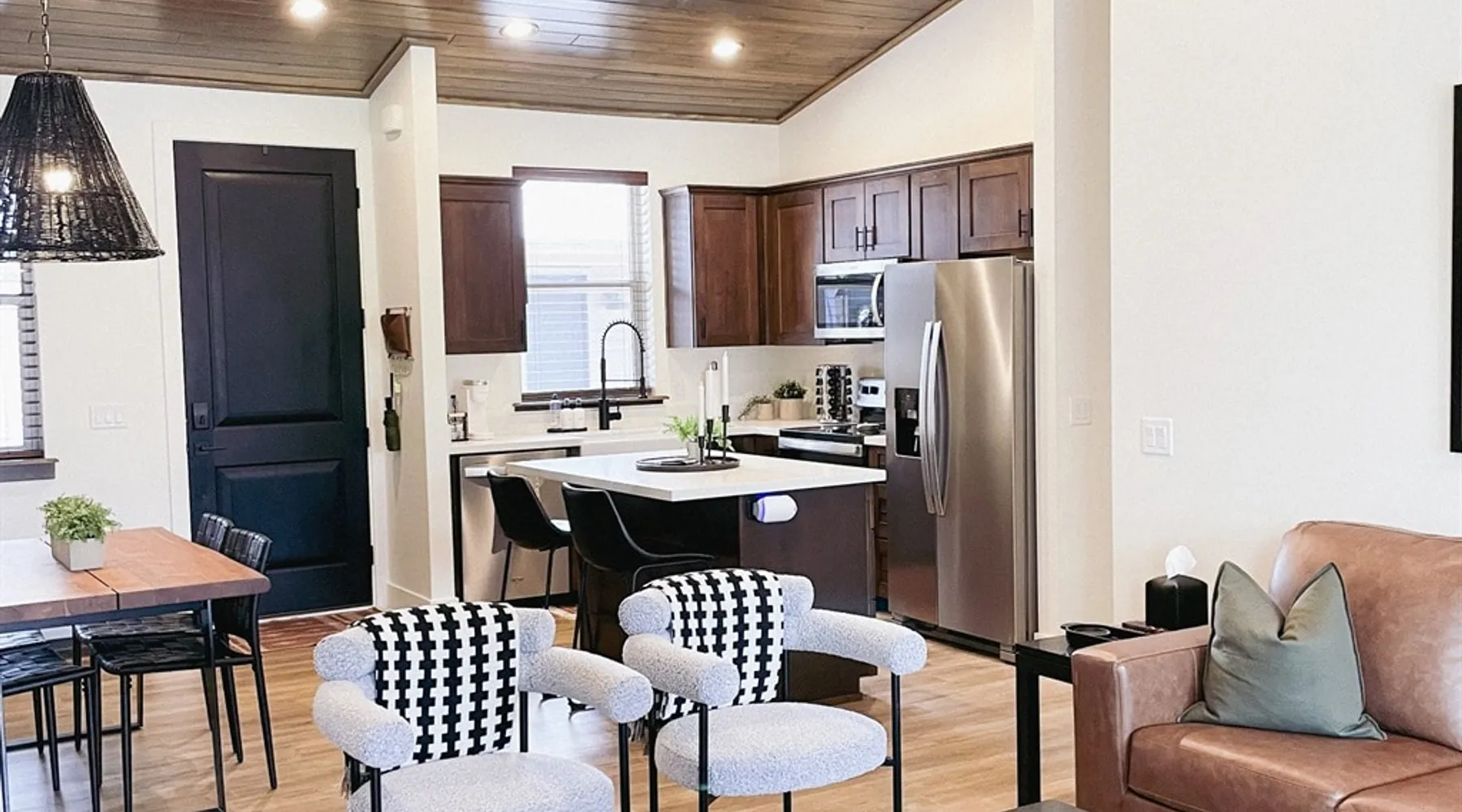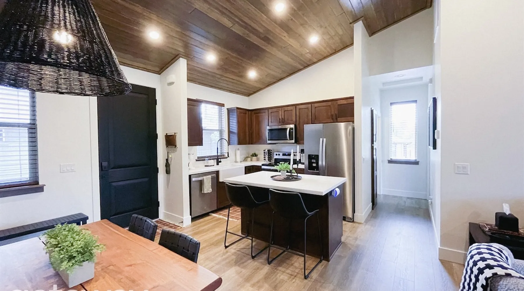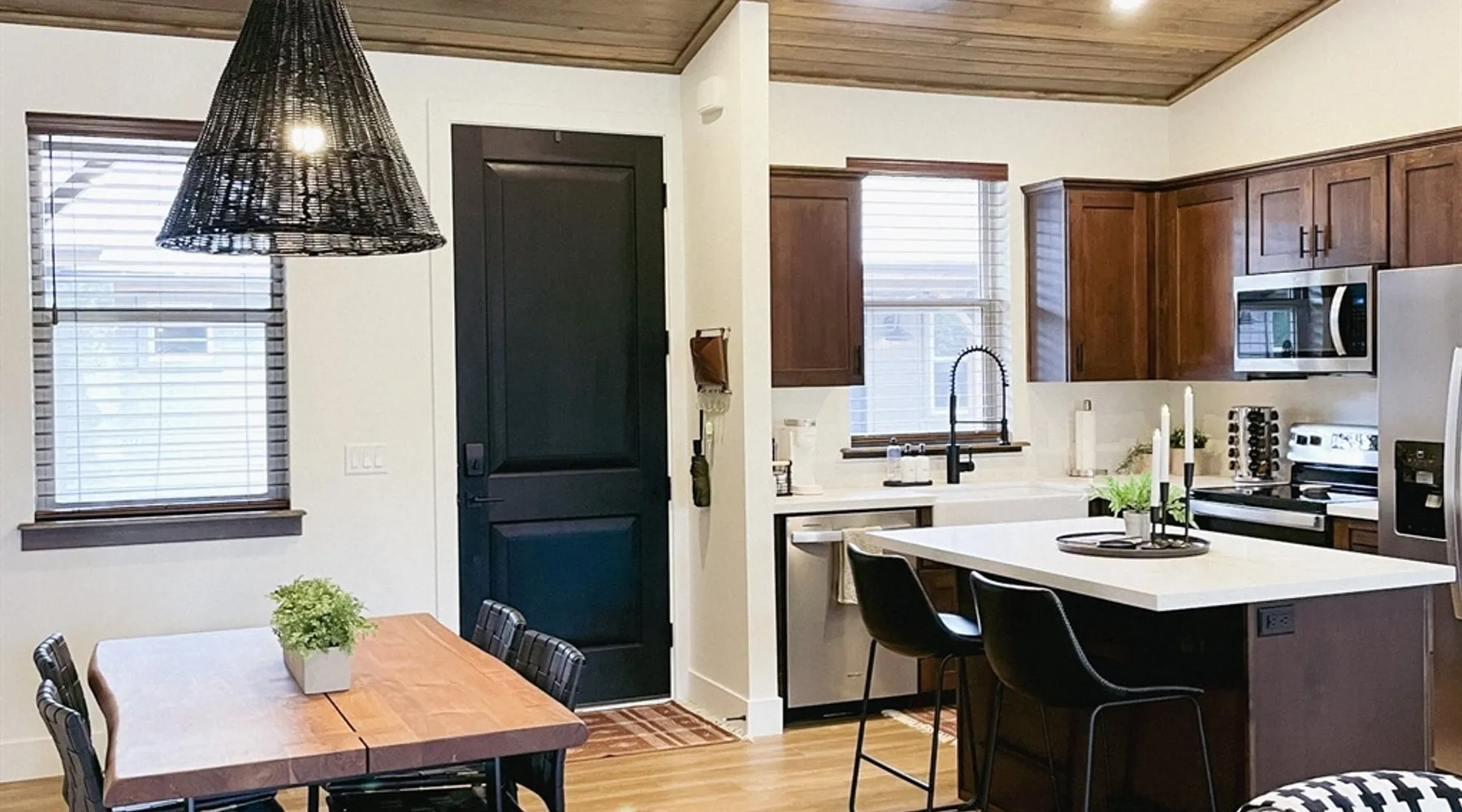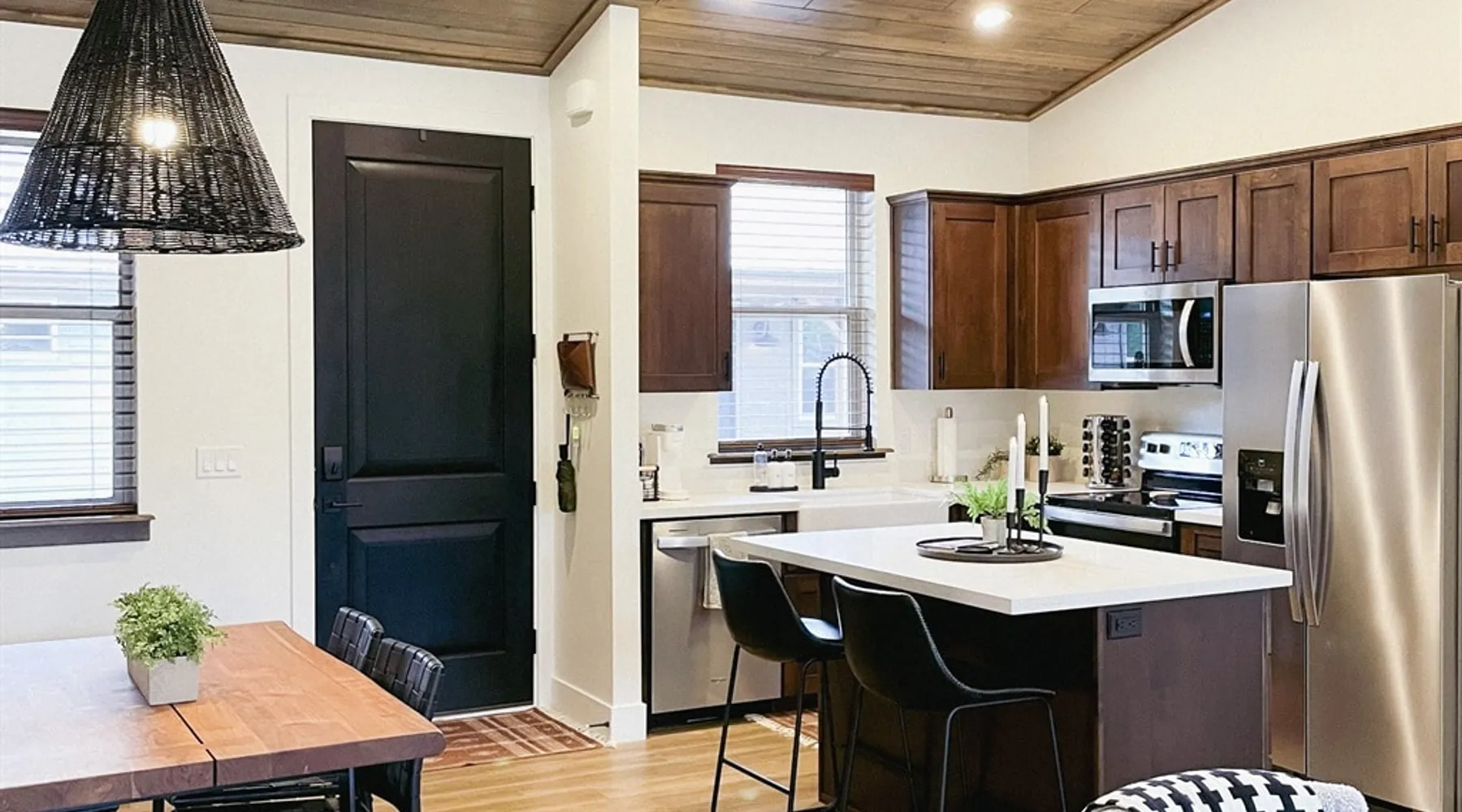 Relax by the fireplace or grill on the patio—your mountain getaway awaits. Escape to this stylish Show Low retreat surrounded by Arizona’s White Mountain beauty! This 2-bed, 2-bath single-level home combines modern design with cozy mountain charm—featuring a stone fireplace, fully equipped kitchen, and private deck with BBQ. Just minutes from Bison Golf Club, hiking trails, and serene lakes, it’s the perfect getaway for couples or families seeking comfort and adventure. The space ☆☆ BEDROOMS ☆☆ This peaceful retreat offers two inviting bedrooms designed for comfort and rest. • Primary Suite – King bed with plush bedding, ensuite bathroom, and soft natural light. A quiet retreat after a day on the trails or exploring town. • Bedroom 2 – Queen bed with cozy linens and easy access to the hallway bathroom. Perfect for kids, friends, or another couple. ☆☆ BATHROOMS ☆☆ Two modern bathrooms ensure privacy and ease. The primary ensuite offers a spacious walk-in shower, while the hallway bath includes a full tub—ideal for families. Both are stocked with shampoo, conditioner, body wash, and fresh towels for a hotel-quality stay. ☆☆ KITCHEN & RELAXING AREAS ☆☆ The open-concept kitchen features stainless steel appliances, farmhouse sink, and everything you need for home-cooked meals. Enjoy coffee at the breakfast bar or gather for dinner around the dining table. In the living area, unwind by the stunning stone fireplace, stream your favorite shows, or play board games together—every detail invites relaxation. ☆☆ OUTSIDE SPACE ☆☆ Step outside to your private covered patio and breathe in the crisp mountain air. Grill dinner on the BBQ, dine al fresco at the picnic table, or simply lounge in the outdoor chairs with a drink in hand. The peaceful setting and easy on-site parking make it effortless to unwind after a day of exploring Show Low’s scenic trails and lakes. Other things to note ☀ Sleeps 4 comfortably in 2 bedrooms, 2 bathrooms ☀ Private covered patio with outdoor dining + BBQ grill ☀ Cozy stone fireplace + Smart TV in living area ☀ Fully equipped kitchen with stainless appliances ☀ Kid-friendly with Pack ’n Play & high chair ☀ Fast Wi-Fi + designated parking space ☀ Close to Bison Golf Club, Fool Hollow Lake & Show Low hiking trails ★☆ Book Today & Let Us Take Care Of You ☆★ Whether you’re teeing off at Bison Golf Club, hiking through White Mountain forests, or simply enjoying a cozy night by the fire, this Show Low getaway offers the perfect blend of relaxation, adventure, and style. This property has special local compliance requirements which include a signed rental agreement, ID verification, and a security hold of $1000 (which is not a traditional security deposit, just a pending transaction). As an optional alternative to the security hold, you may opt in to purchase a non-refundable damage waiver provided by a third-party insurance company. The optional damage waiver is $57 for stays up to 10 nights, with an additional $6 per day for stays longer than 10 nights. Damage waiver purchases are optional. To make this process easy for you, we use a secure and very simple, app-free platform called Happy Guest. It is not an app, and you do not have to sign up for an account - it’s a safe and secure website. It also gives you a guest portal with all the info about the home and all of my favorite local spots. Your guest portal includes advertisements with third-party upgrades that you may want to enhance your stay. These upgrades are optional and include: Late checkout - $40 per hour If you have any questions, just message us anytime! Happy to help!