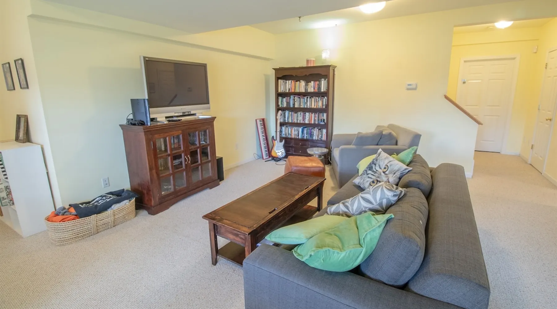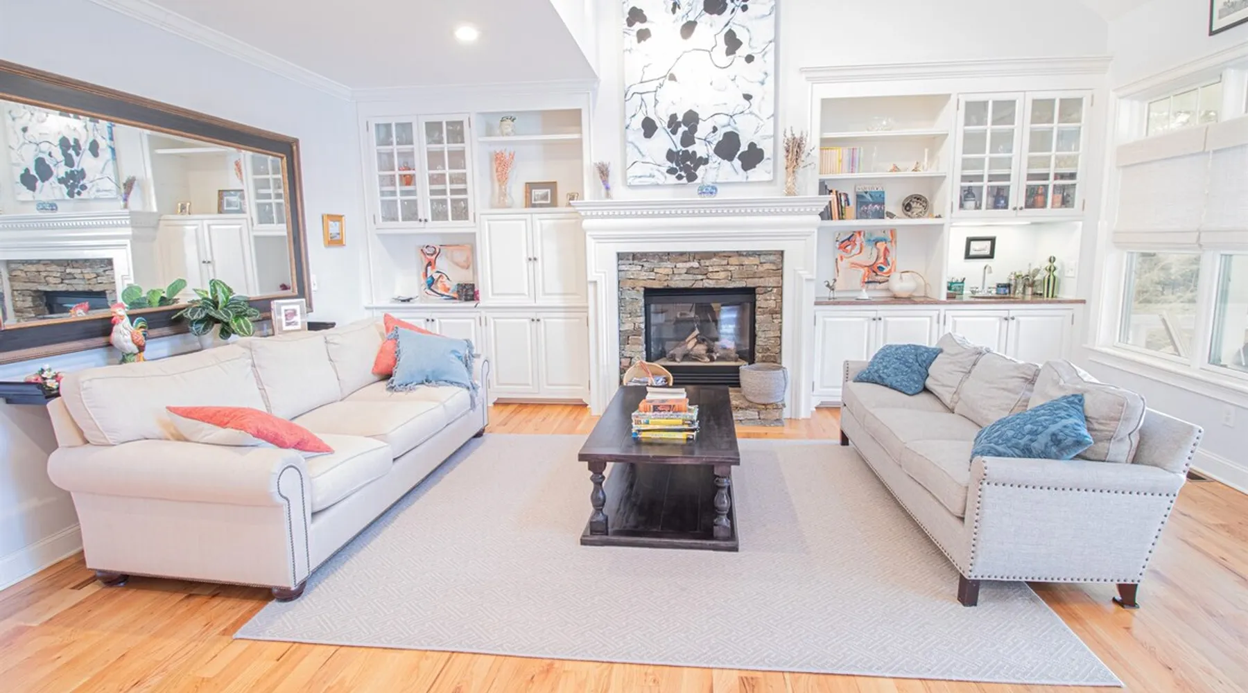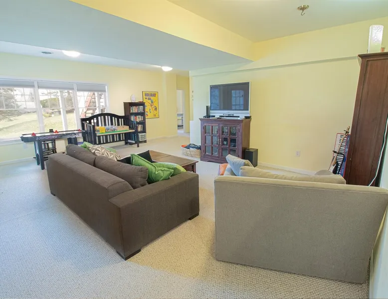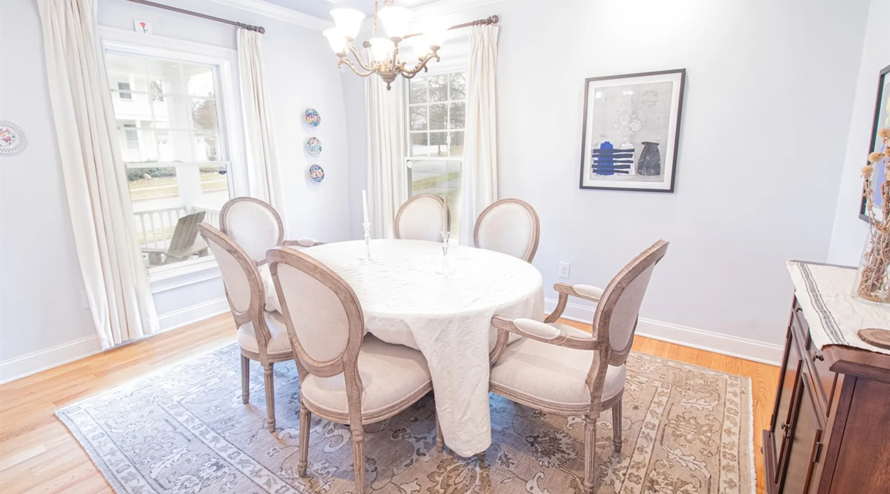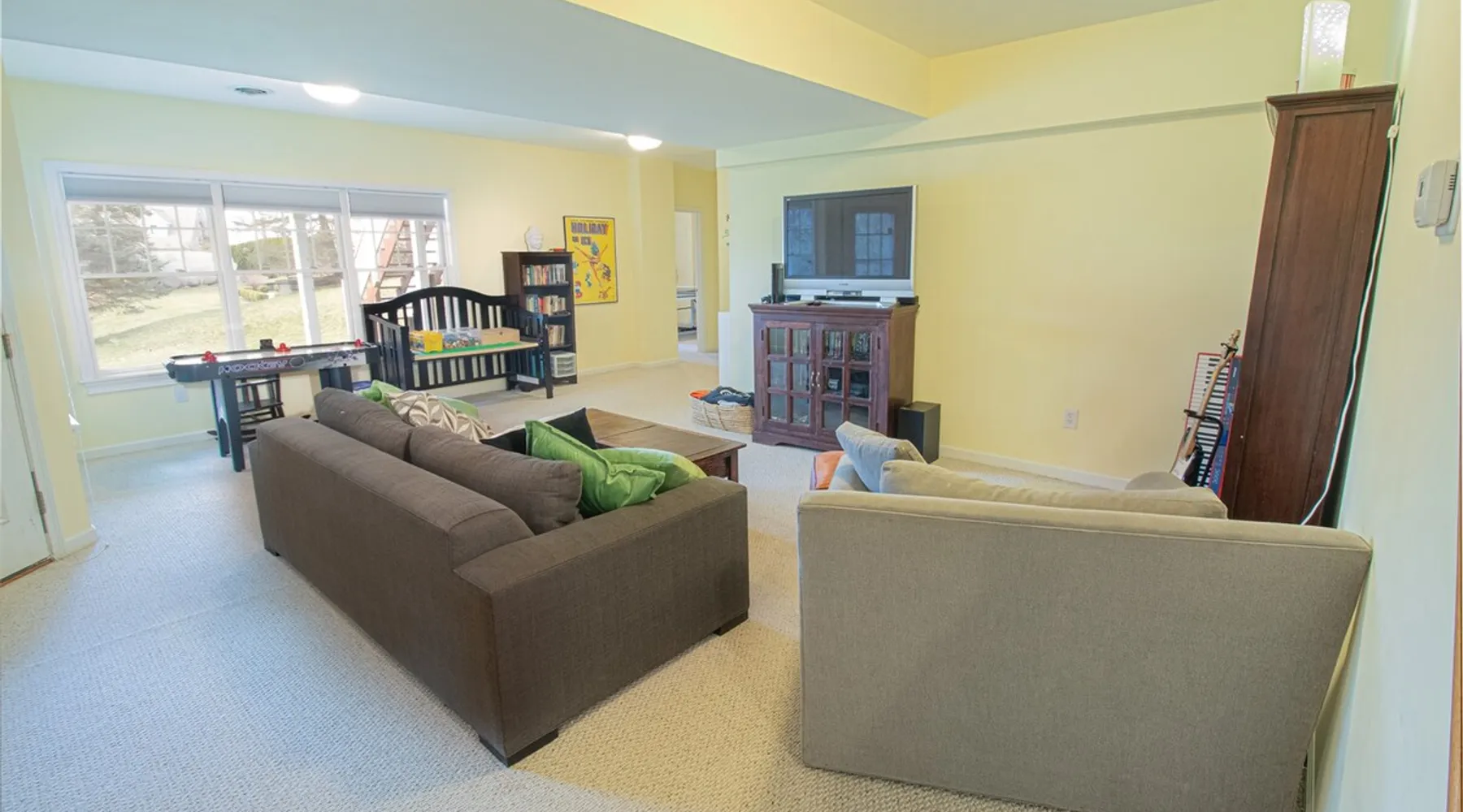 The gleaming white kitchen has all you need for meal prep, and you can choose between a dining area or the formal dining room where you can enjoy meals. The beautiful open concept living area is a great place to relax. A library provides a quiet place to read or do work or maybe you prefer a view of the lake from the screened in porch. The basement is finished with additional bedrooms and a game room with a ping pong table! Waterview of Lake Lonely. The space Bedrooms: 4 Bedrooms Bed Size & Sleeping Arrangement: 1 King size beds, 1 Queen size bed and 2 Twin trundle beds. Bathrooms: 3 1/2 Bathrooms Living Area: Sofa Center Table Fireplace Wall Mirror Kitchen: Refrigerator Stove Oven Microwave Dishwasher Coffee Maker Drip Coffee Maker Toaster Freezer Kitchen Island Dining Table Baking Sheet Barbeque/Grill Utensils Wine Glasses Patio: Large deck with outdoor seating Dining Area: Dining table for 4 in the kitchen Dining table for 6 Note: The owner recently purchased a trampoline for his children, which will be in the yard this summer.
