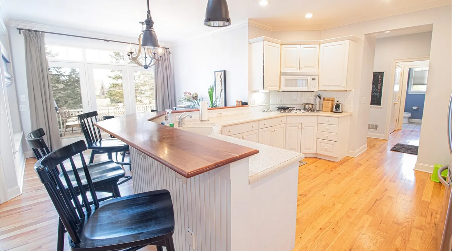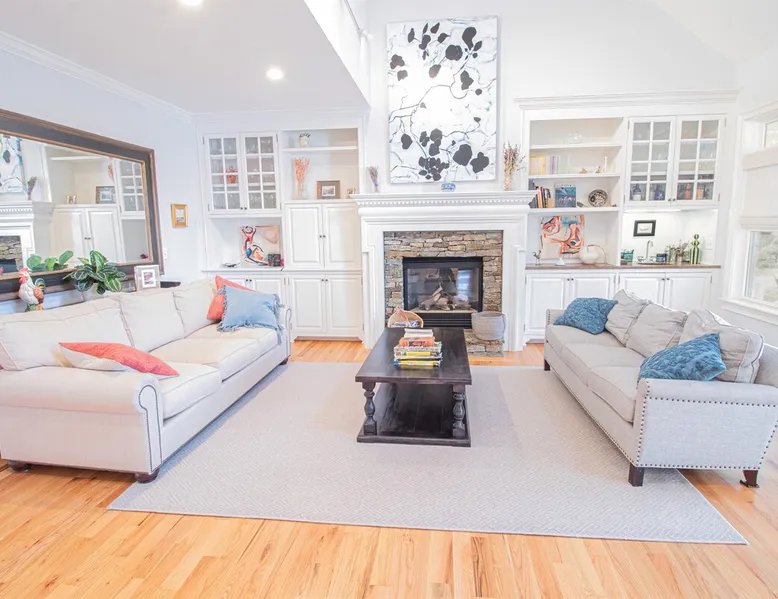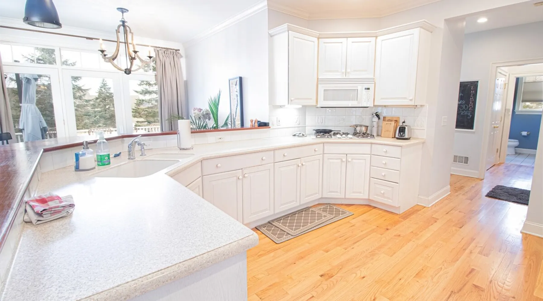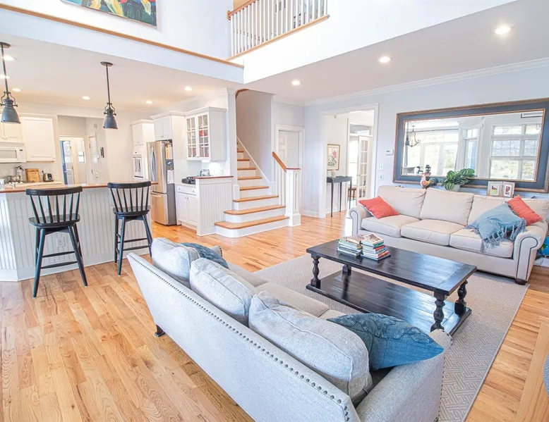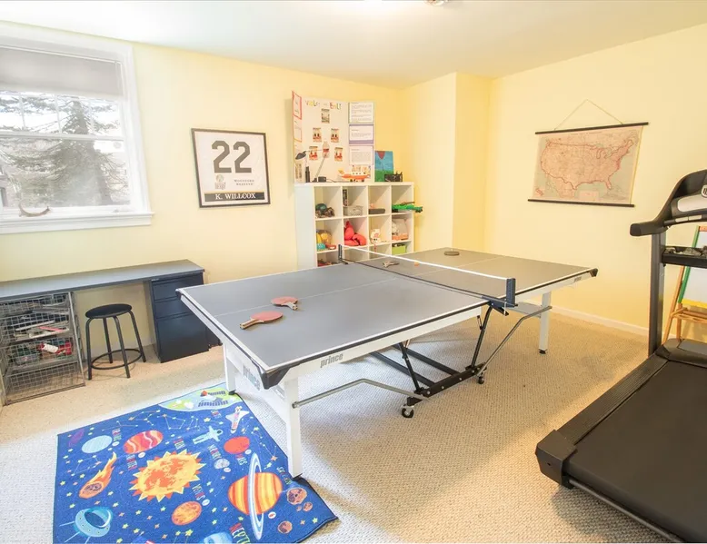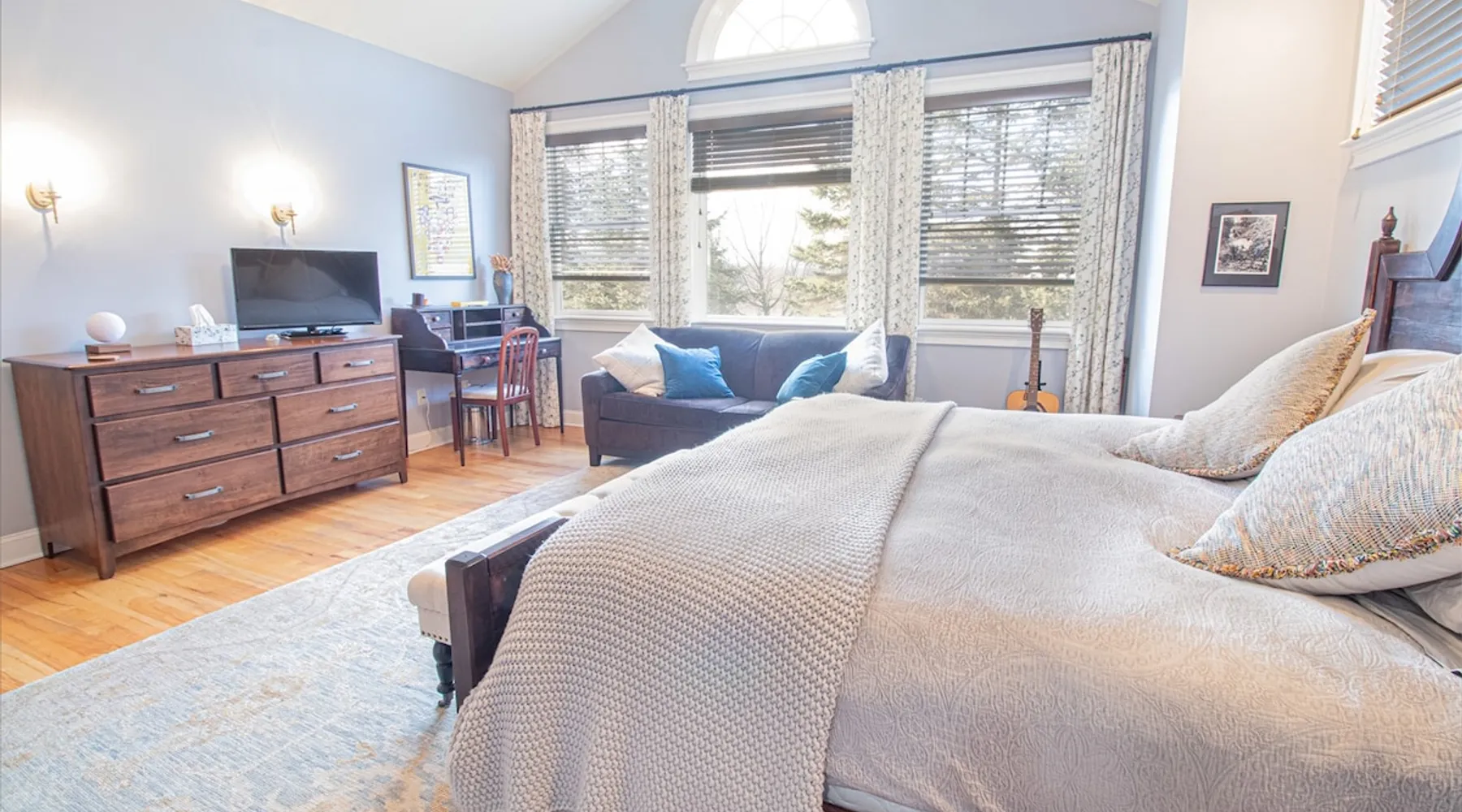 The gleaming white kitchen has all you need for meal prep, and you can choose between a dining area or the formal dining room where you can enjoy meals. The beautiful open concept living area is a great place to relax. A library provides a quiet place to read or do work or maybe you prefer a view of the lake from the screened in porch. The basement is finished with additional bedrooms and a game room with a ping pong table! Waterview of Lake Lonely. The space Bedrooms: 4 Bedrooms Bed Size & Sleeping Arrangement: 1 King size beds, 1 Queen size bed and 2 Twin trundle beds. Bathrooms: 3 1/2 Bathrooms Living Area: Sofa Center Table Fireplace Wall Mirror Kitchen: Refrigerator Stove Oven Microwave Dishwasher Coffee Maker Drip Coffee Maker Toaster Freezer Kitchen Island Dining Table Baking Sheet Barbeque/Grill Utensils Wine Glasses Patio: Large deck with outdoor seating Dining Area: Dining table for 4 in the kitchen Dining table for 6 Note: The owner recently purchased a trampoline for his children, which will be in the yard this summer.